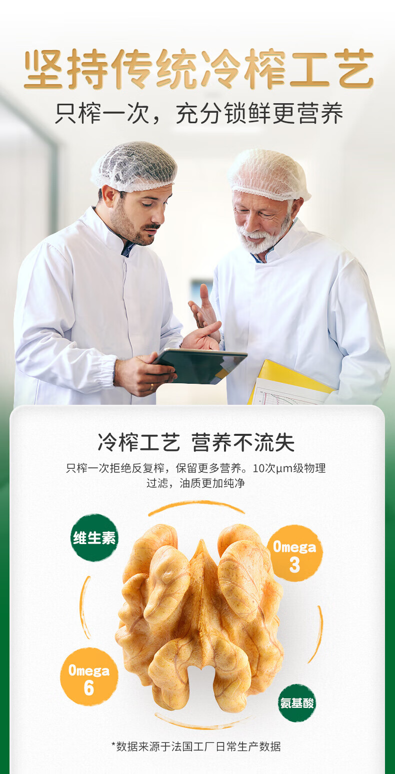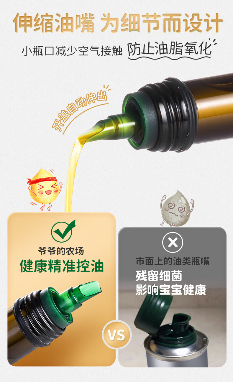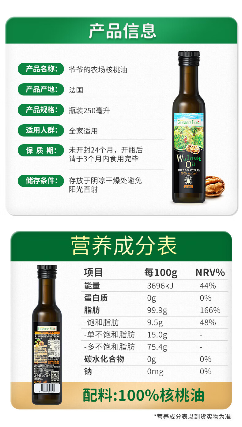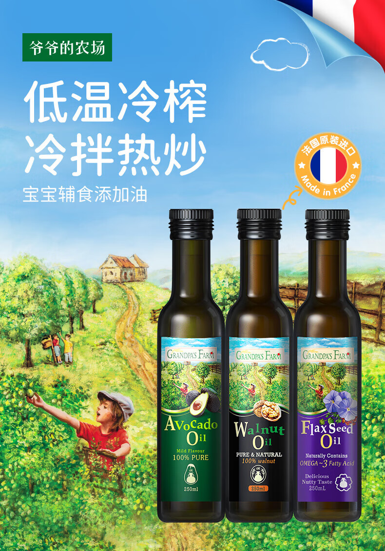 爷爷的农场核桃油牛油果辅食油 热炒凉拌用油大容量橄榄油儿童宝宝食用油 【家庭装大容量】核桃油500ml