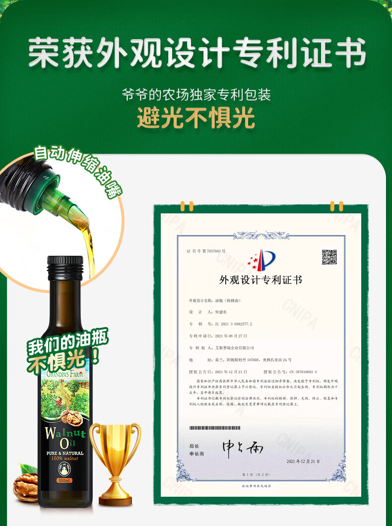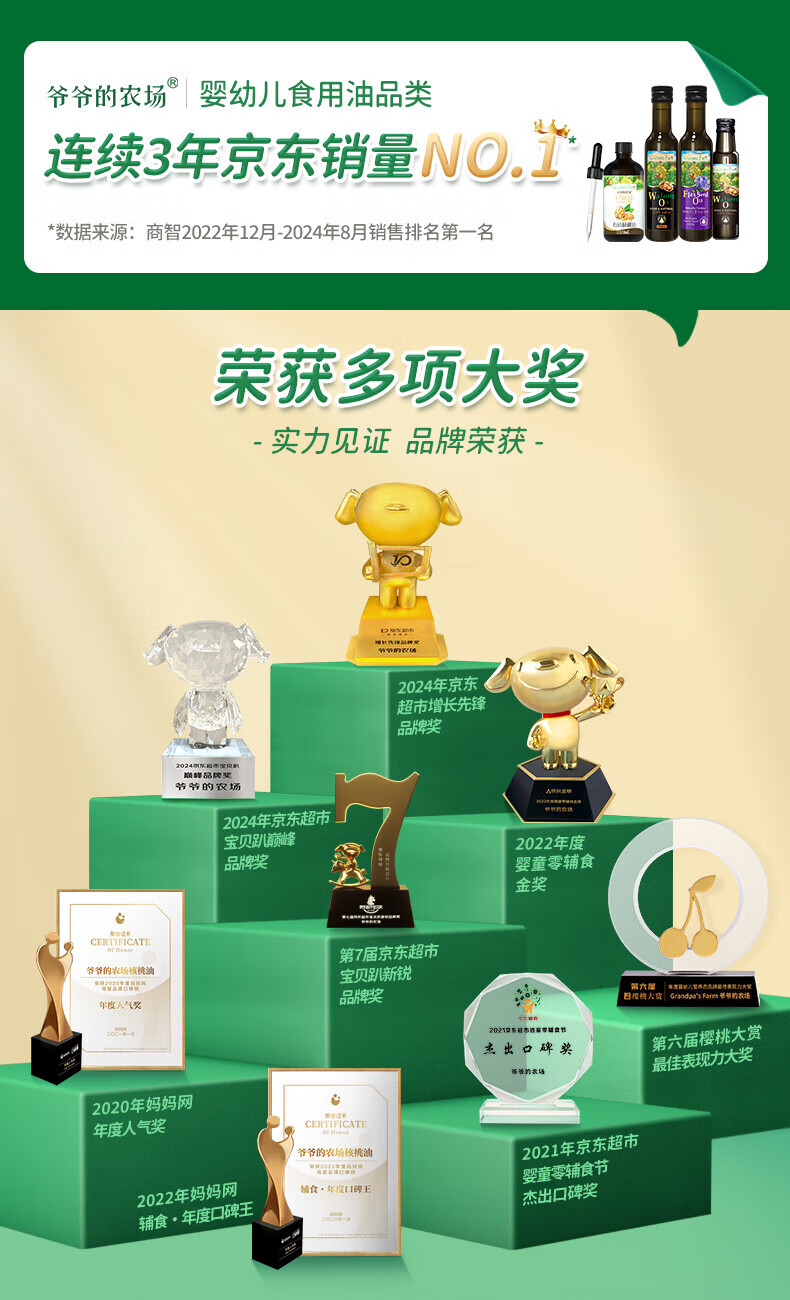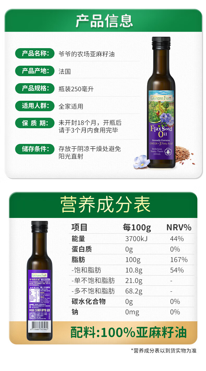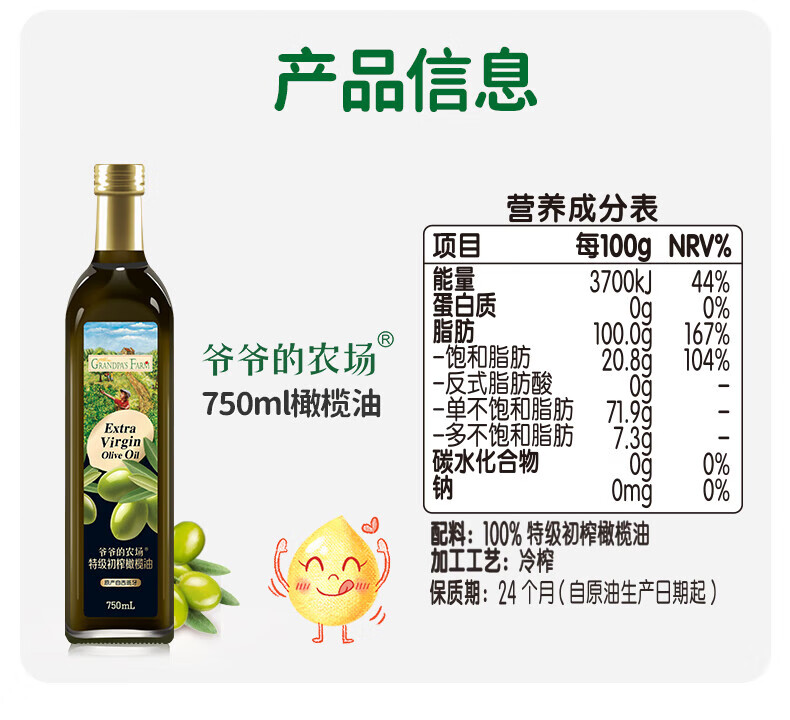 爷爷的农场核桃油牛油果辅食油 热炒凉拌用油大容量橄榄油儿童宝宝食用油 【家庭装大容量】核桃油500ml