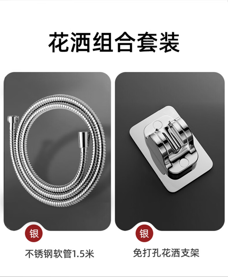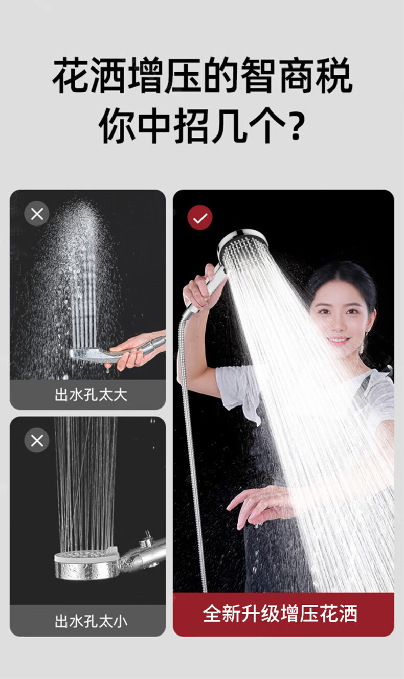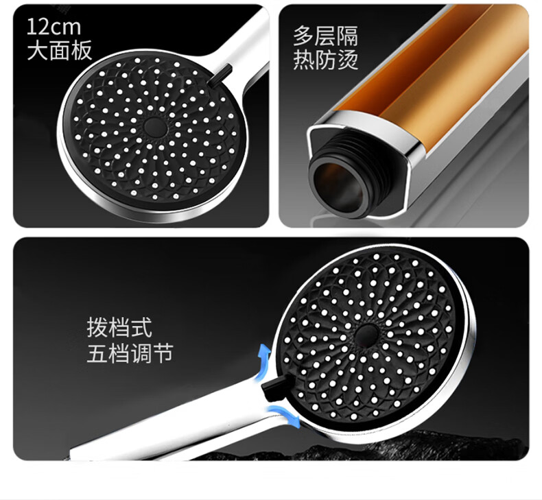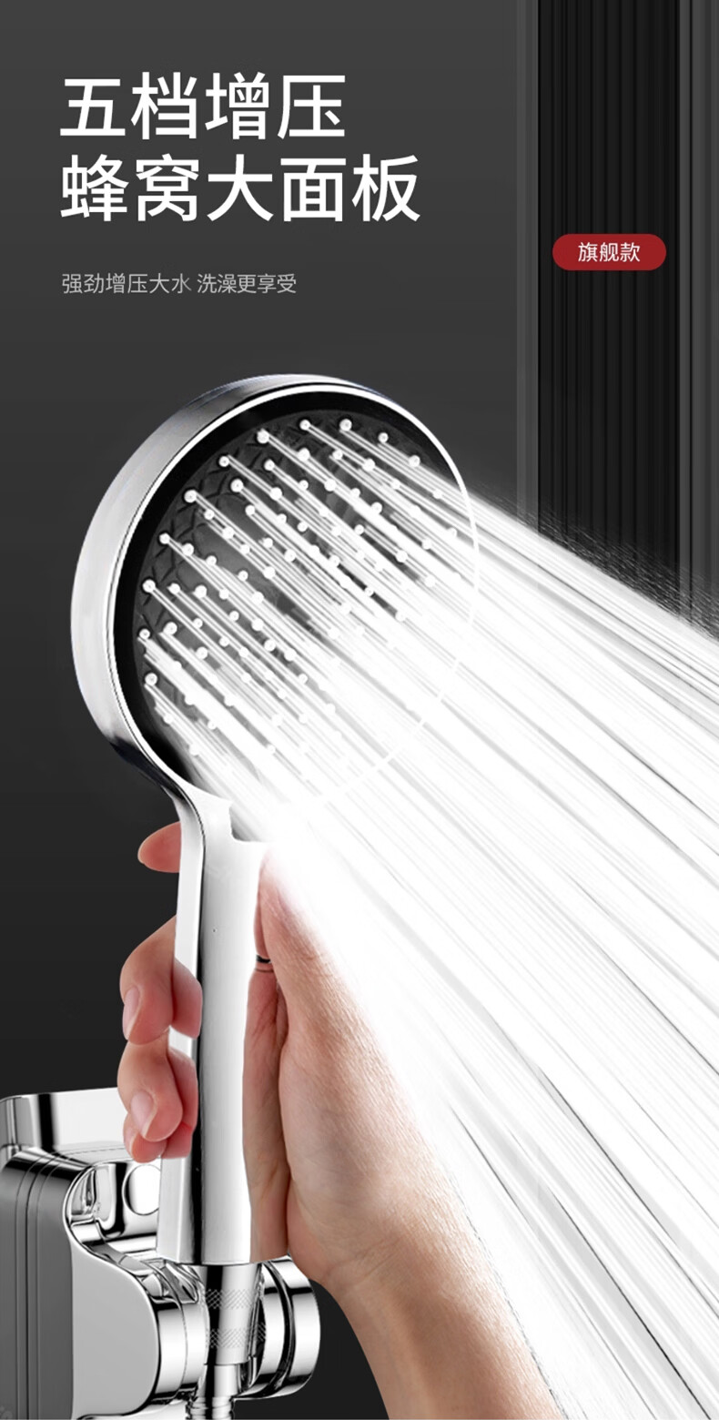 壹品印象增压花洒喷头家用热水器洗澡大出水淋浴头加压淋雨 大面板增压花洒三件套