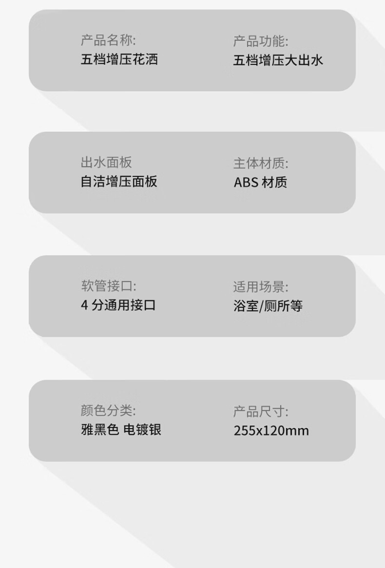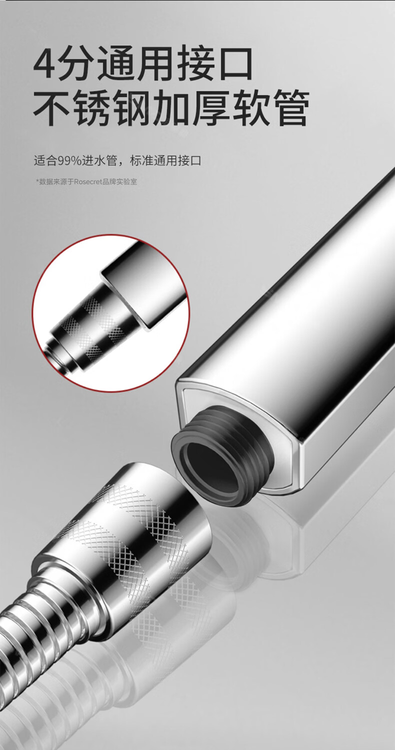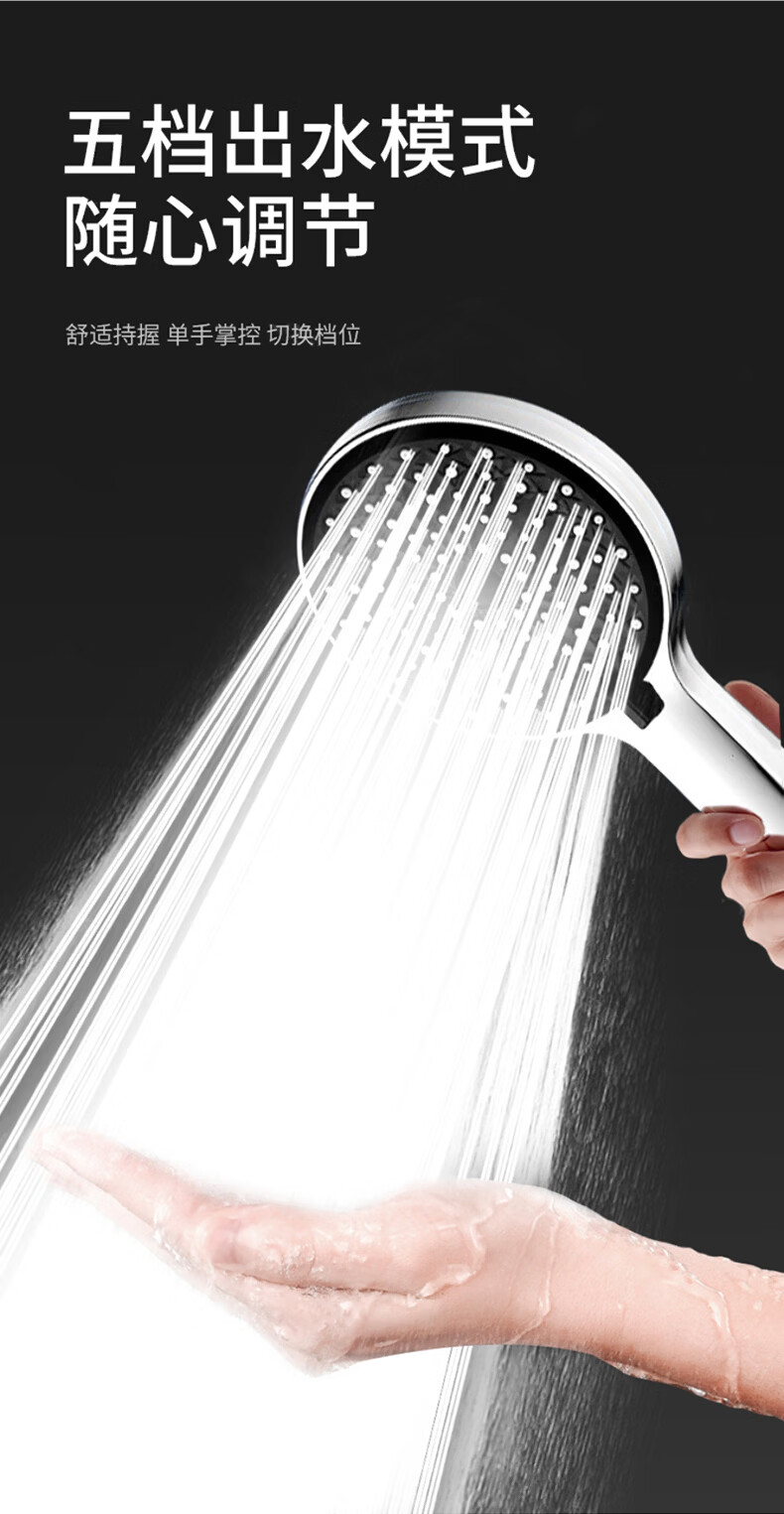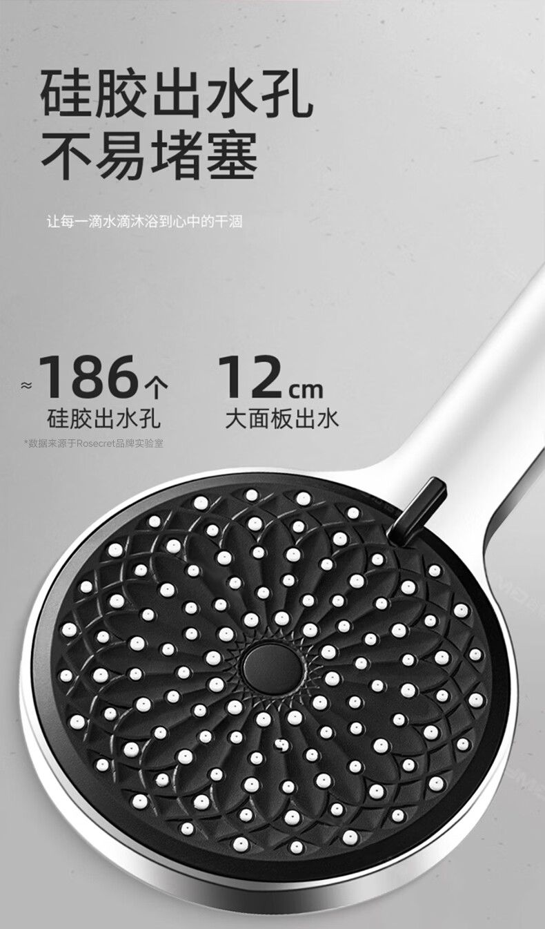 Rosecret【德国】淋浴花洒喷头增压多功能家用浴室洗澡大面板手持莲蓬喷头 5档强劲增压【电镀银】单花洒喷头 大流量出水丨享酒店式沐浴