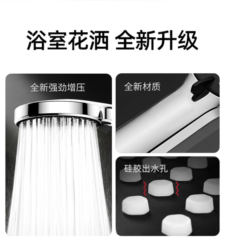 壹品印象增压淋浴花洒喷头家用浴室洗澡热水器超强加压沐浴莲蓬头软管套装 三档增压花洒【枪灰】 【强劲增压丨密集大出水】