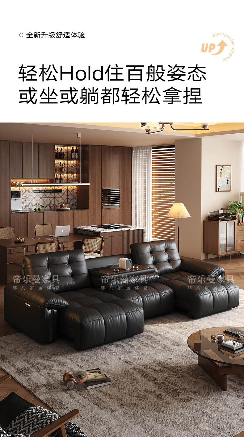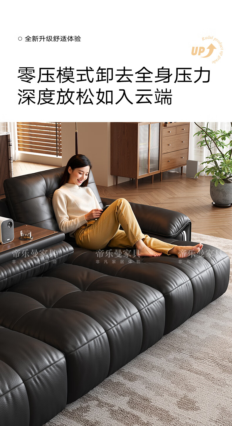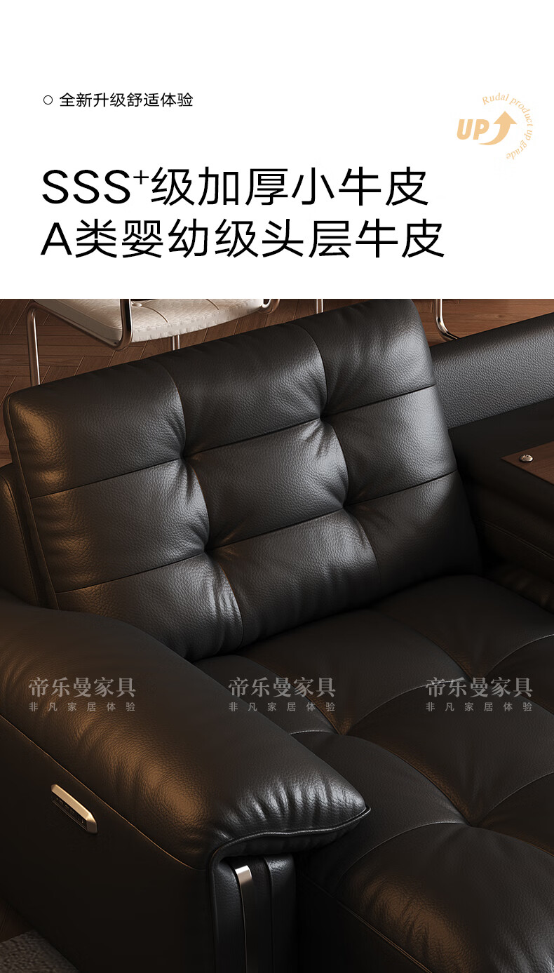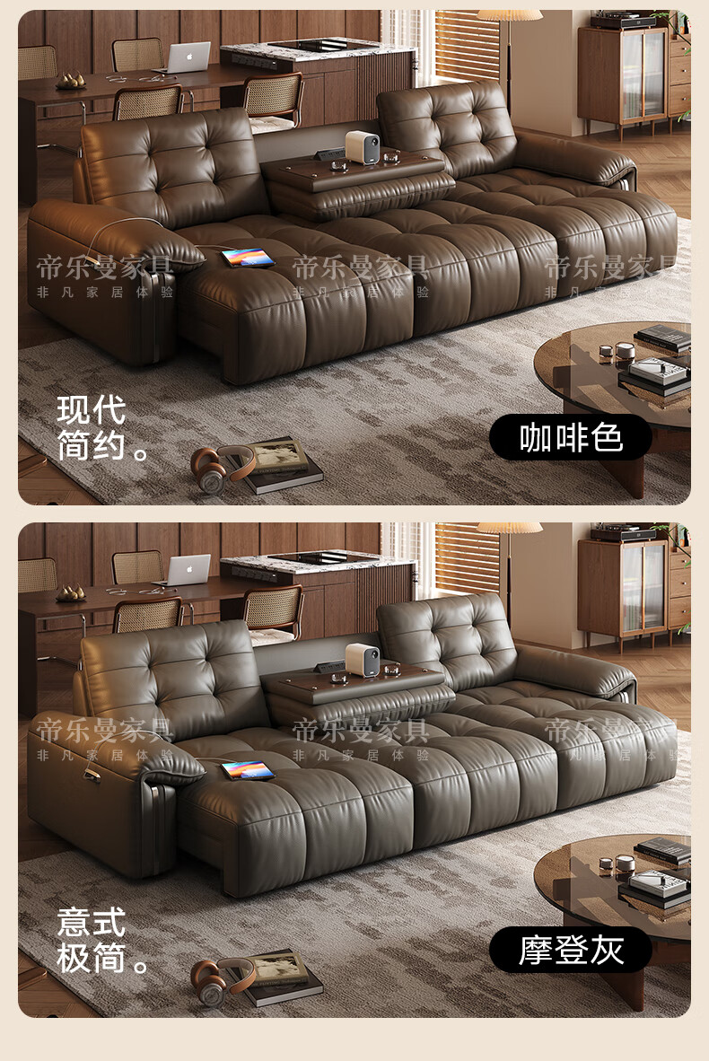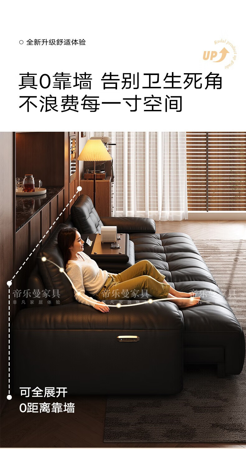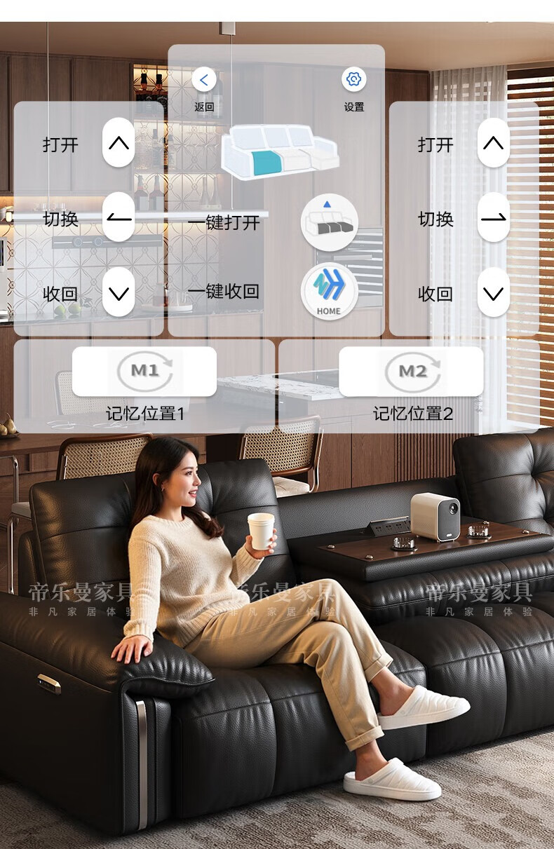 帝乐曼零靠墙劳伦斯电动沙发客厅新款大小户型多功能沙发可伸缩真皮沙发 2.80米三人位【智能·四控-三电动-可翻盖茶台设计】 【接触面】2.4mm进口头层真皮