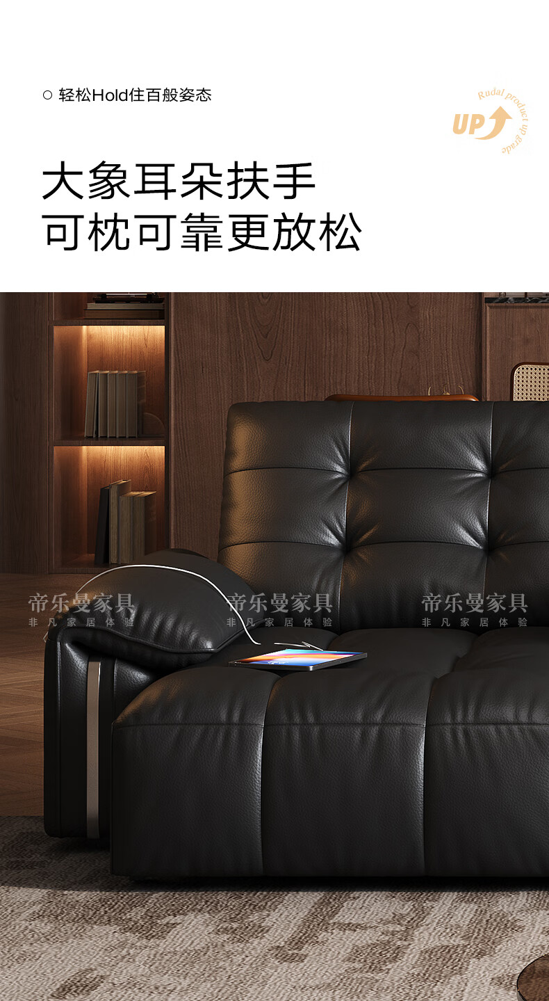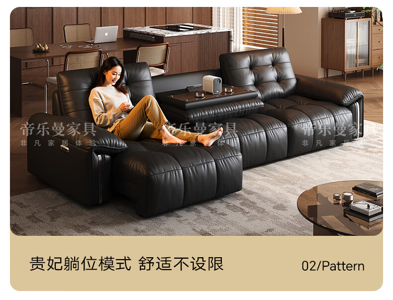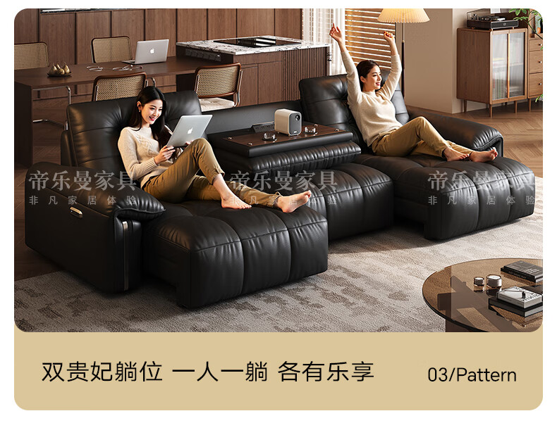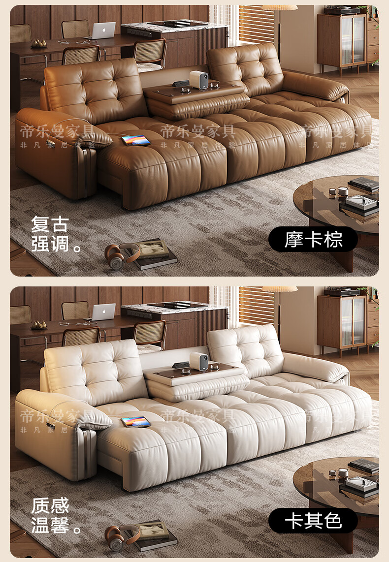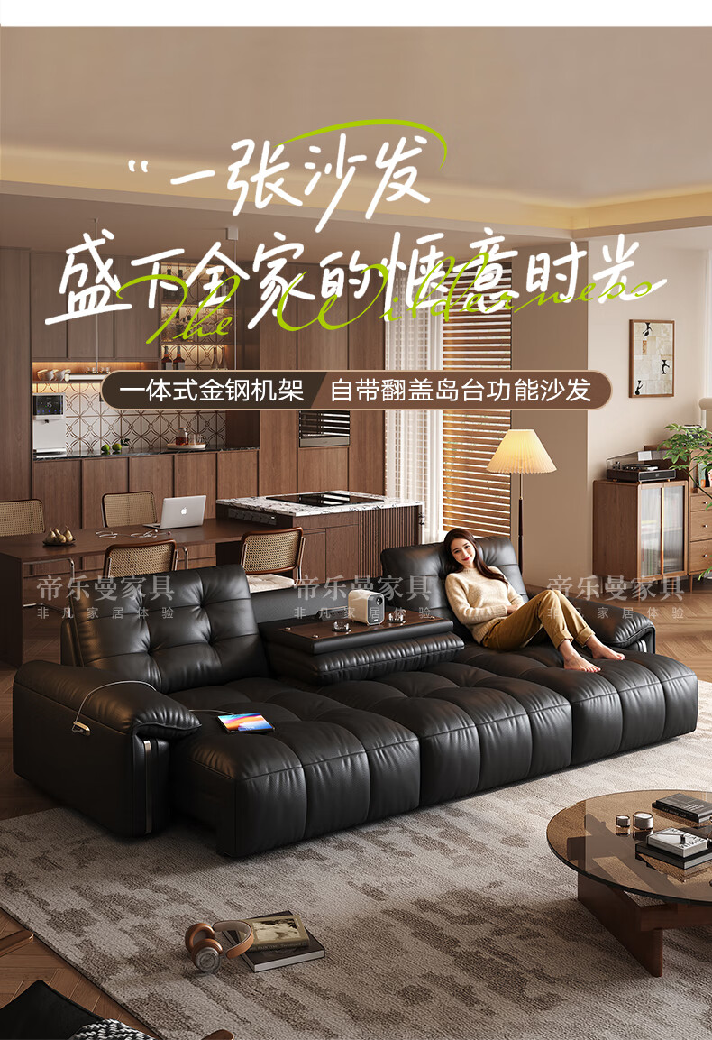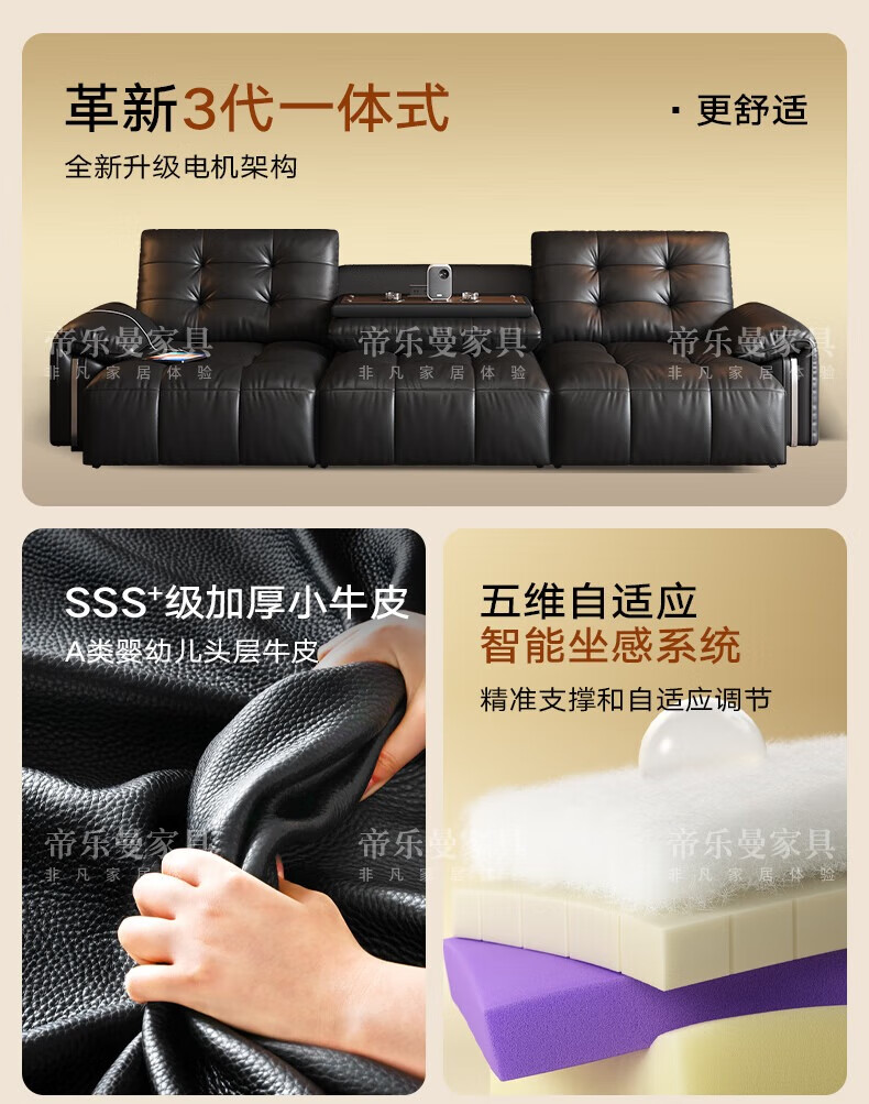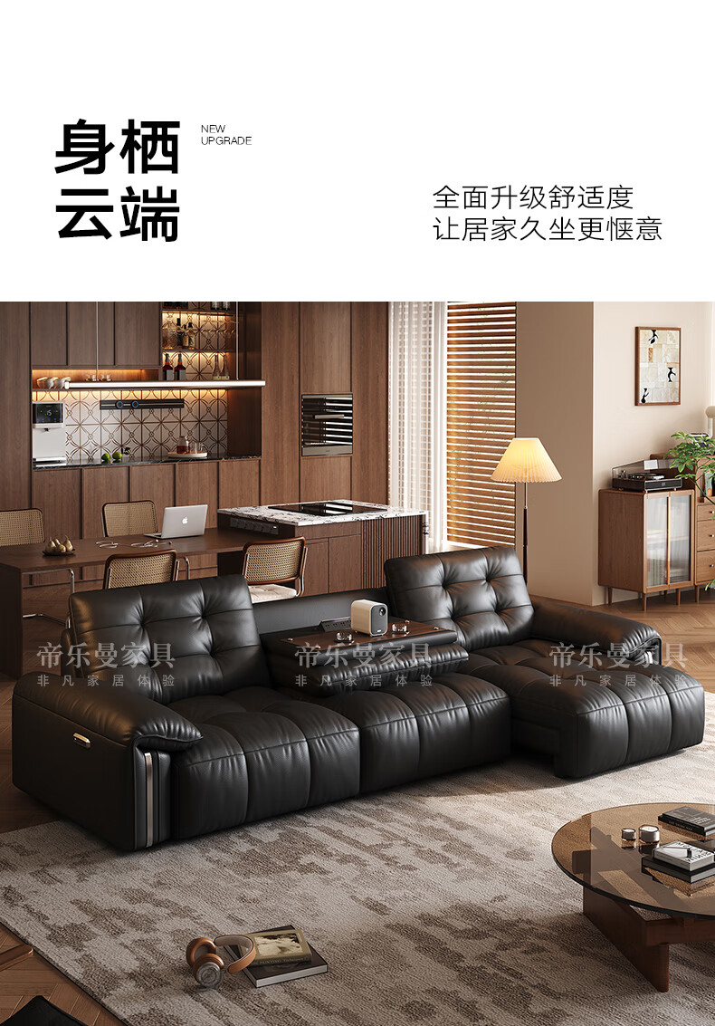 帝乐曼零靠墙劳伦斯电动沙发客厅新款大小户型多功能沙发可伸缩真皮沙发 2.80米三人位【智能·四控-三电动-可翻盖茶台设计】 【接触面】2.4mm进口头层真皮