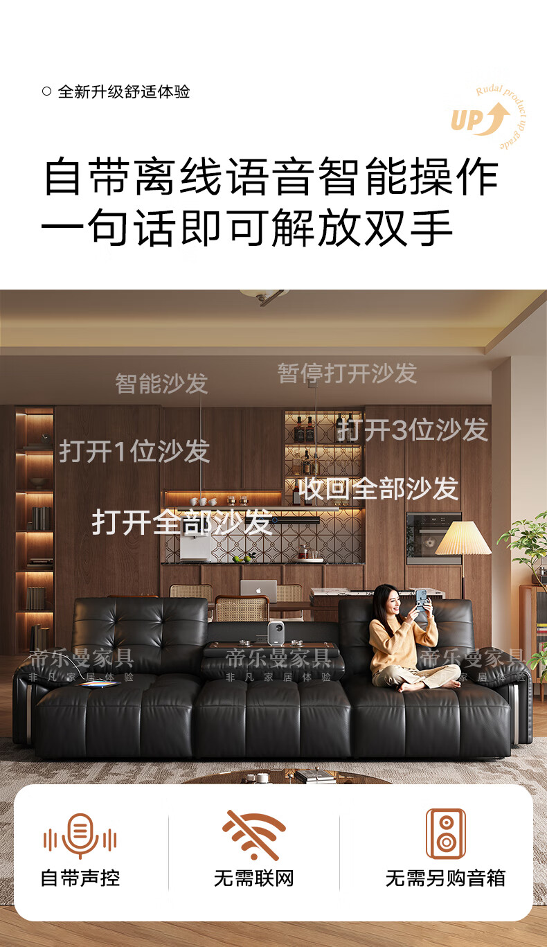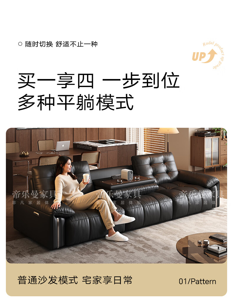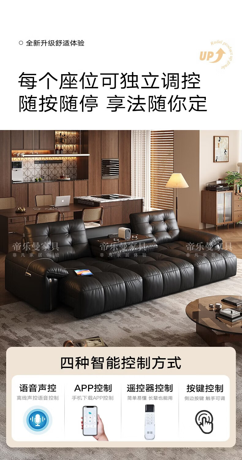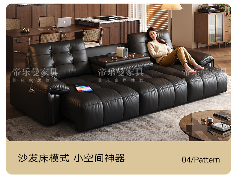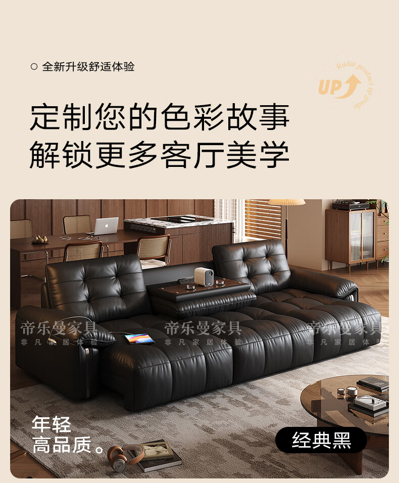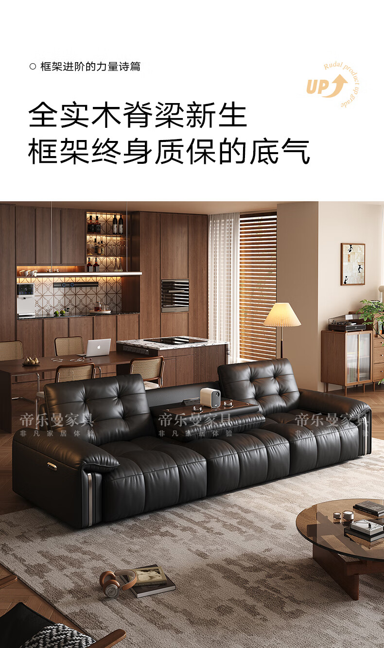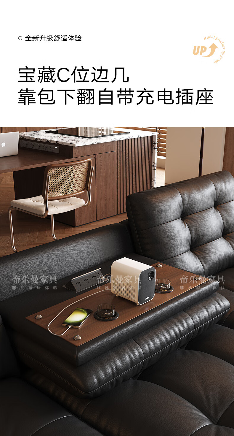 帝乐曼零靠墙劳伦斯电动沙发客厅新款大小户型多功能沙发可伸缩真皮沙发 2.80米三人位【智能·四控-三电动-可翻盖茶台设计】 【接触面】2.4mm进口头层真皮