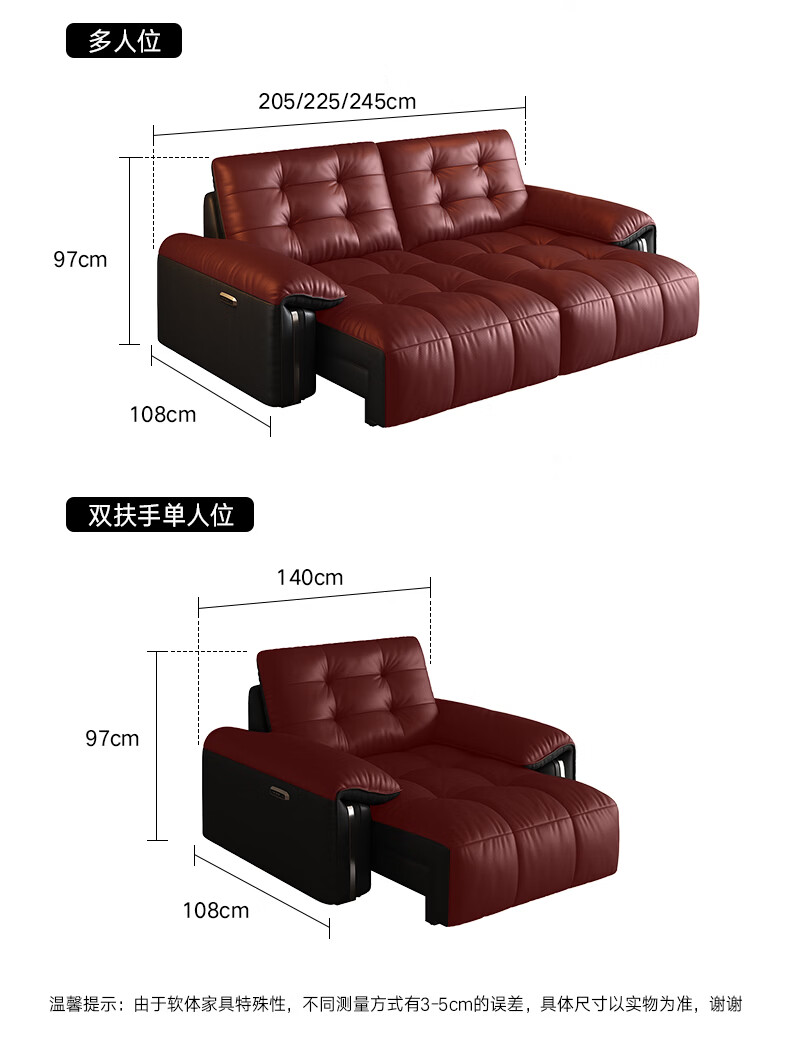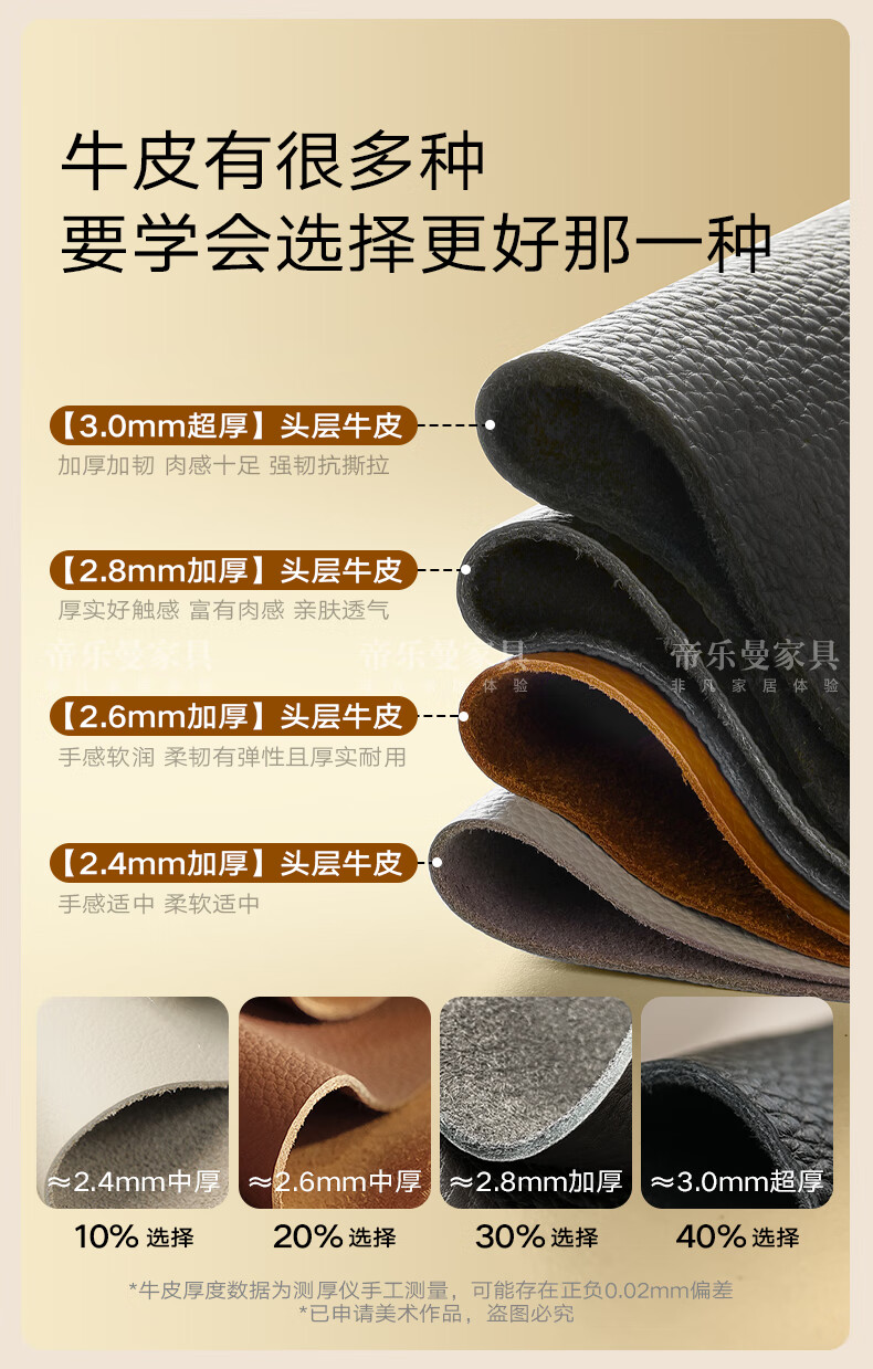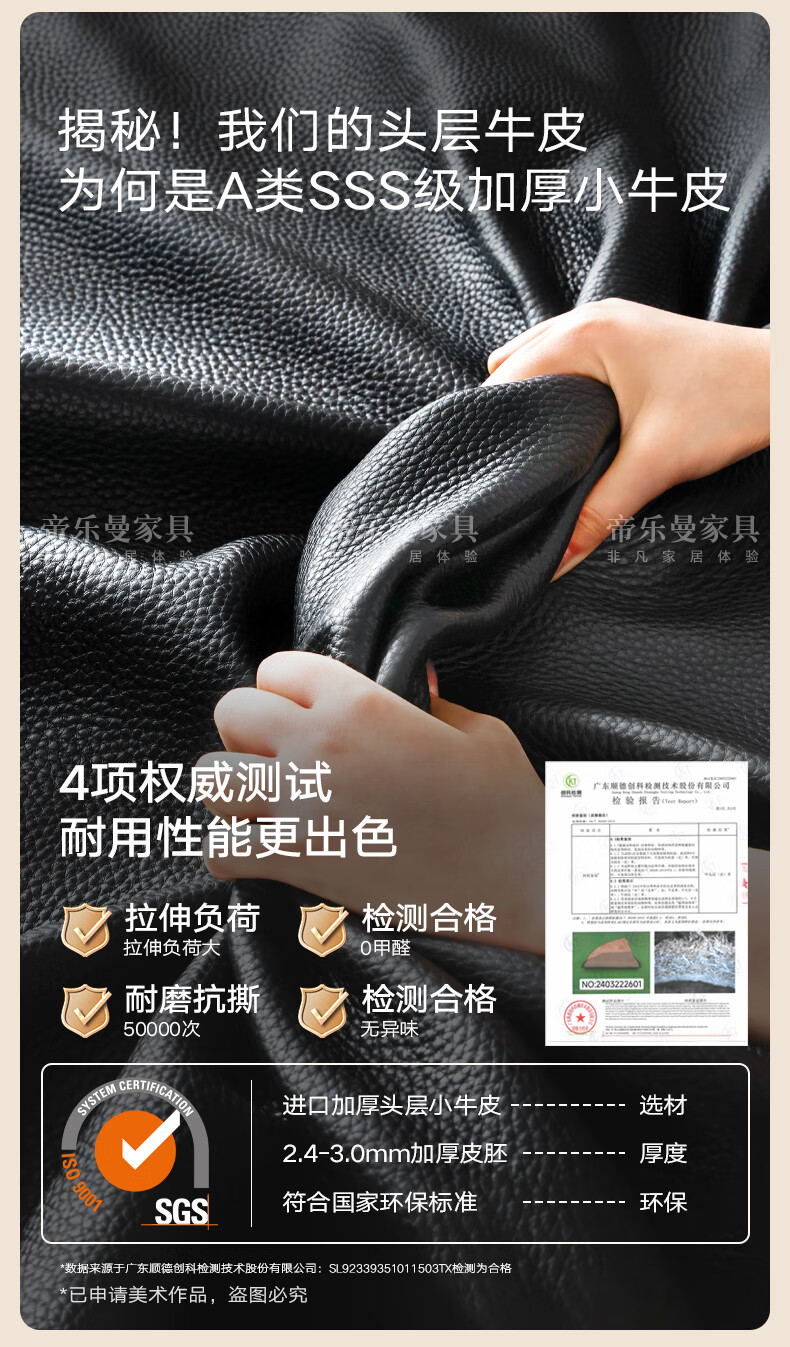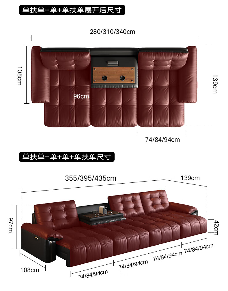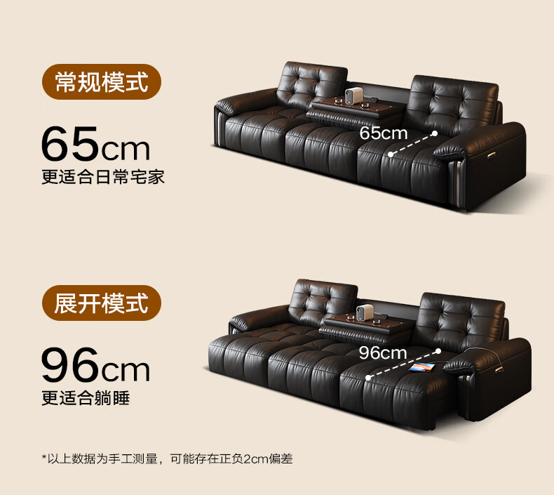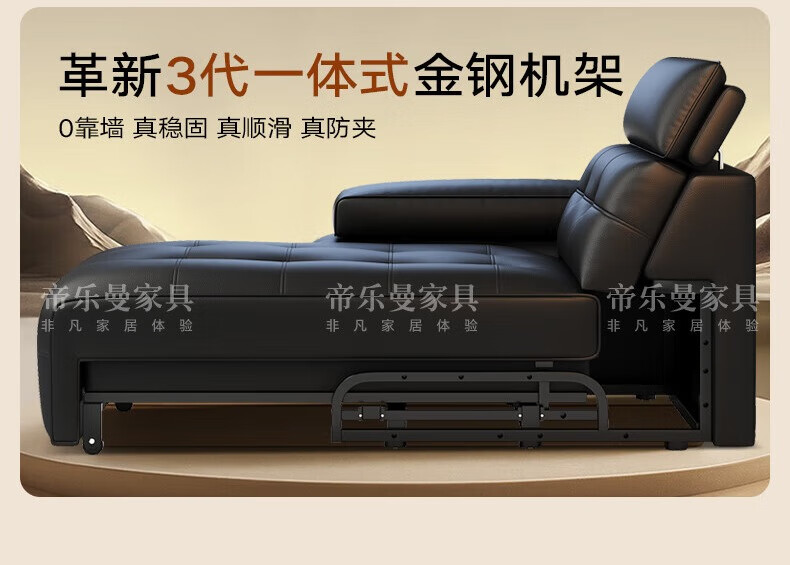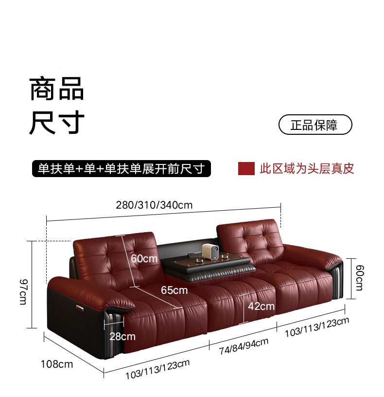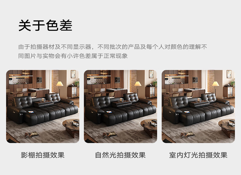 帝乐曼零靠墙劳伦斯电动沙发客厅新款大小户型多功能沙发可伸缩真皮沙发 2.80米三人位【智能·四控-三电动-可翻盖茶台设计】 【接触面】2.4mm进口头层真皮