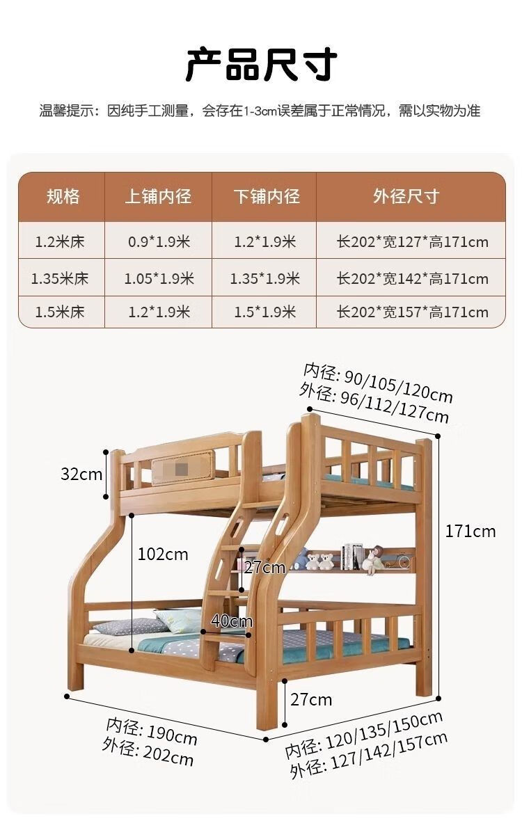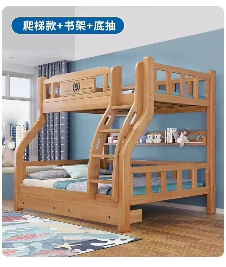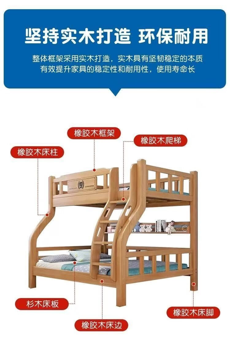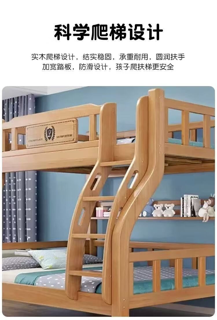 倘然之家上下床双层床全实木高低床子母床成人床二层上下铺上下床加厚加粗 下铺1.2米*上铺0.9米(内空宽) 爬梯款上下床(满铺床板)