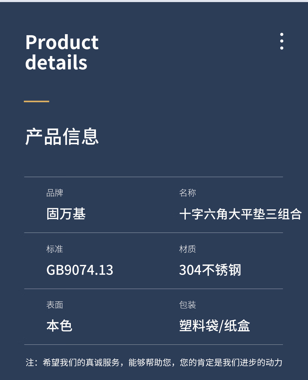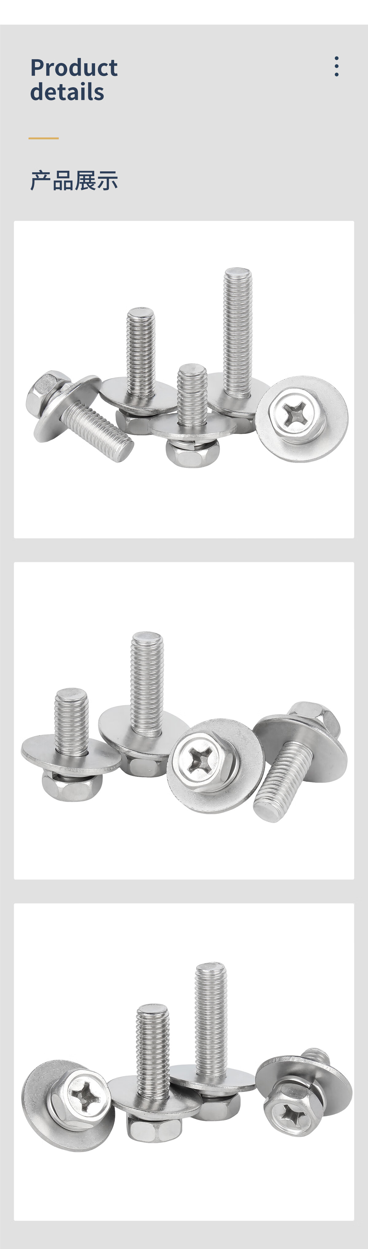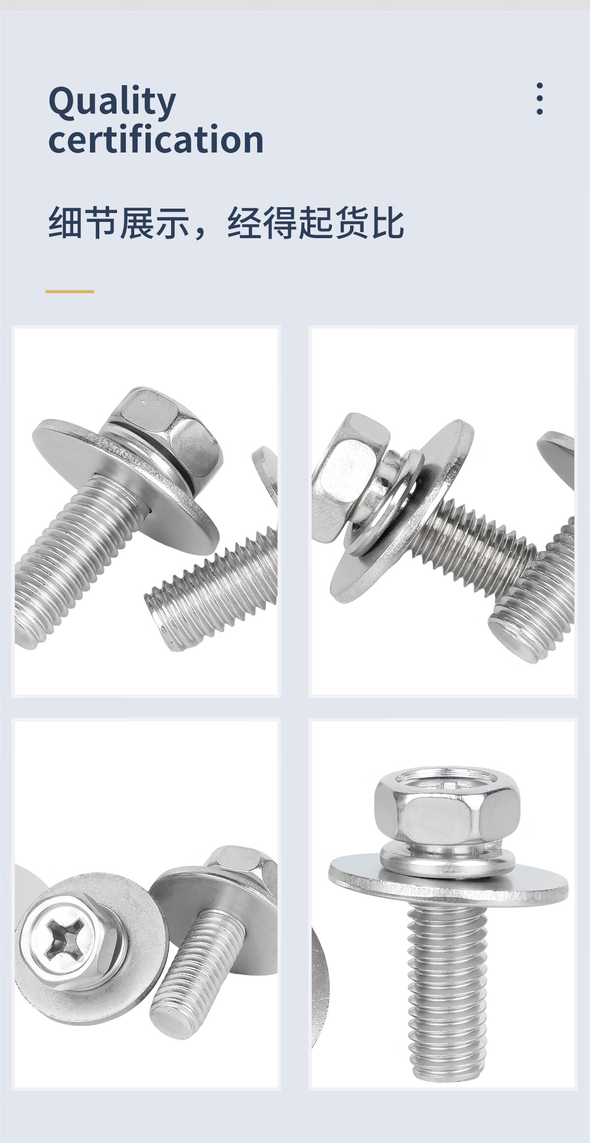 固万基(GUWANJI)304不锈钢十字外六角加大平垫三组合螺丝GB9074.13凹穴大平垫组合 M4x16x12[20只]