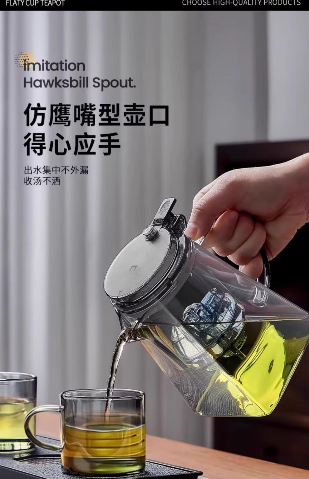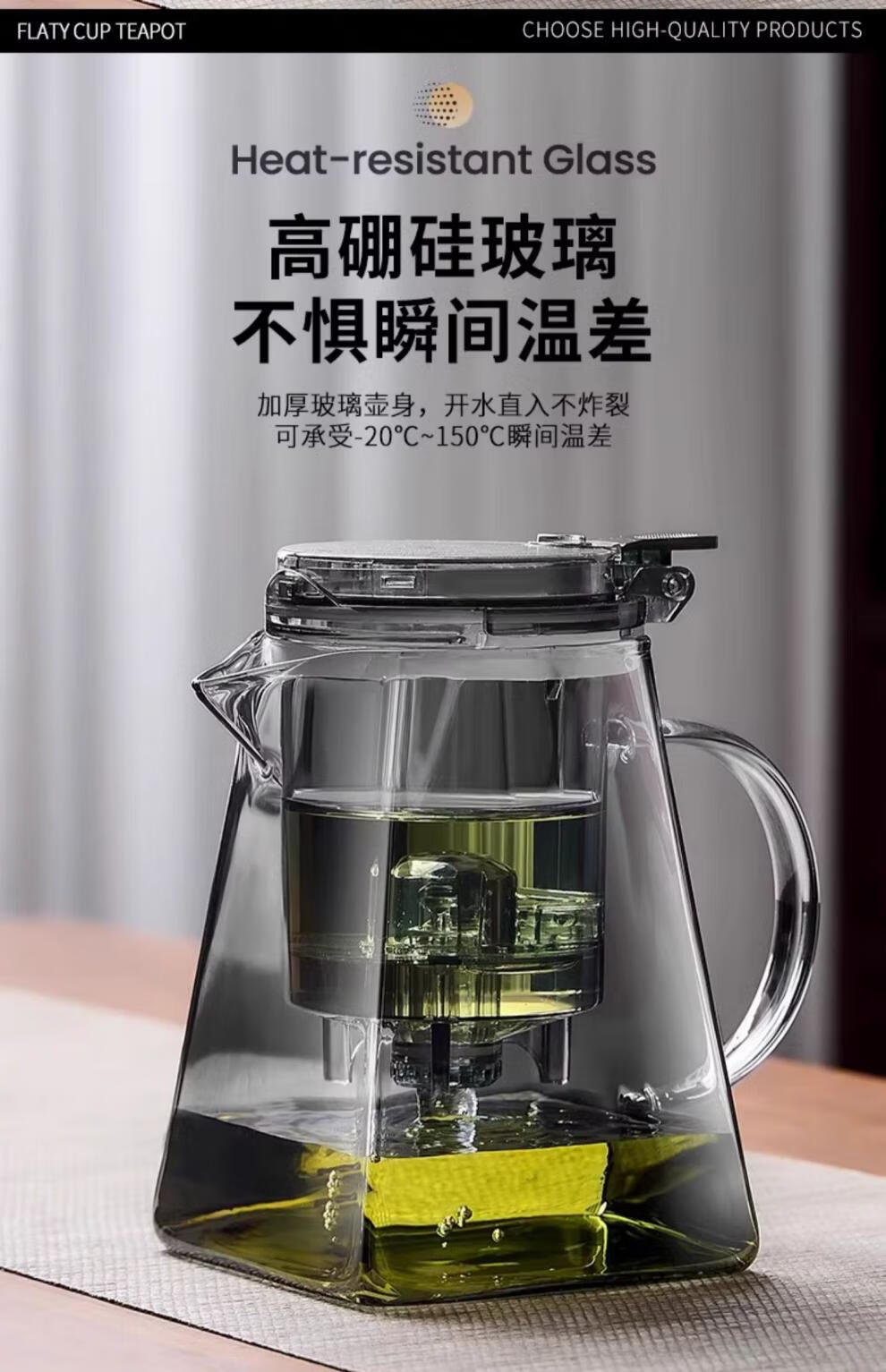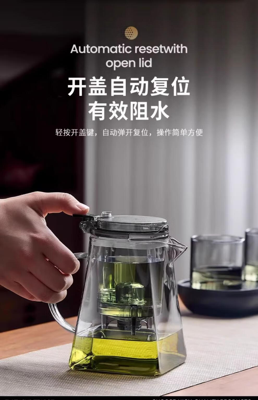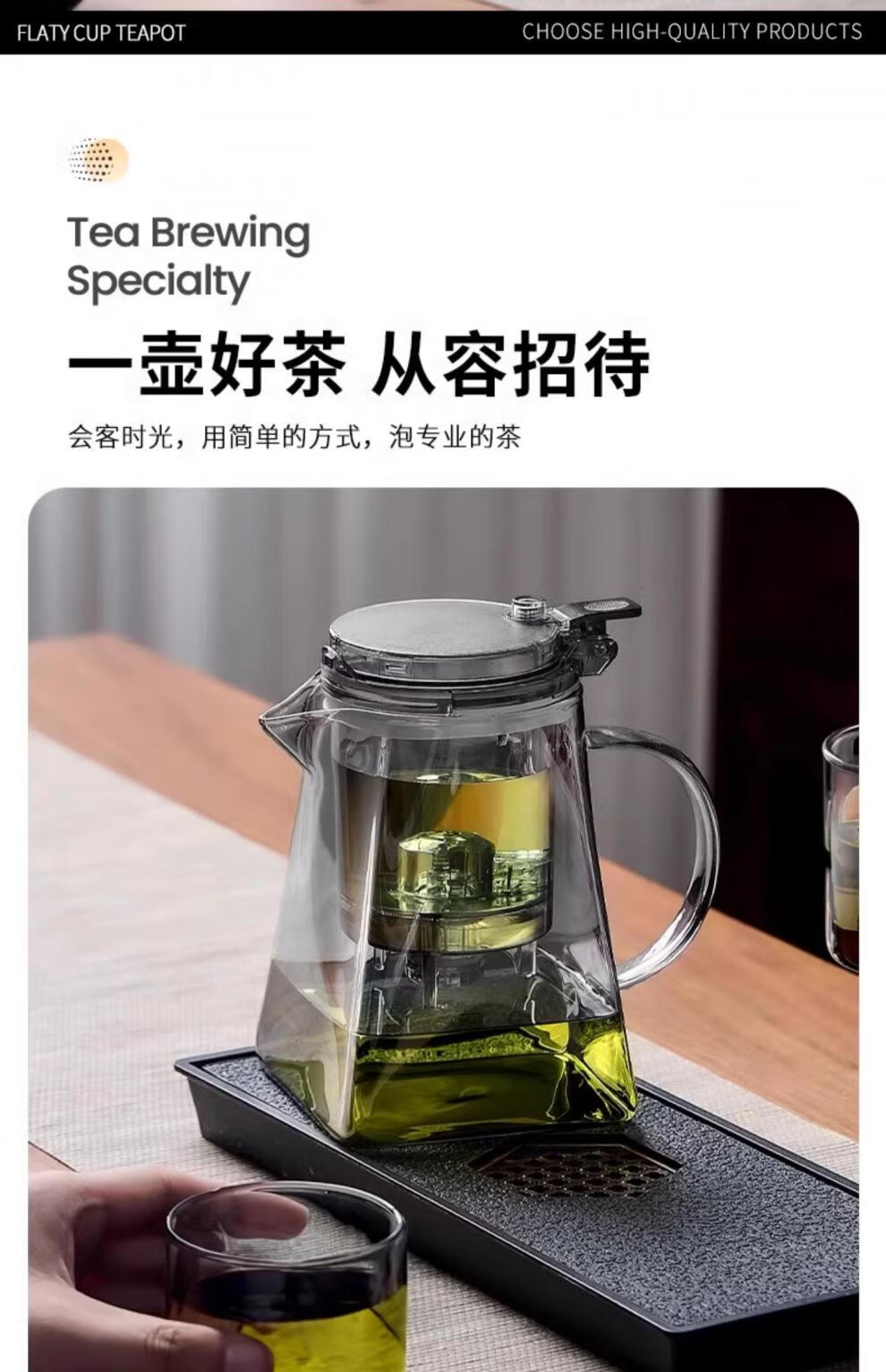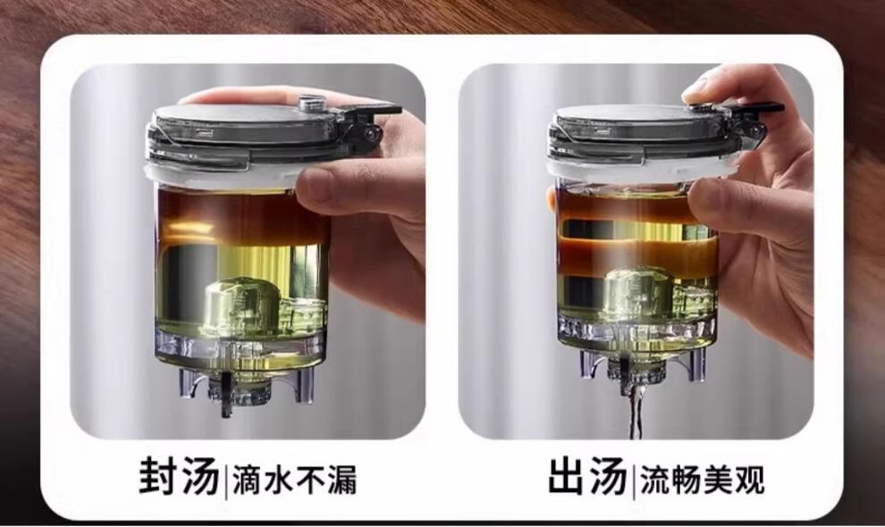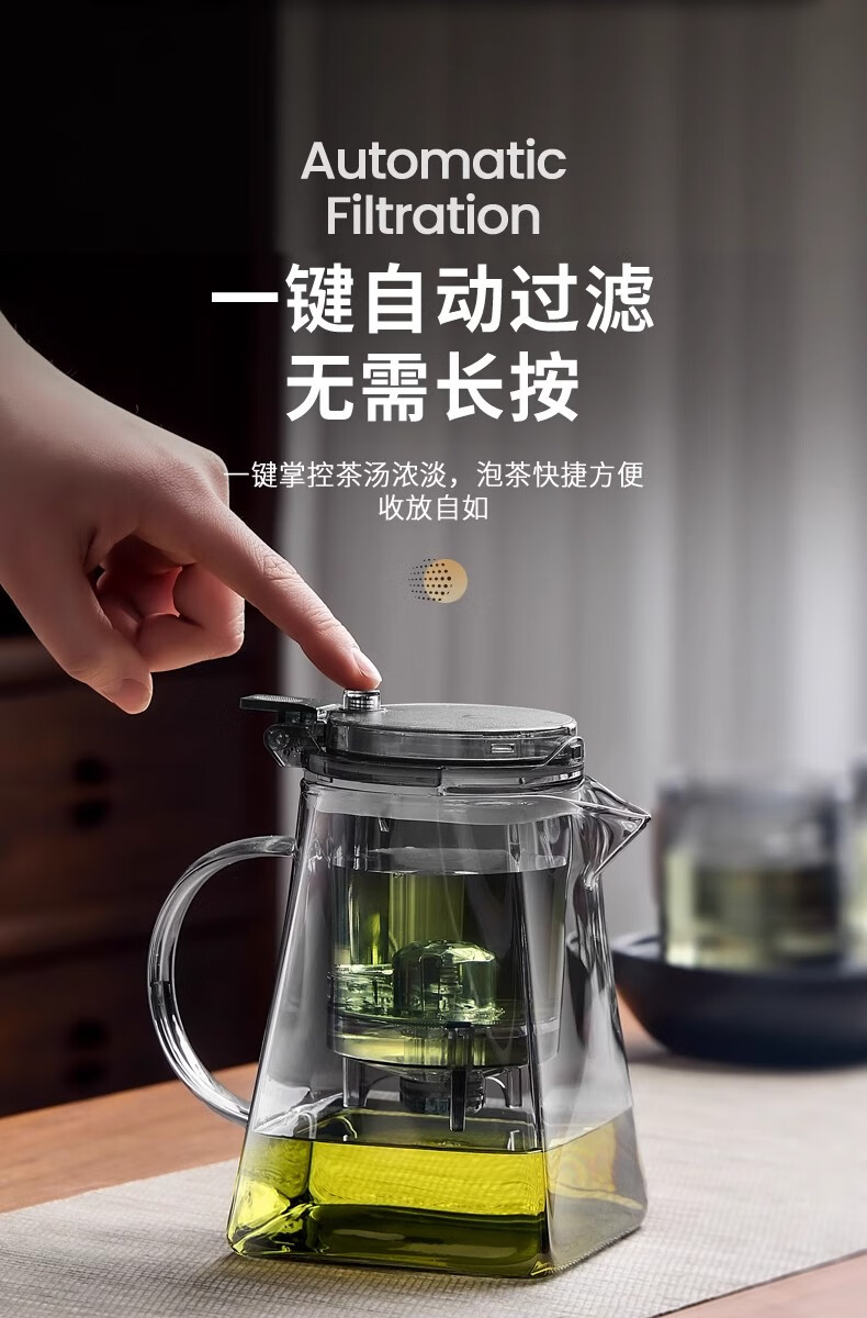 胖东来同款茶壶泡茶家用2025新款茶具套组专用单壶茶水分离泡茶杯 透明四方滤茶壶1000m.l+6品茗杯 701mL(含)-800mL(含)