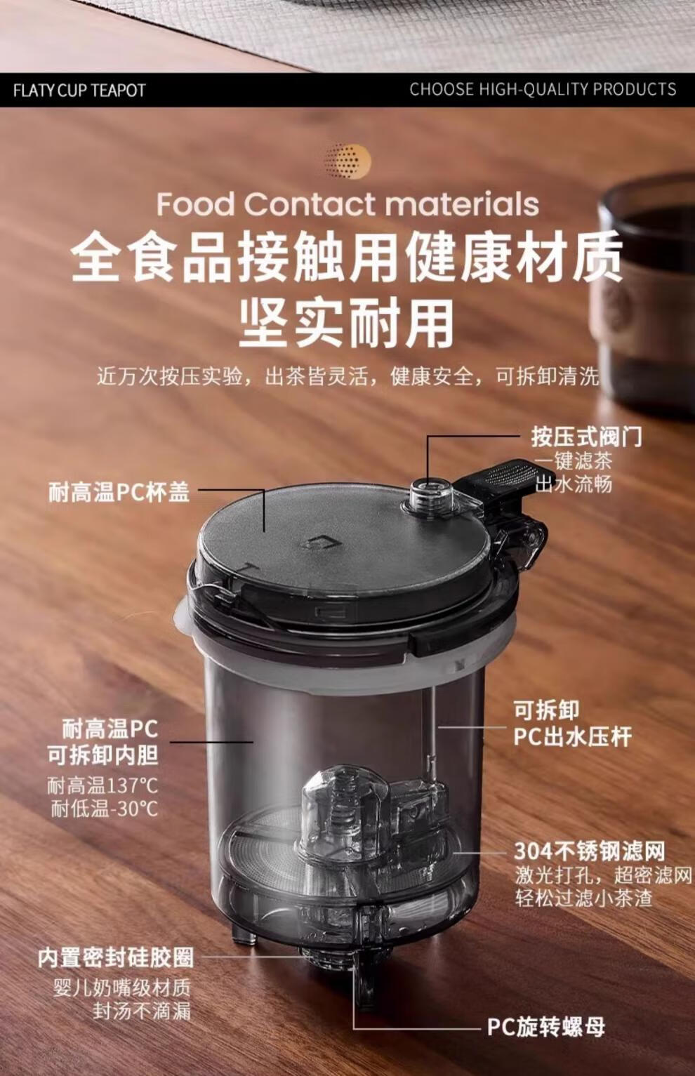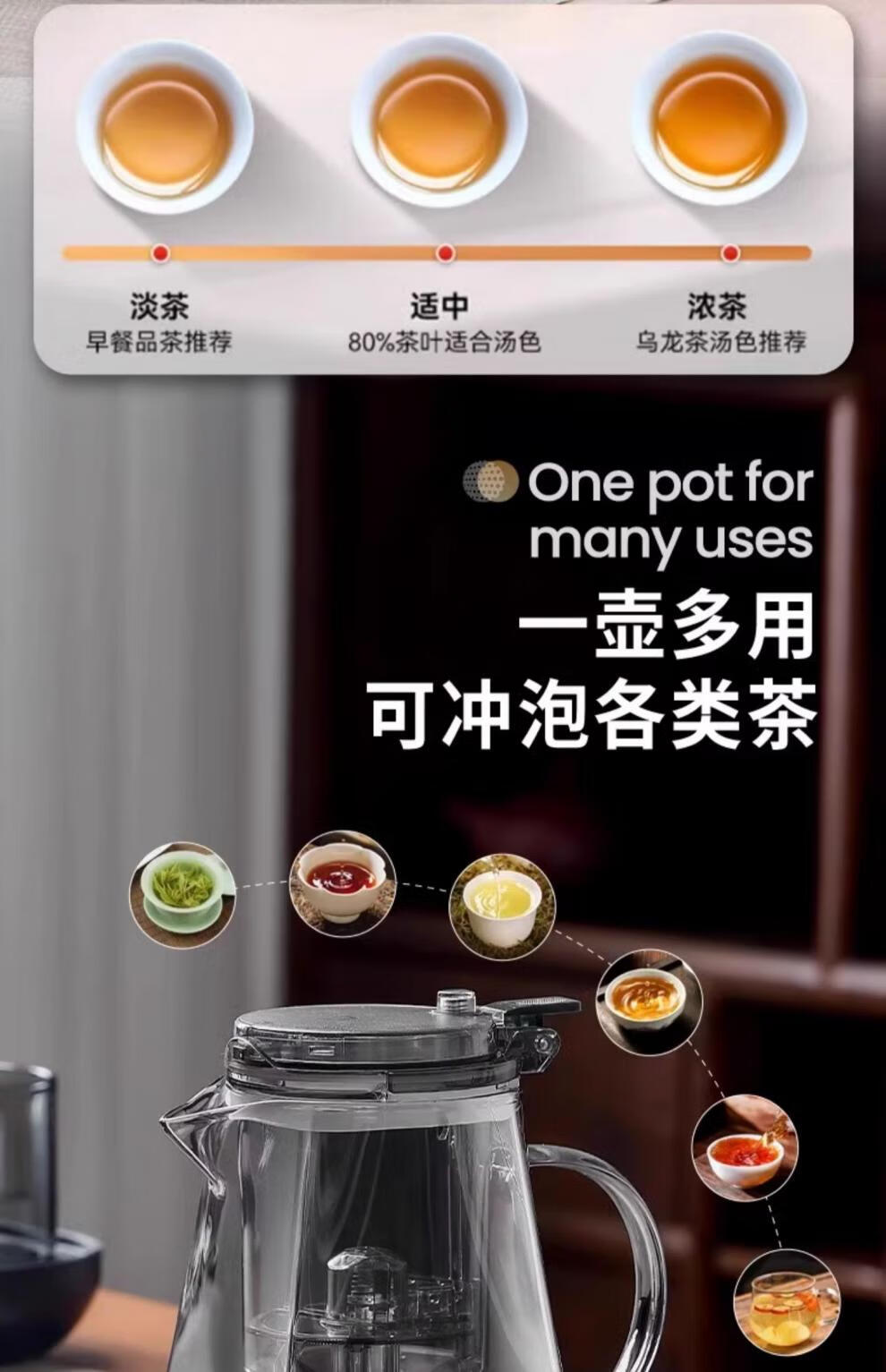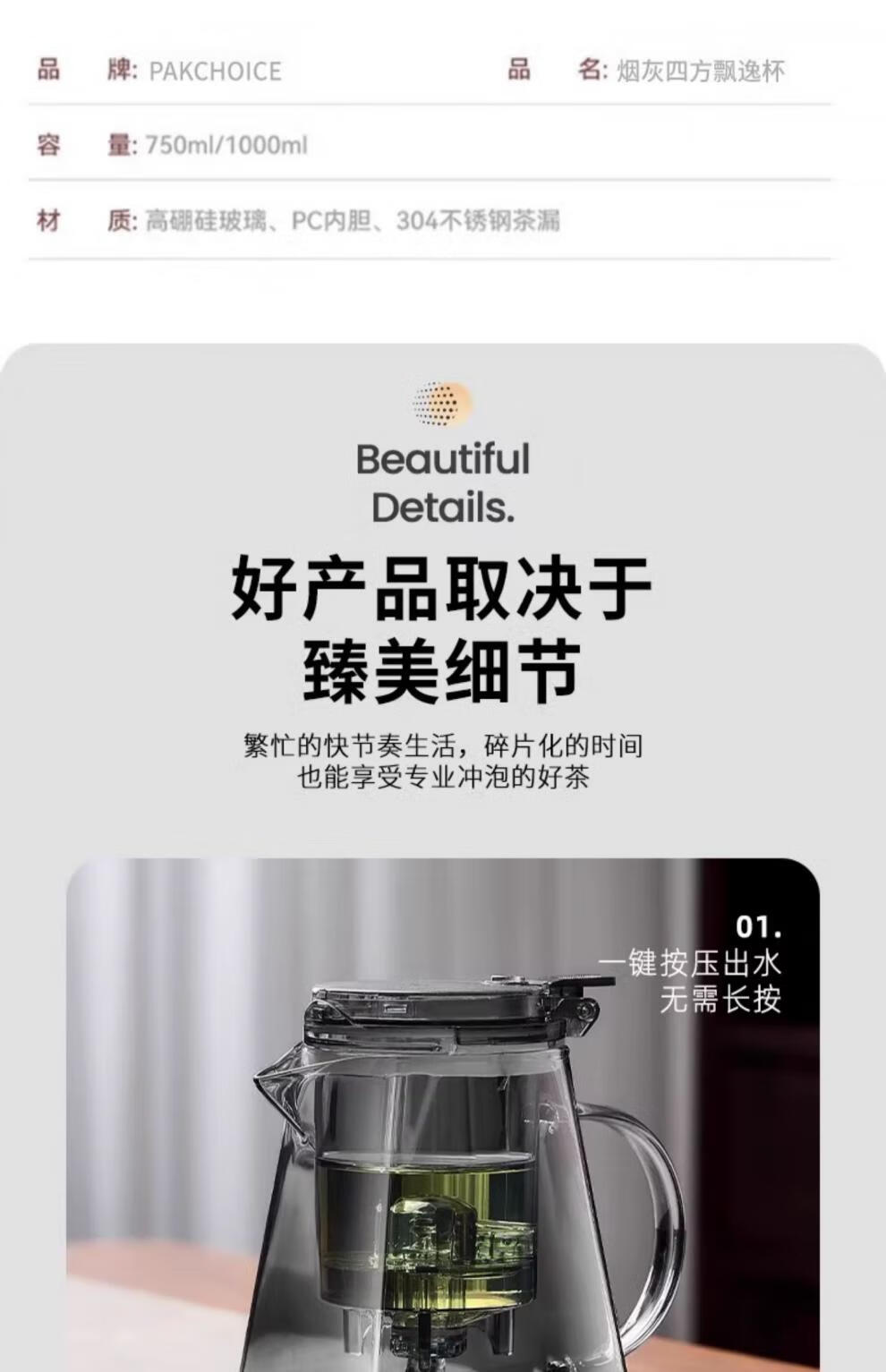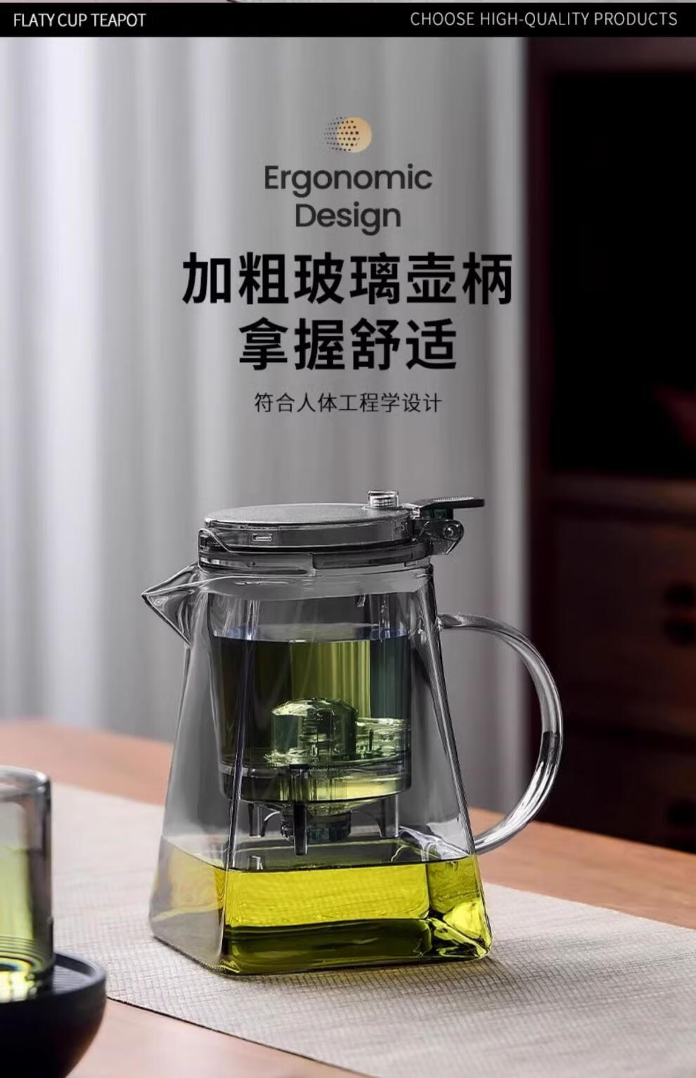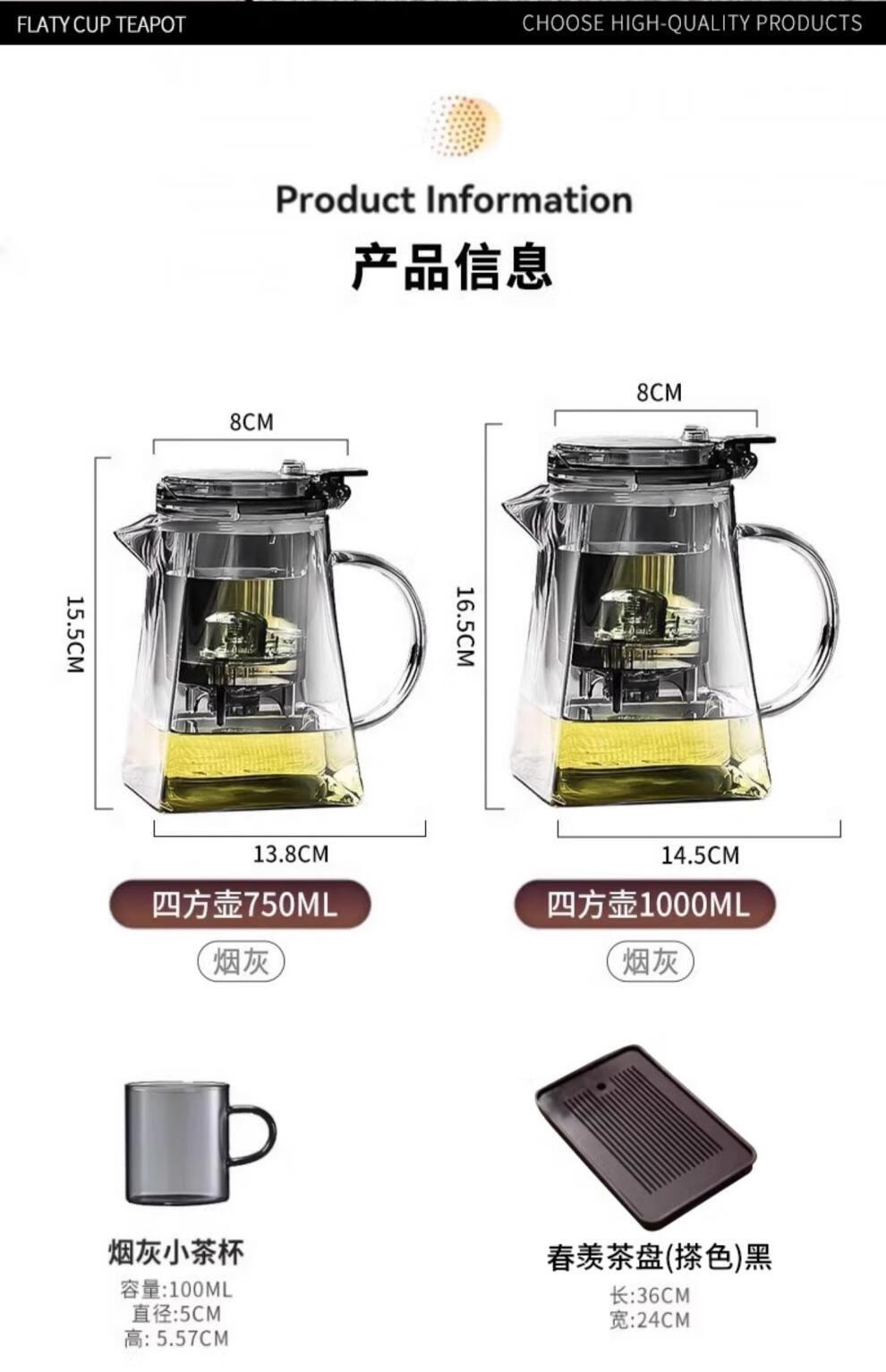 胖东来同款茶壶泡茶家用2025新款茶具套组专用单壶茶水分离泡茶杯 透明四方滤茶壶1000m.l+6品茗杯 701mL(含)-800mL(含)
