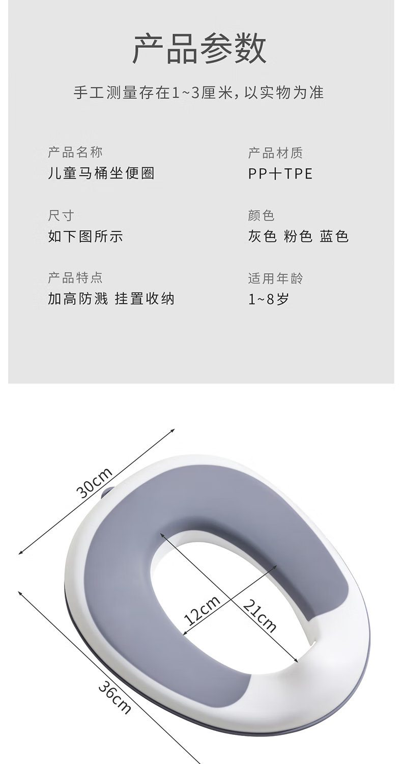 菲尔洁儿童马桶坐便圈小孩坐便垫马桶圈男女宝宝通用防溅厕所便携式神器 大象灰升级TPE软垫款【赠挂钩】 500