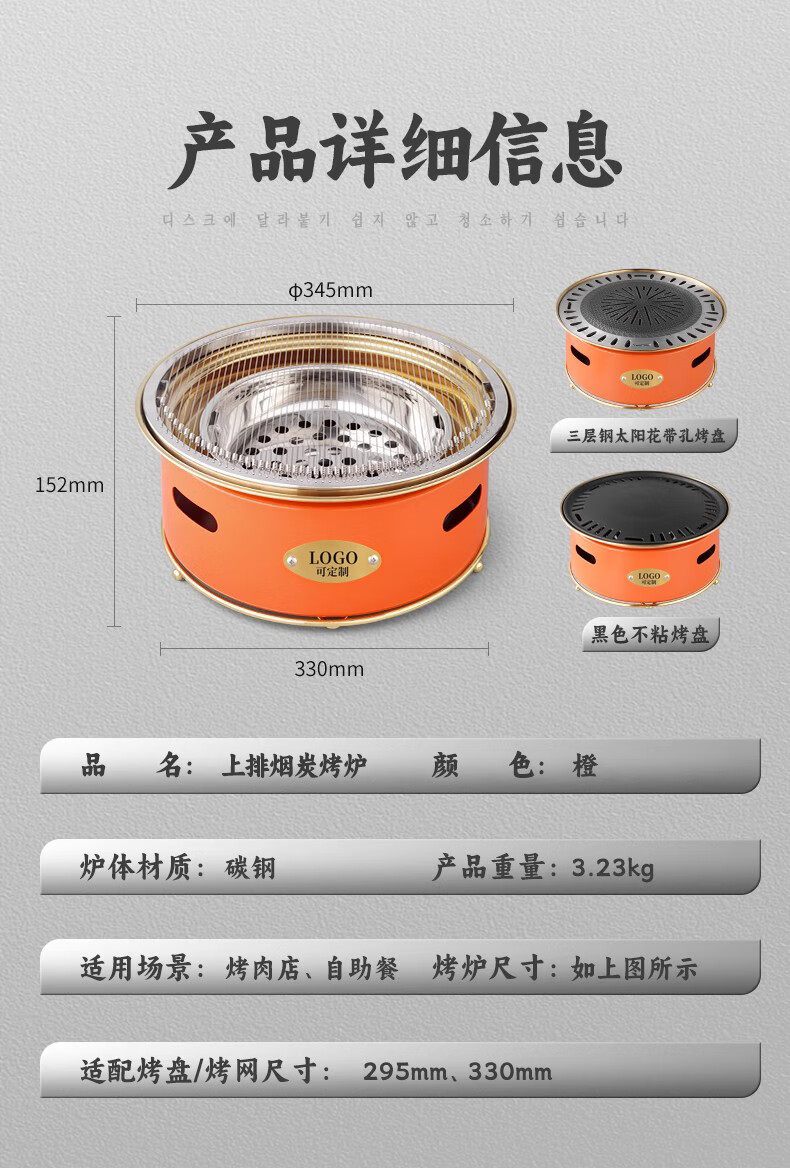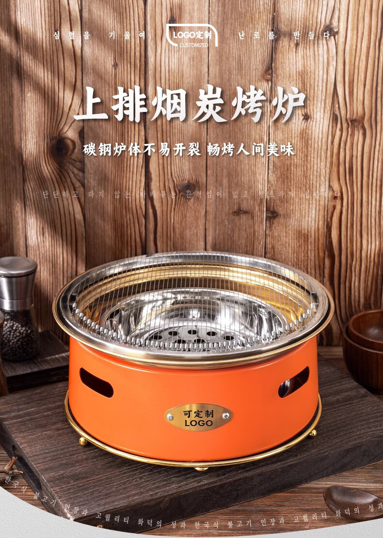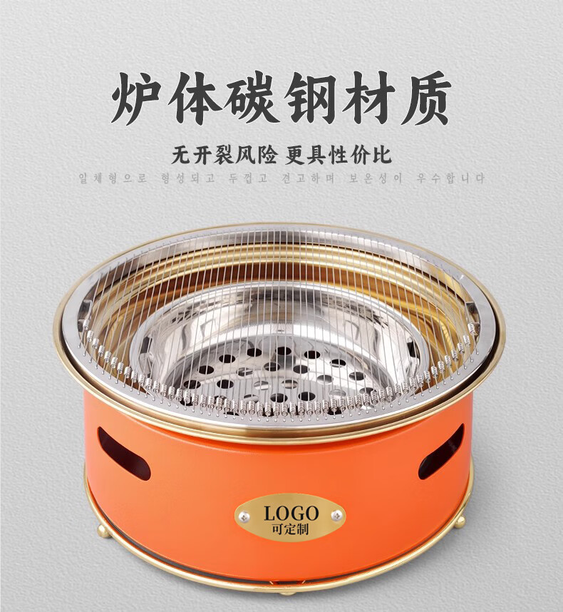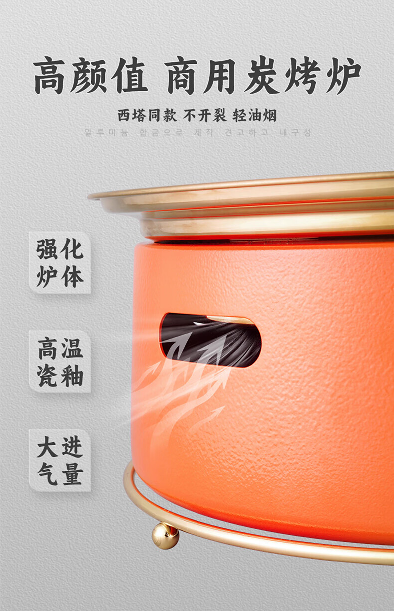 胤元西塔老太太网红同款韩式碳烤炉商用圆形烧烤炉烤火烤肉炉子炉具 碳钢泥炉配330三层钢满花烤盘