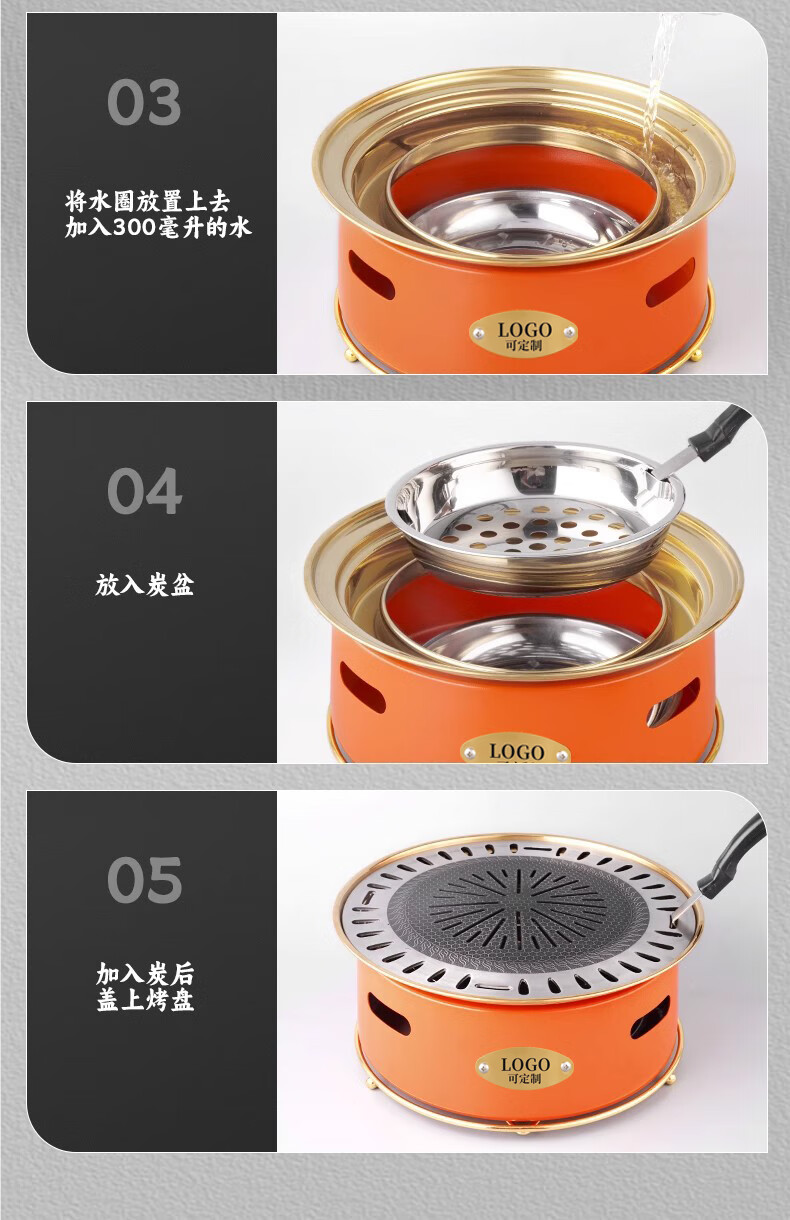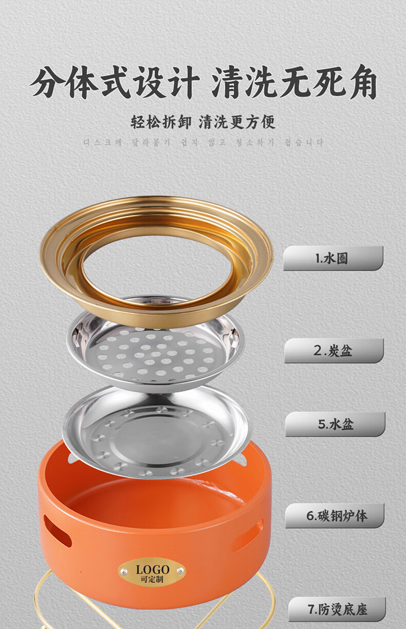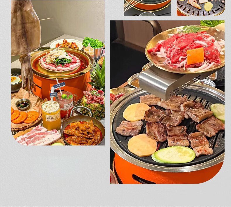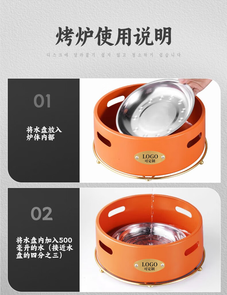 胤元西塔老太太网红同款韩式碳烤炉商用圆形烧烤炉烤火烤肉炉子炉具 碳钢泥炉配330三层钢满花烤盘