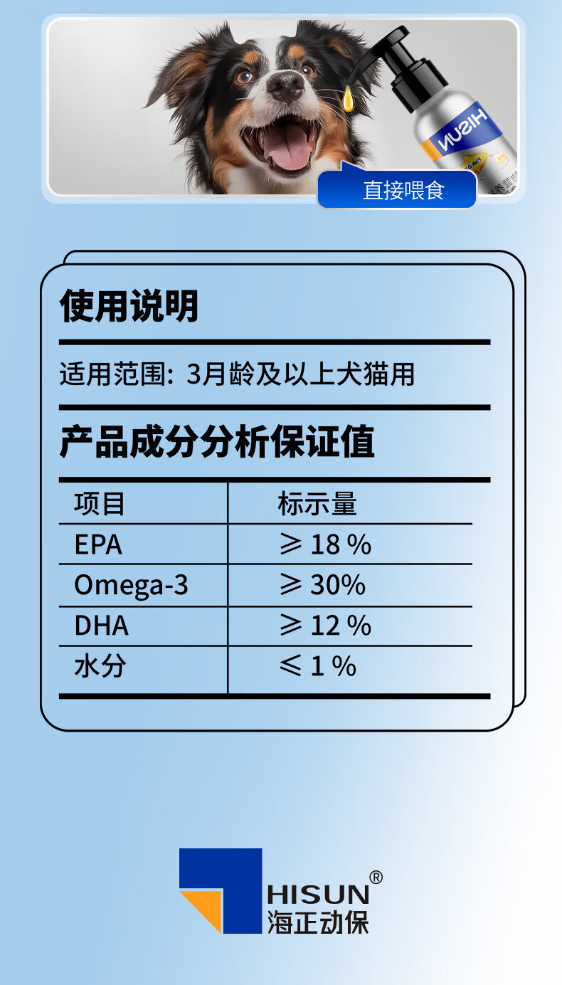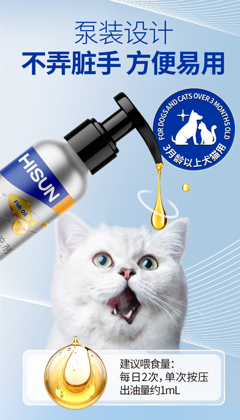 海正动保(HISUN) 泵压猫咪鱼油60ml狗狗通用高纯度