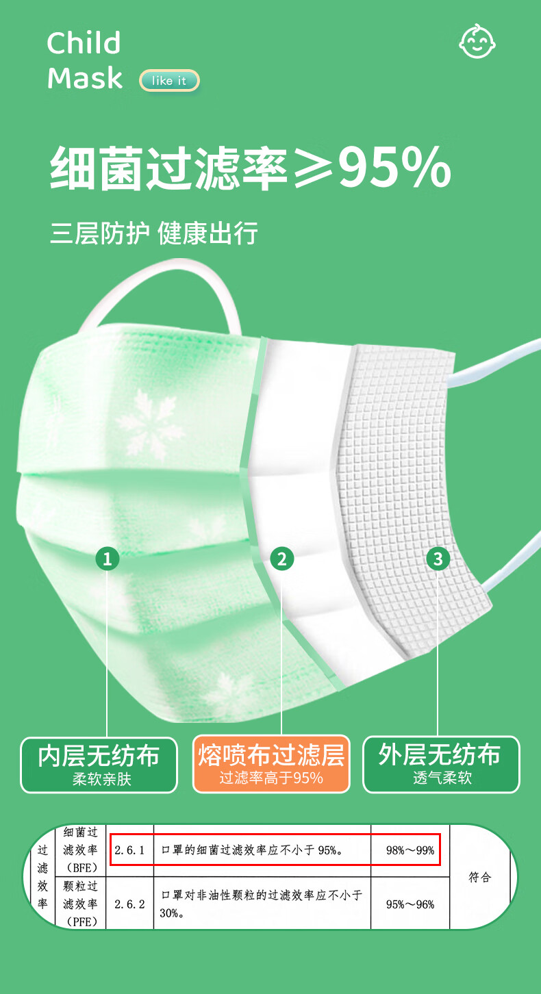 江赫 儿童一次性医用外科口罩 灭菌级 含熔喷布舒适透气保暖 【灭菌级】医用外科口罩 100只/10袋