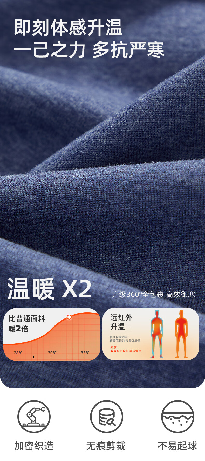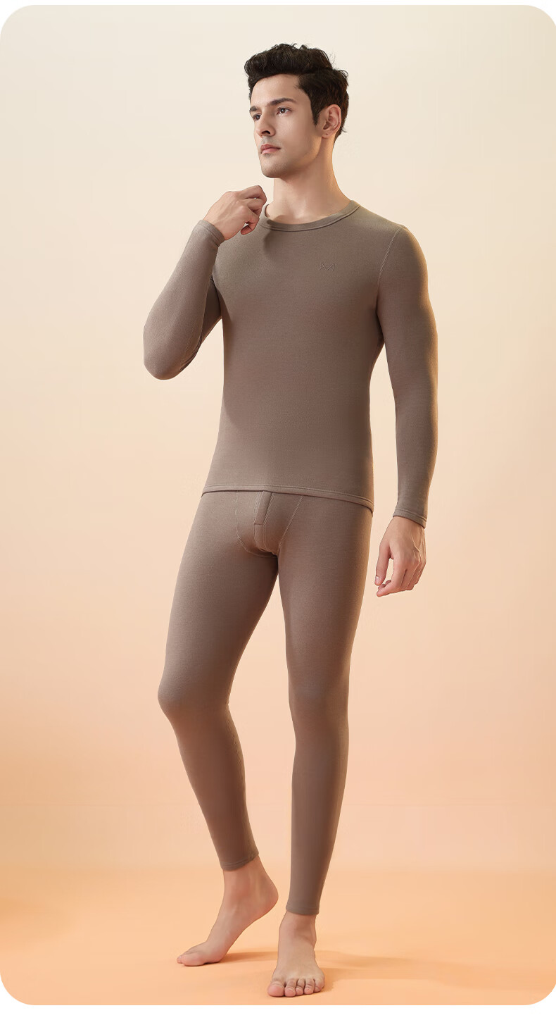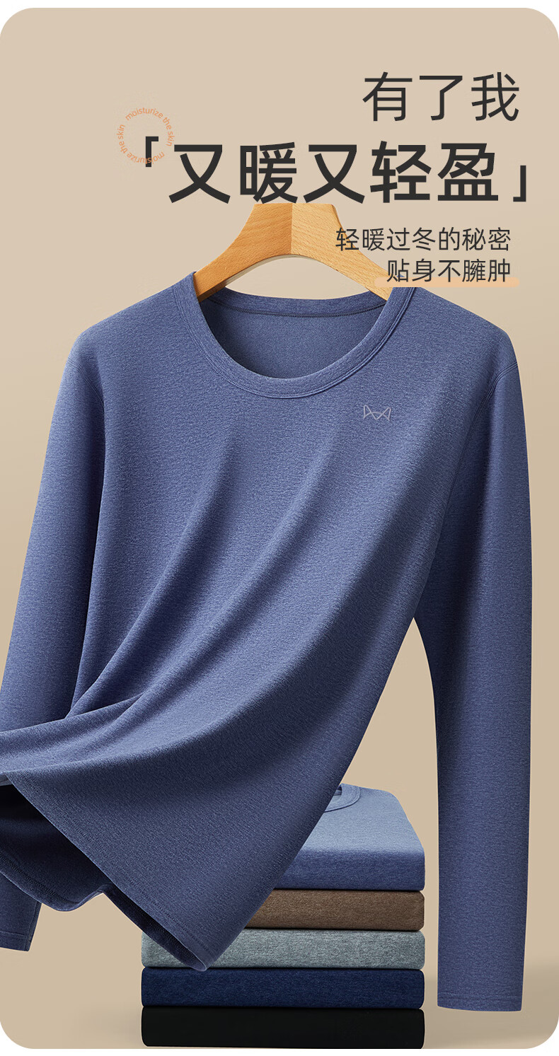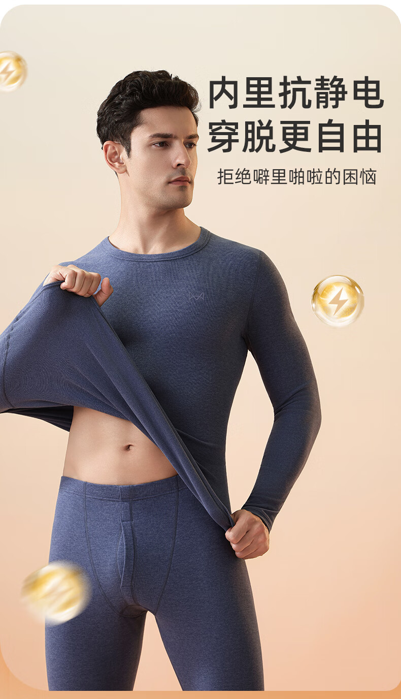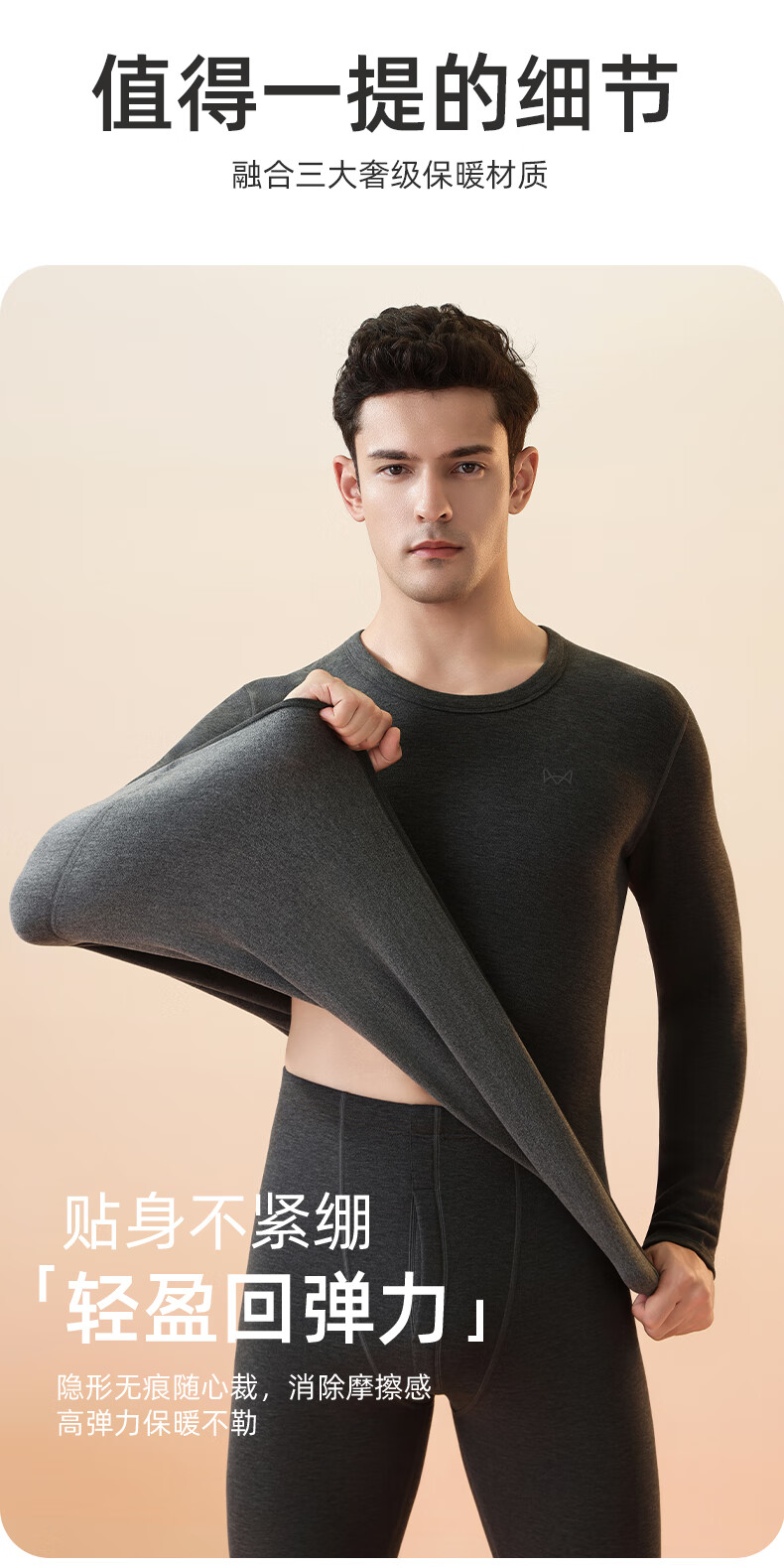 猫人保暖内衣男士套装秋衣秋裤新款青少年内搭女士暖肌衣抗静电秋冬季 黑色男款包领 XL