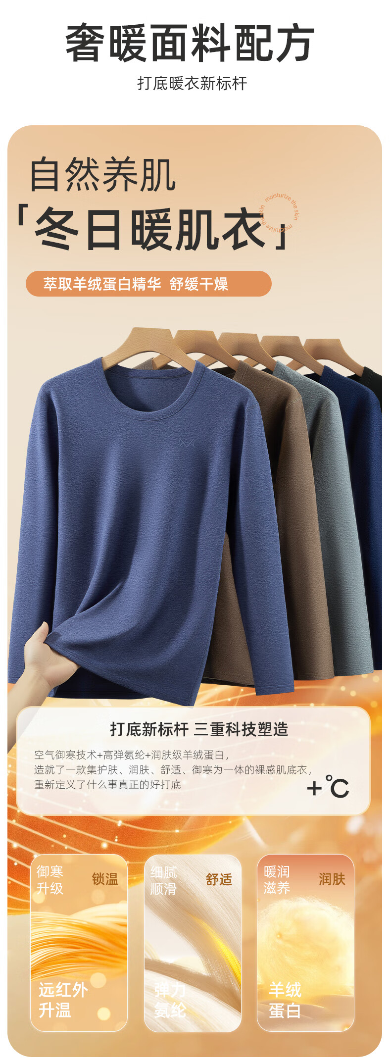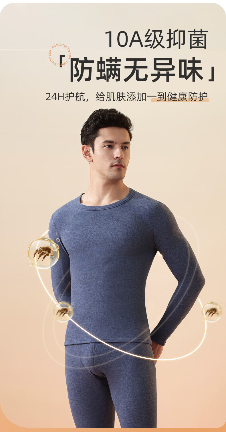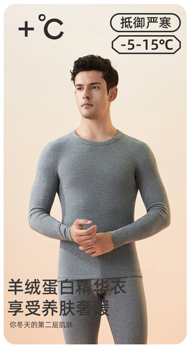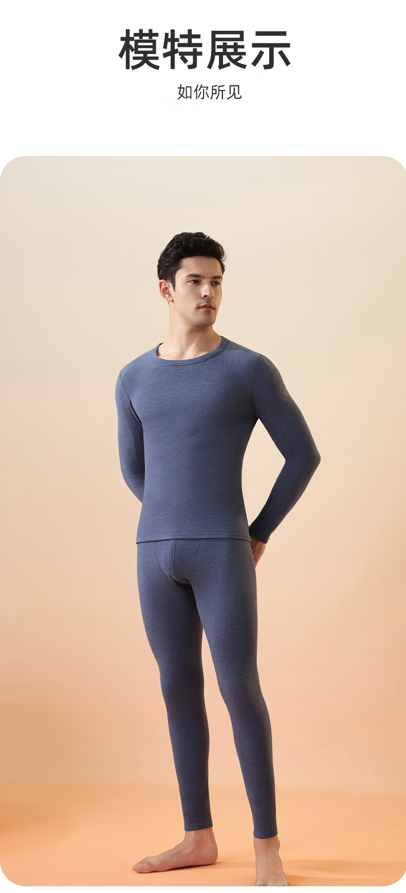 猫人保暖内衣男士套装秋衣秋裤新款青少年内搭女士暖肌衣抗静电秋冬季 黑色男款包领 XL