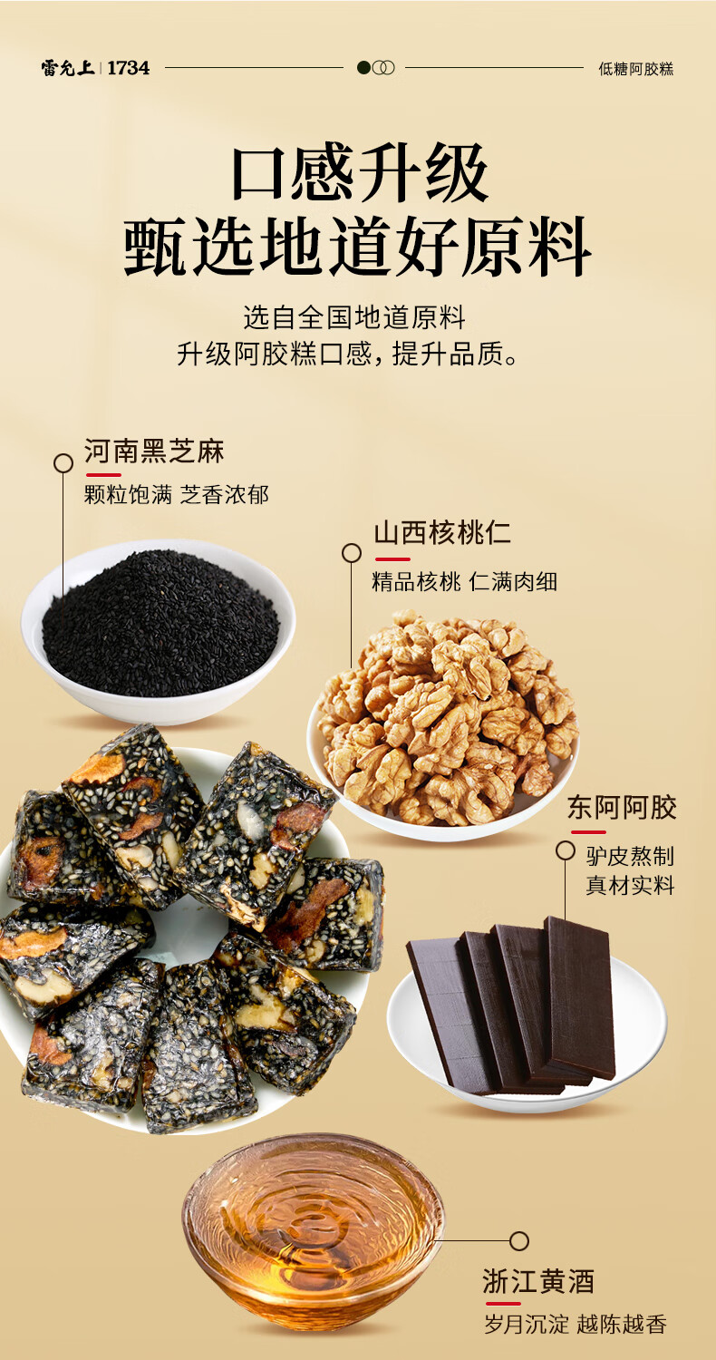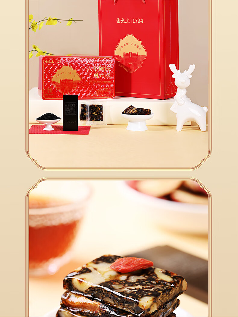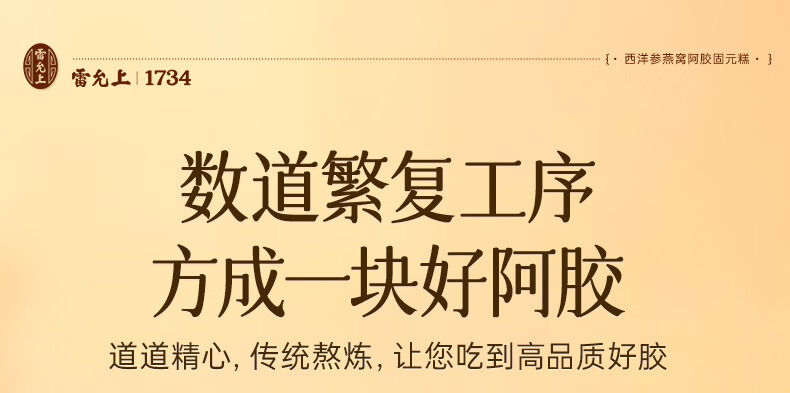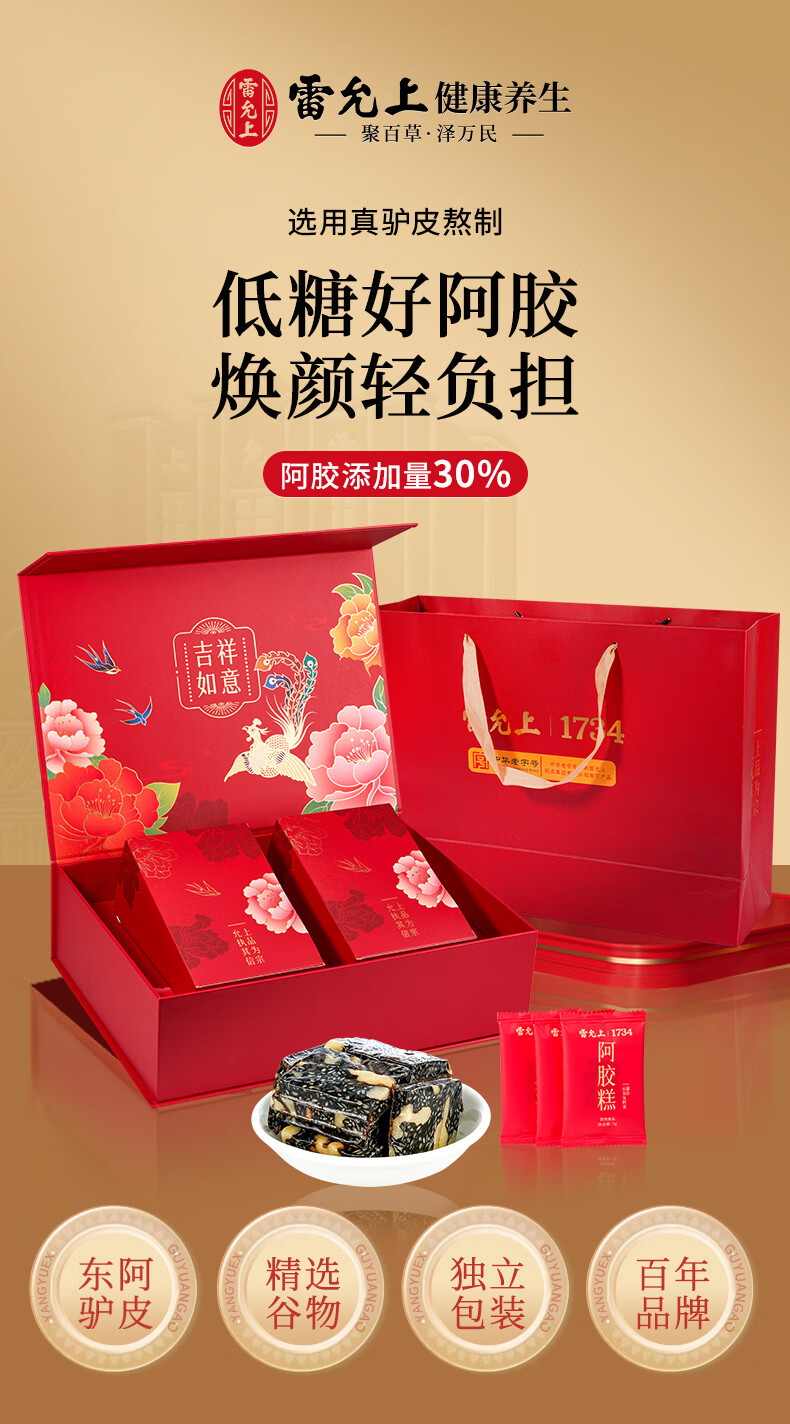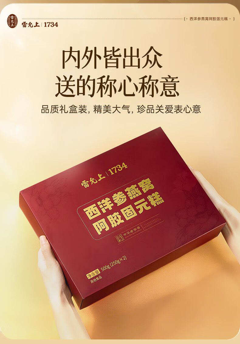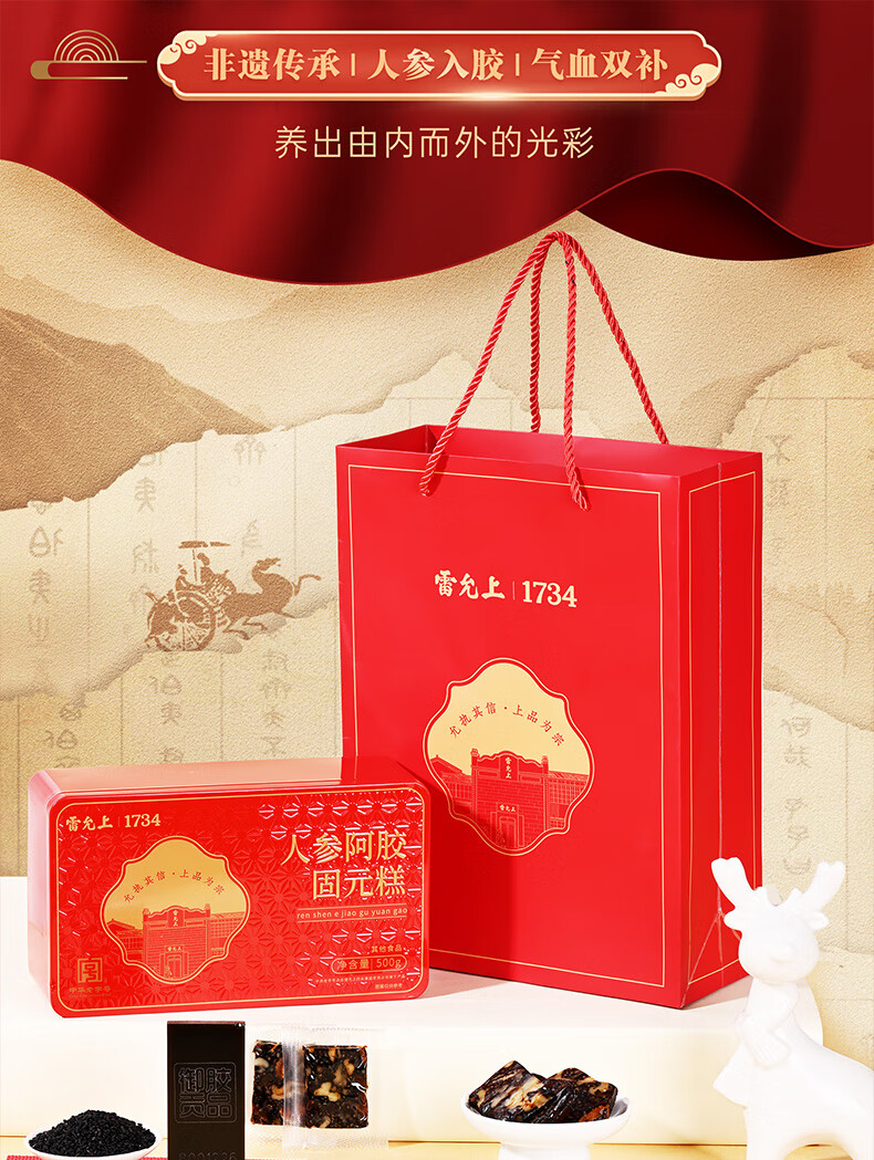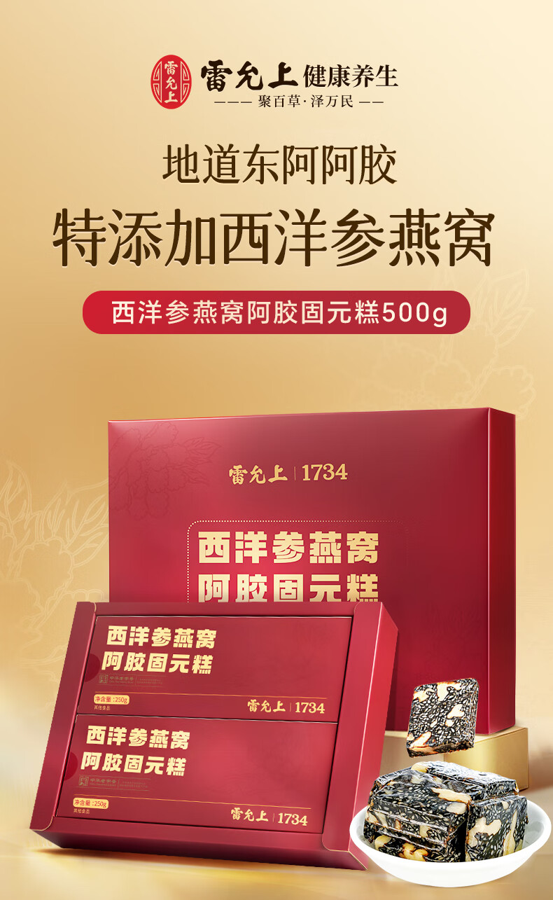 雷允上【官方】阿胶糕即食阿胶固元膏女性滋补品礼盒送家人健康 西洋参燕窝阿胶固元糕 500g*1盒 50块