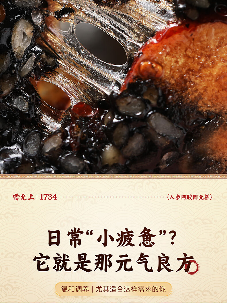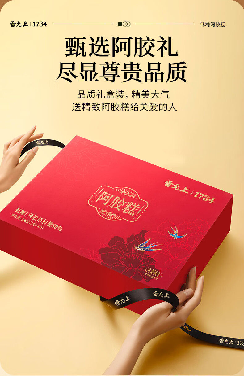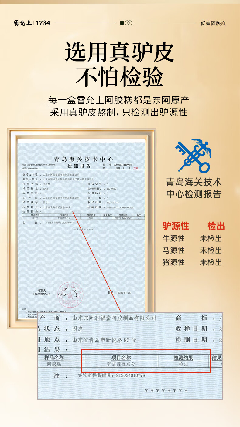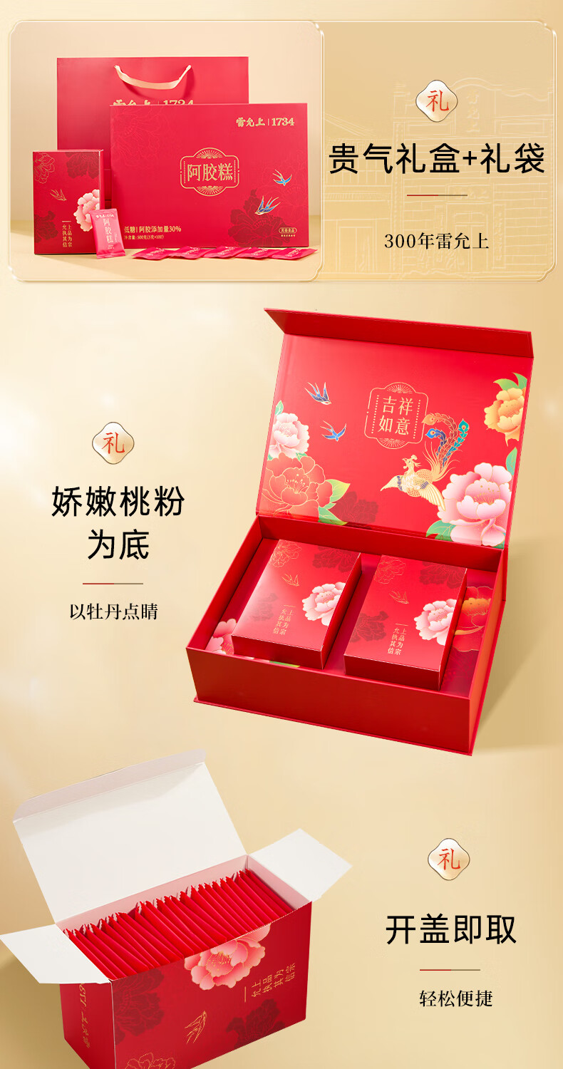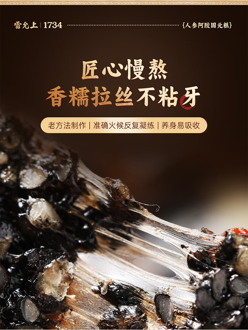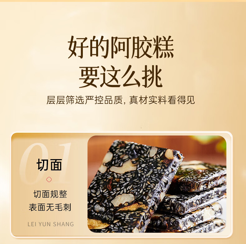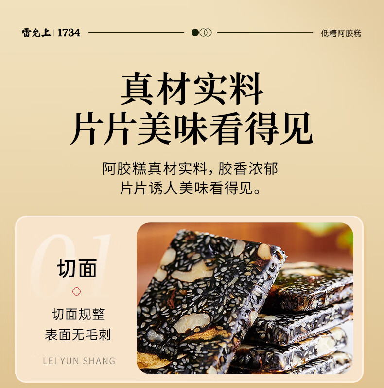 雷允上【官方】阿胶糕即食阿胶固元膏女性滋补品礼盒送家人健康 西洋参燕窝阿胶固元糕 500g*1盒 50块
