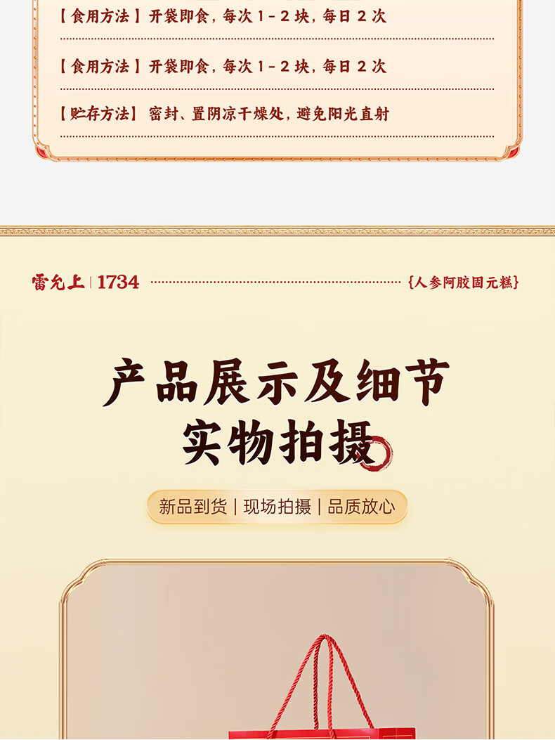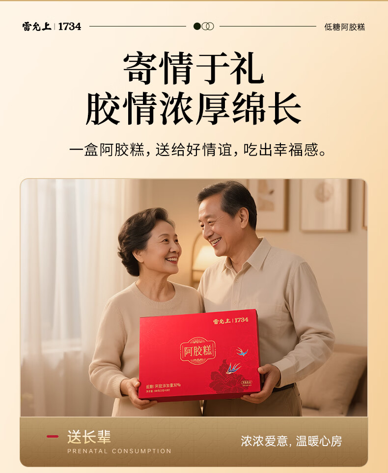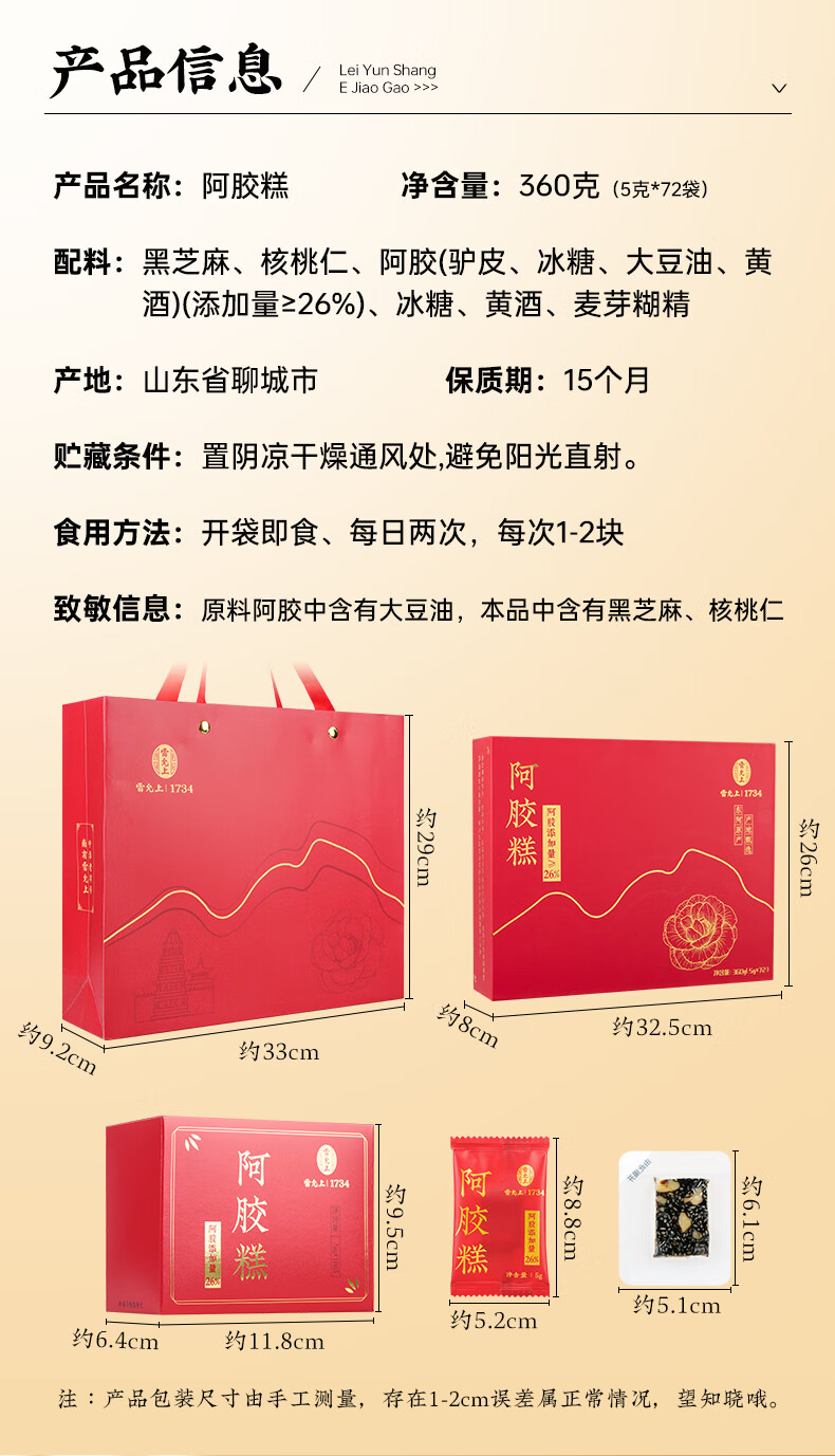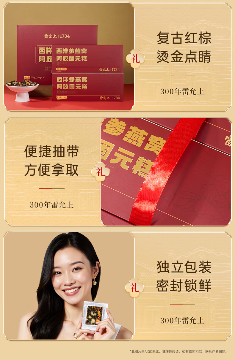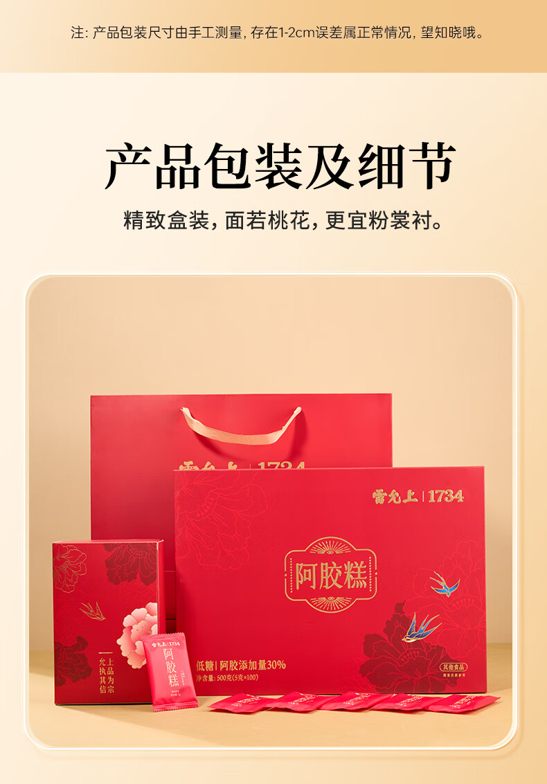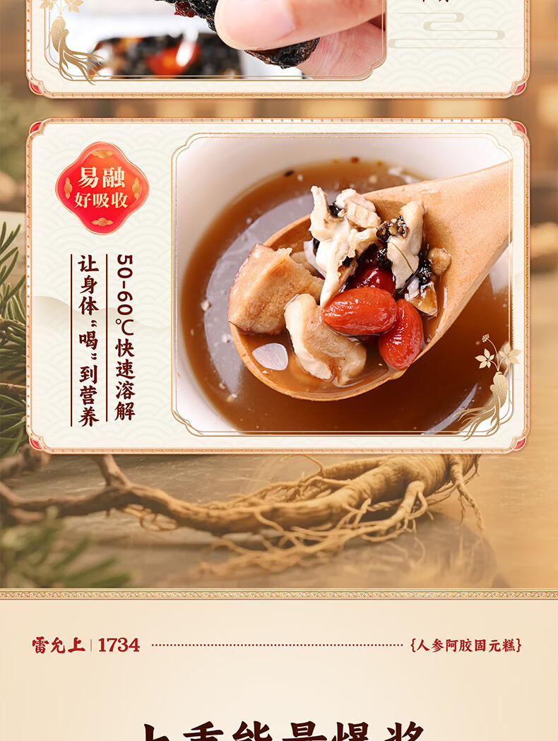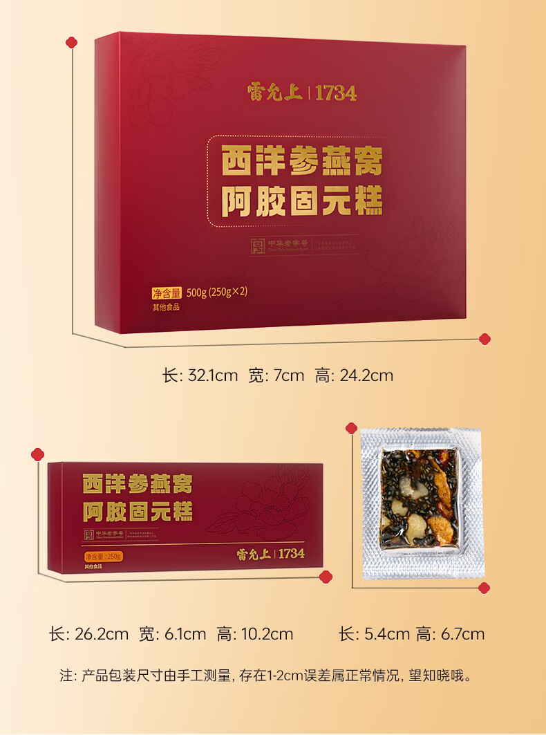 雷允上【官方】阿胶糕即食阿胶固元膏女性滋补品礼盒送家人健康 西洋参燕窝阿胶固元糕 500g*1盒 50块