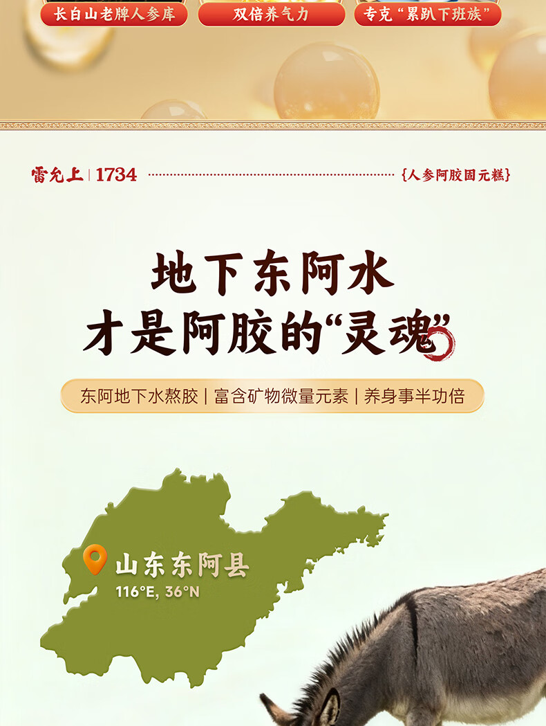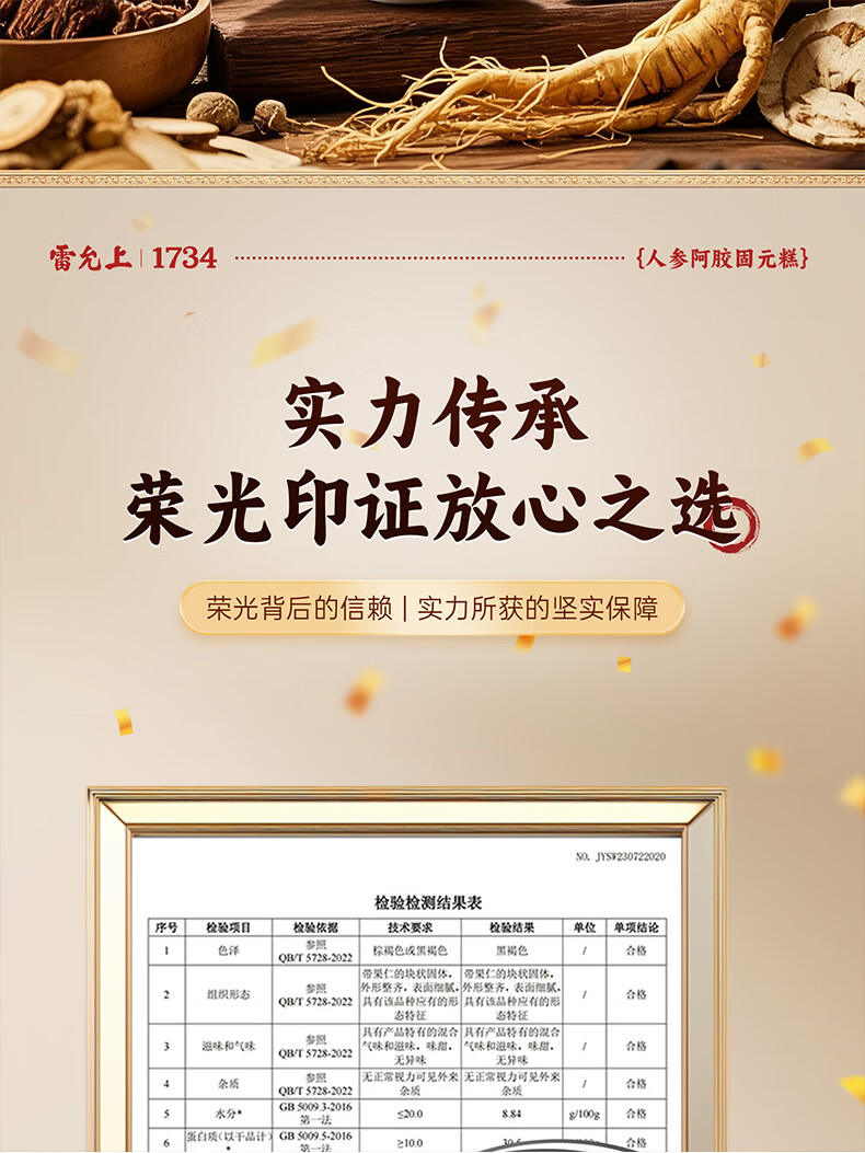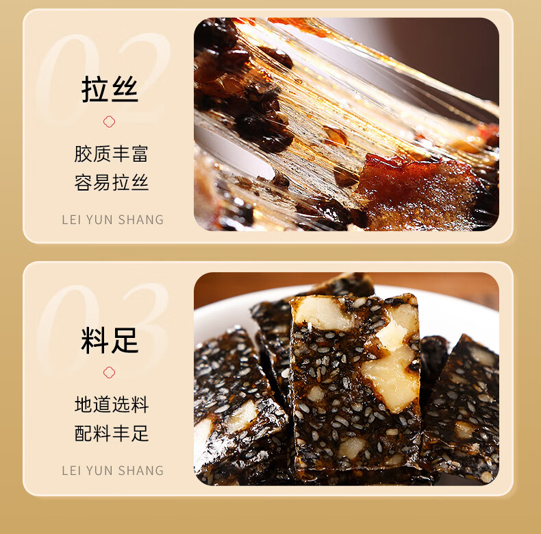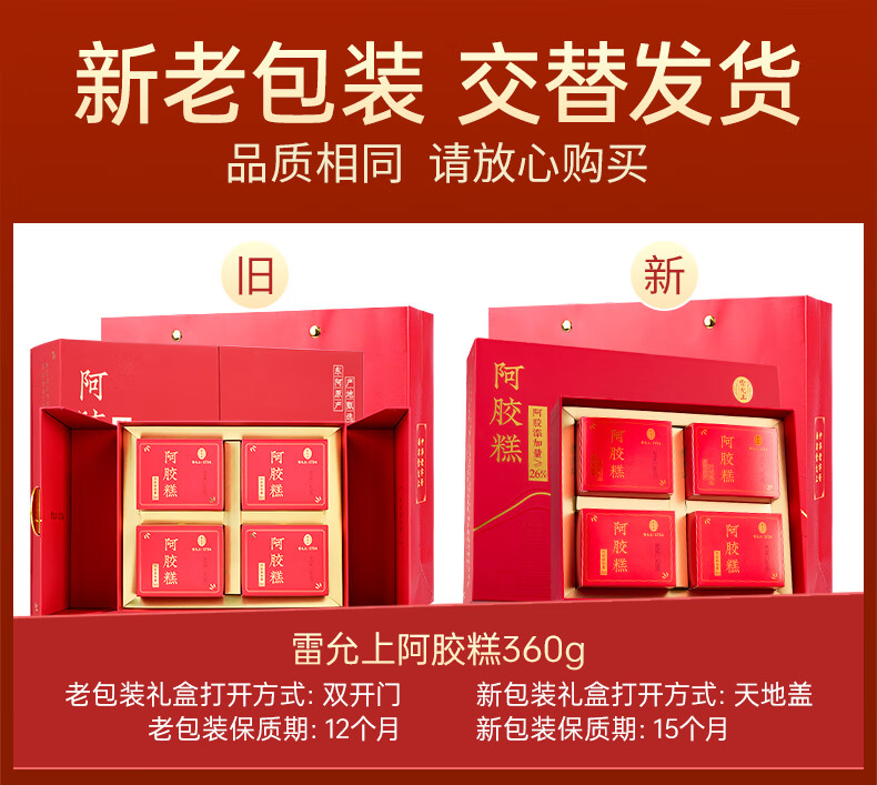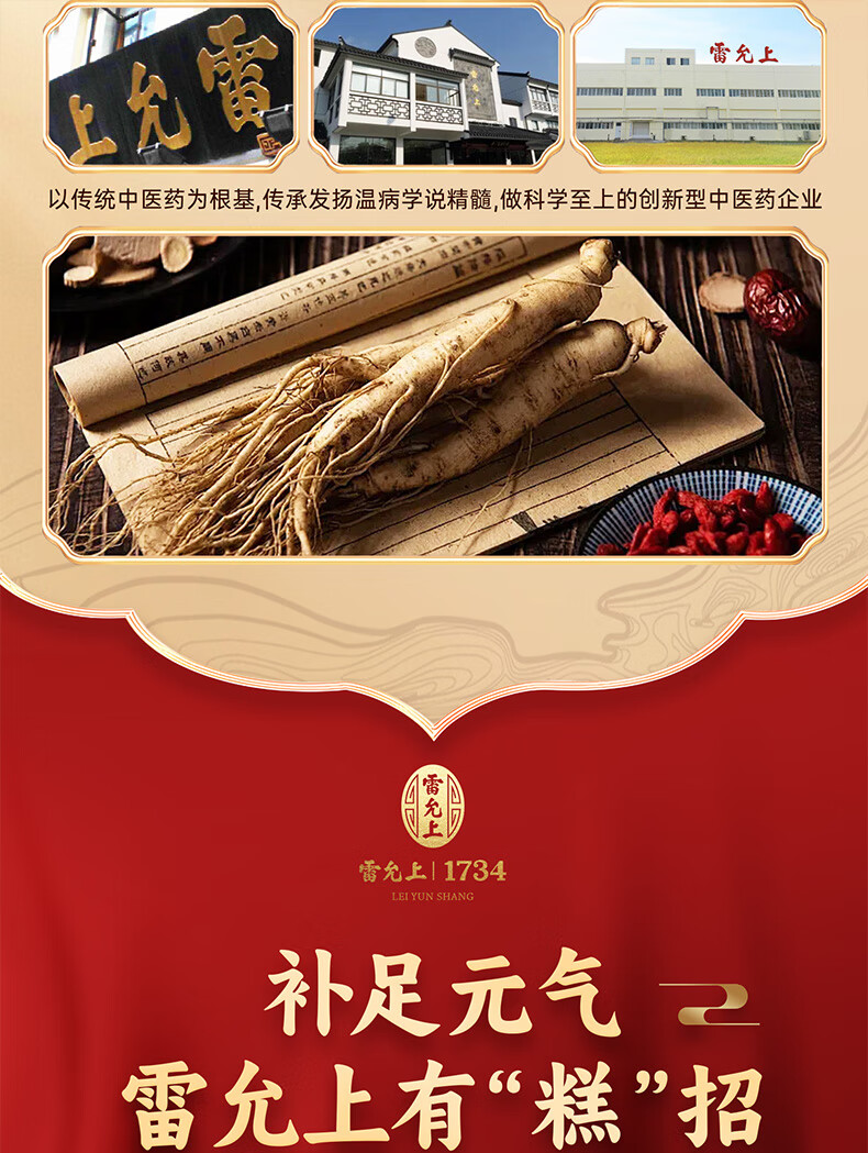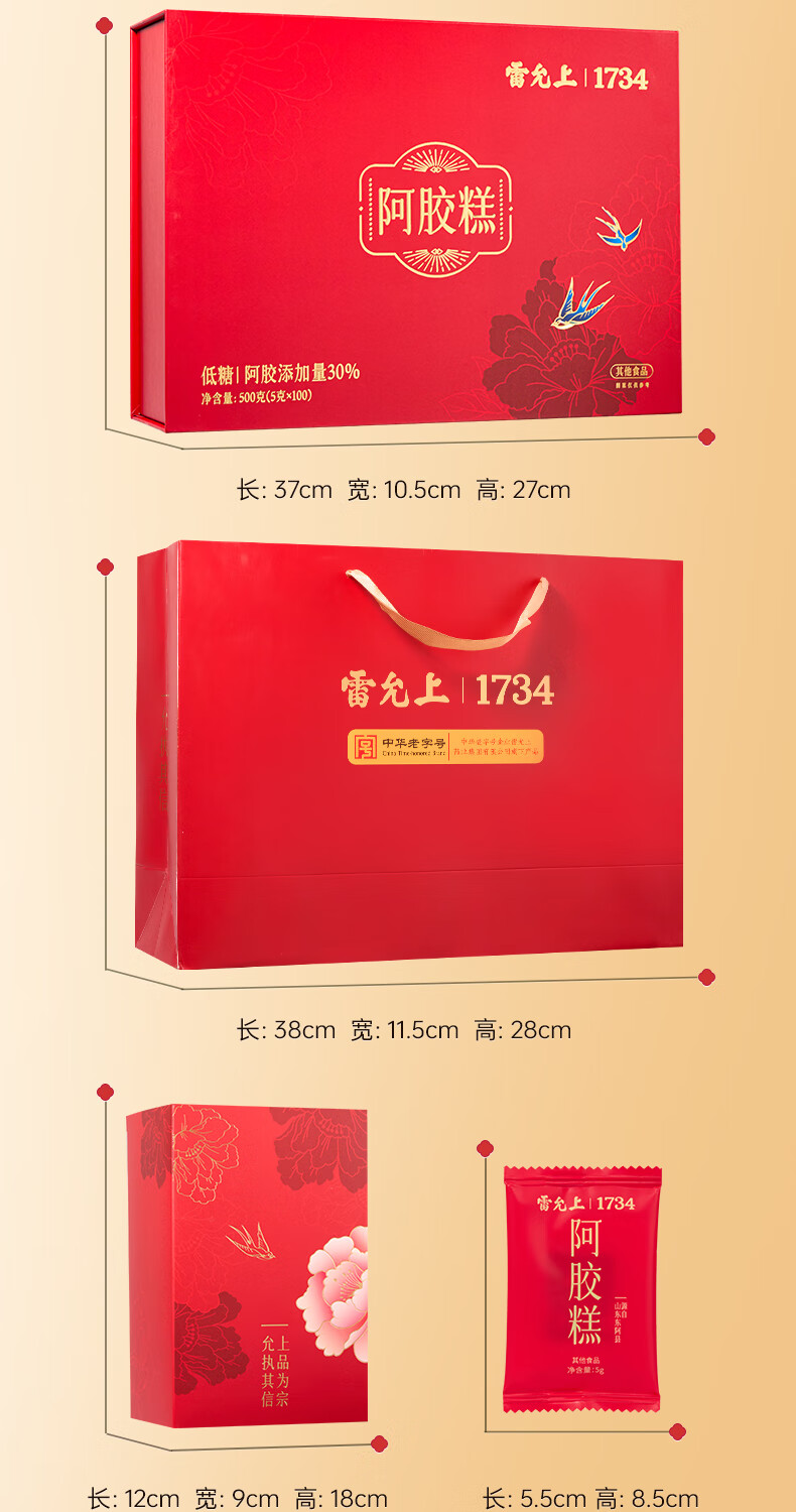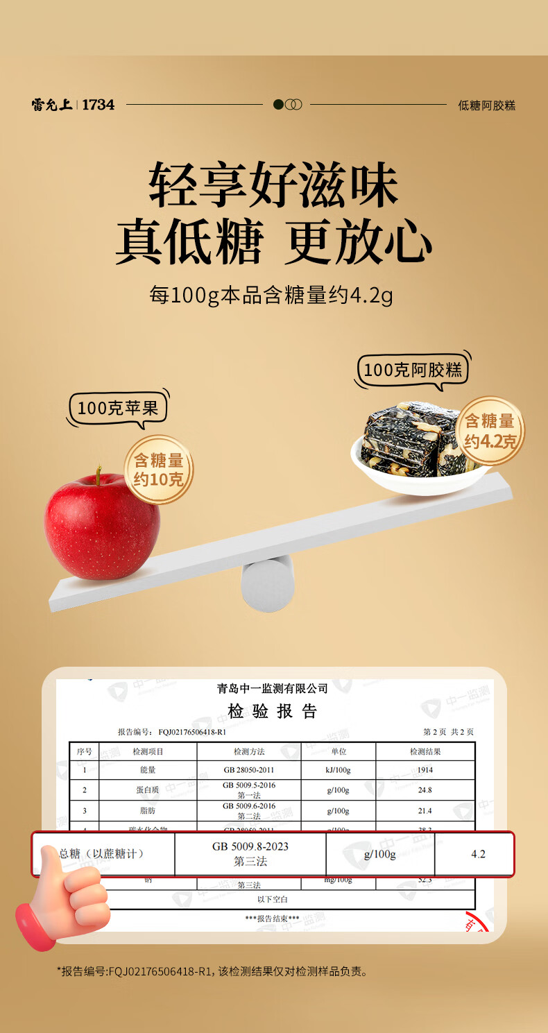 雷允上【官方】阿胶糕即食阿胶固元膏女性滋补品礼盒送家人健康 西洋参燕窝阿胶固元糕 500g*1盒 50块