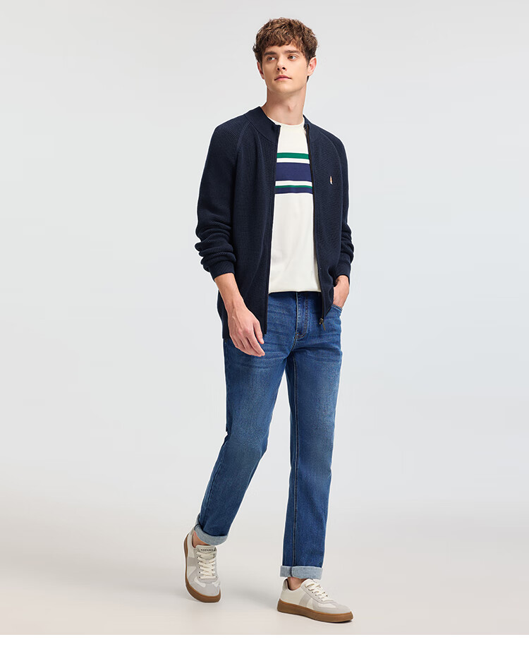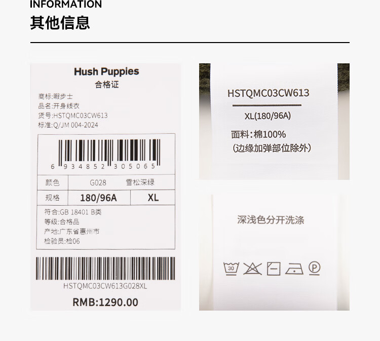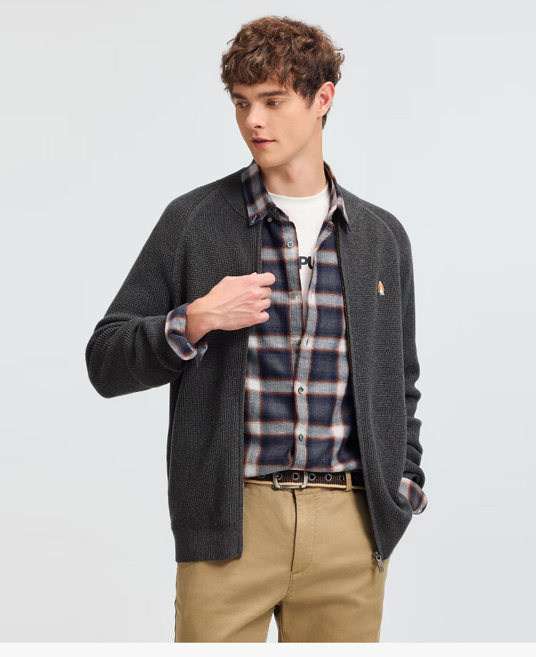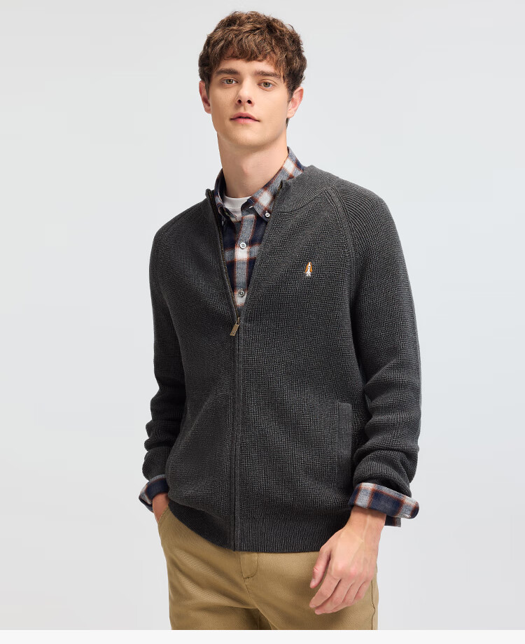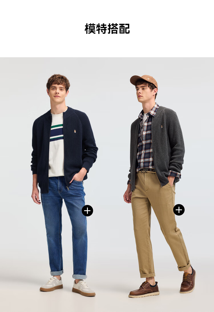 暇步士(Hush Puppies)【舒适全棉】男装2025秋季简约基础款休闲高领开身线衣 谧静灰 L