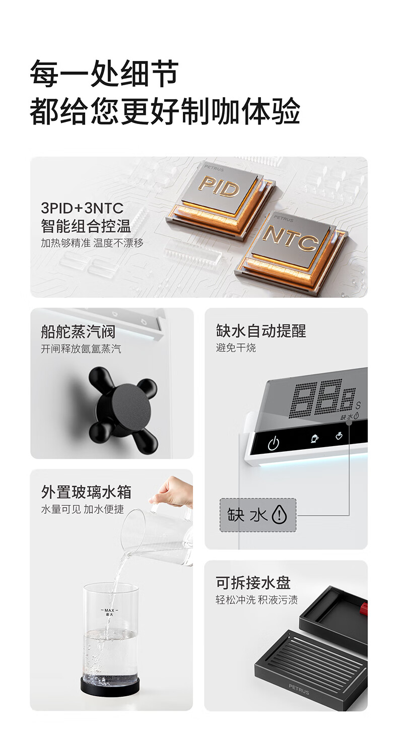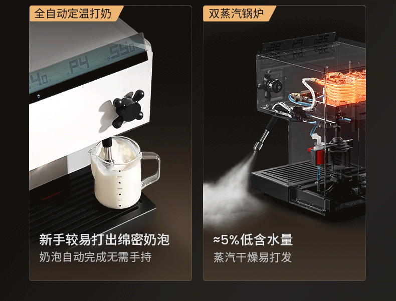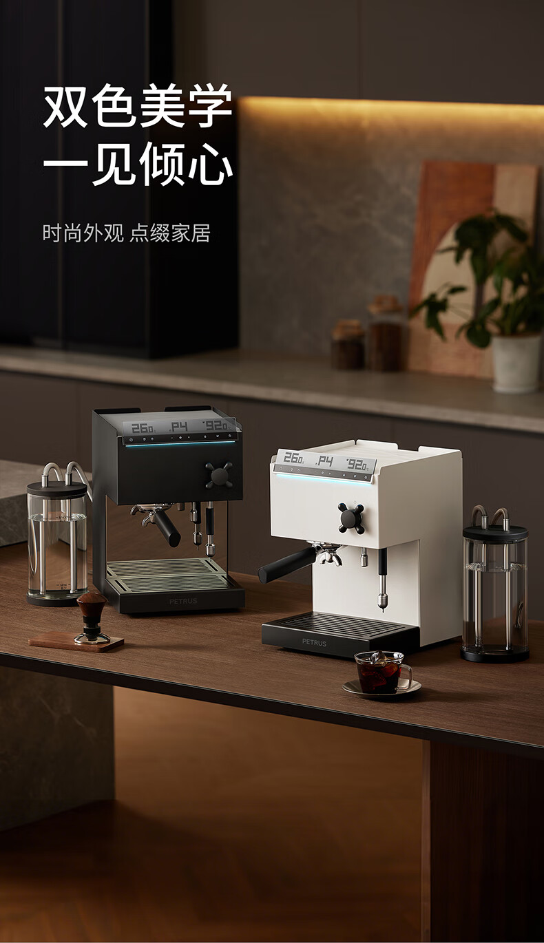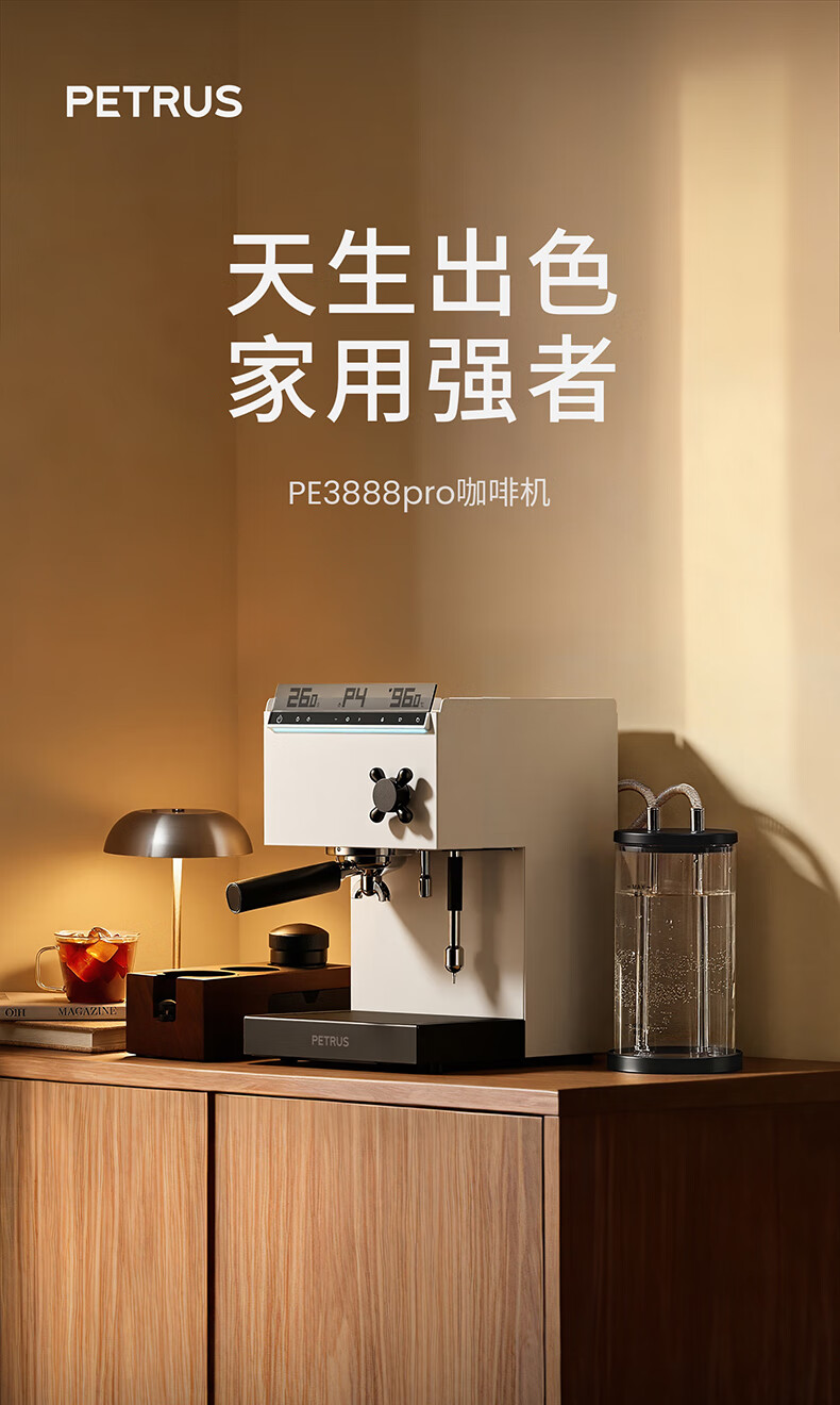 柏翠咖啡机家用意式半自动浓缩商用办公室小型一体机奶泡双锅炉独立热水PE3888pro 圣诞礼物 星空灰