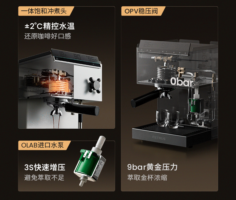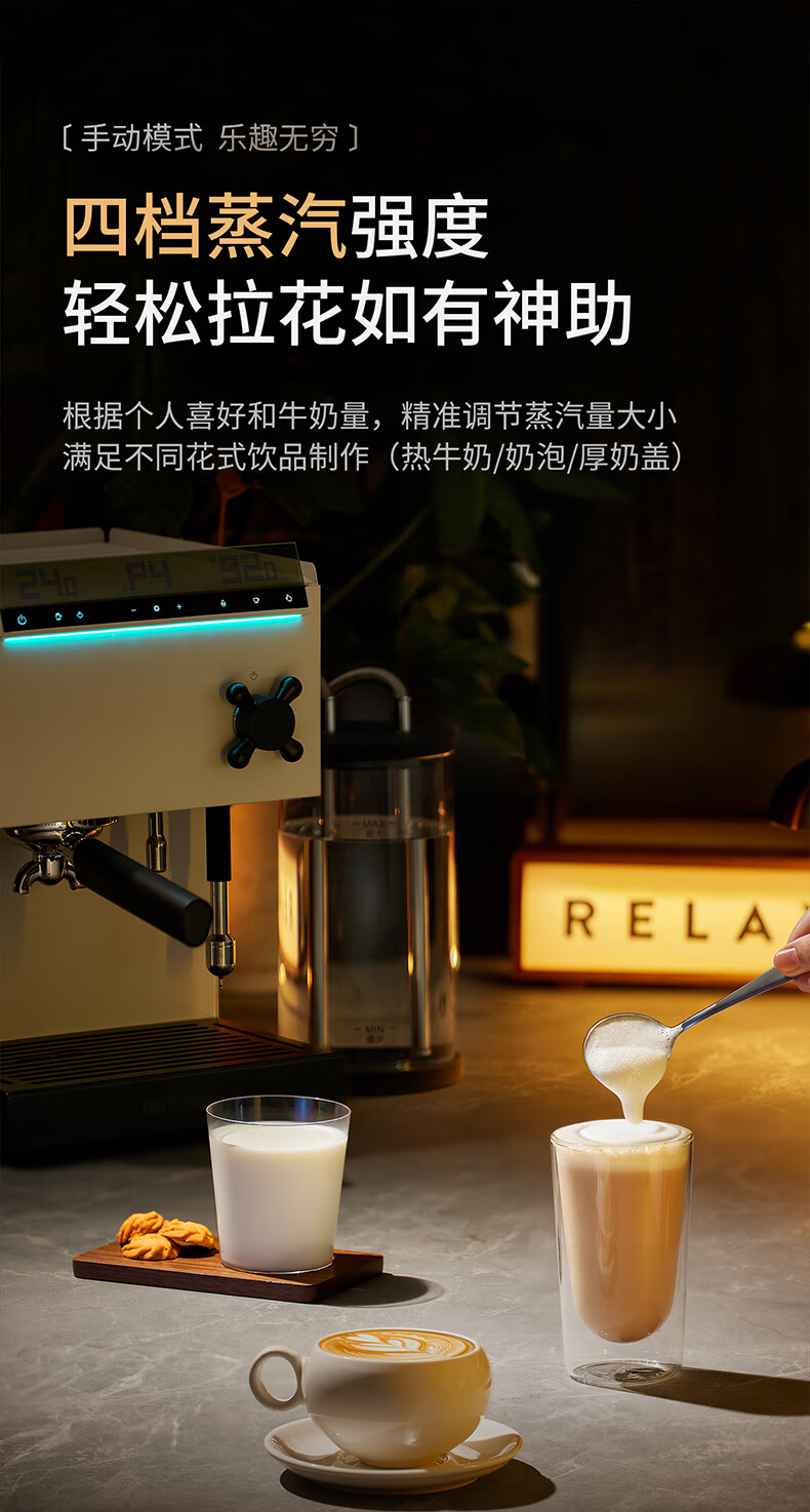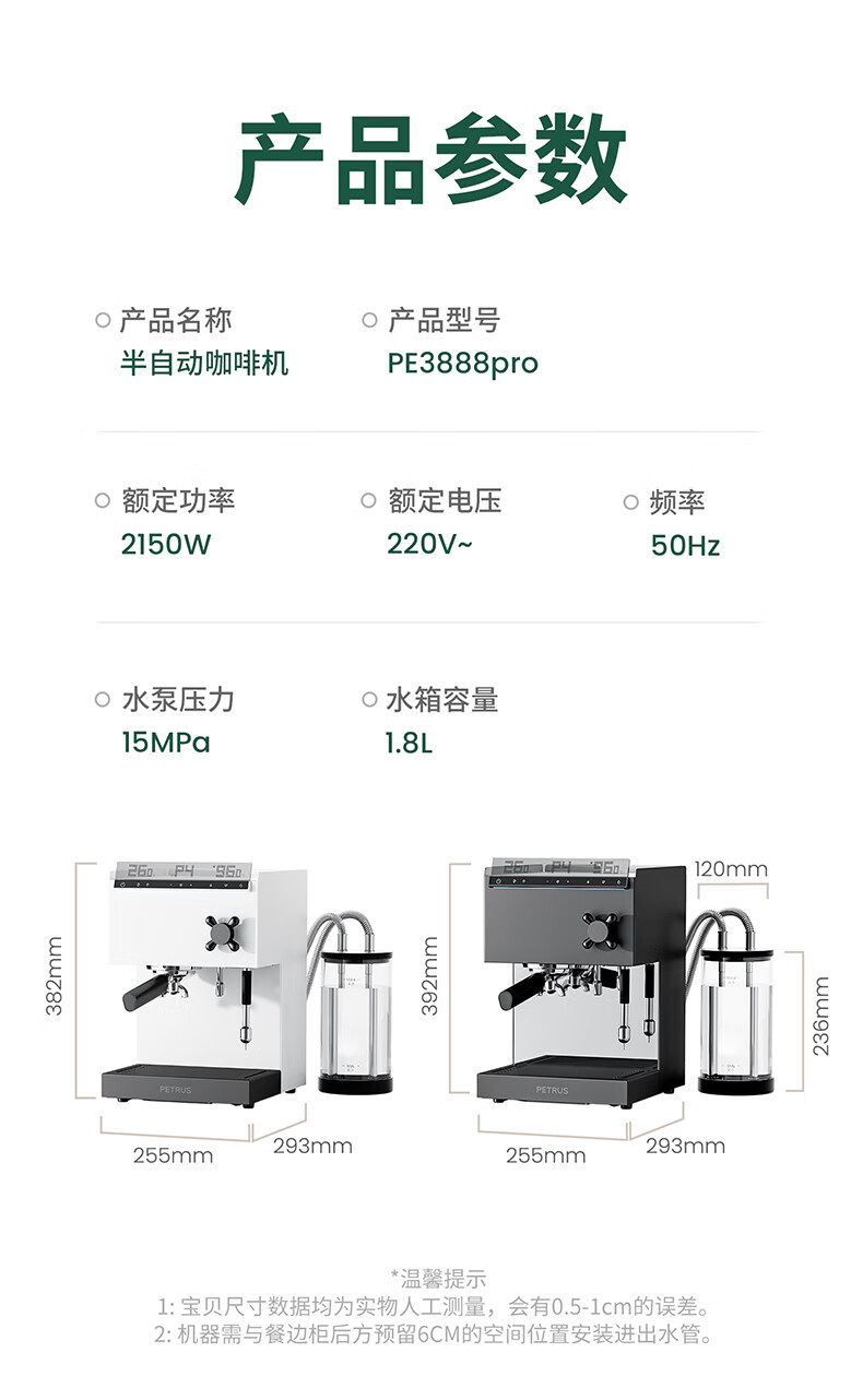 柏翠咖啡机家用意式半自动浓缩商用办公室小型一体机奶泡双锅炉独立热水PE3888pro 圣诞礼物 星空灰