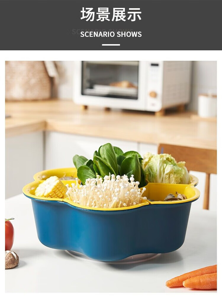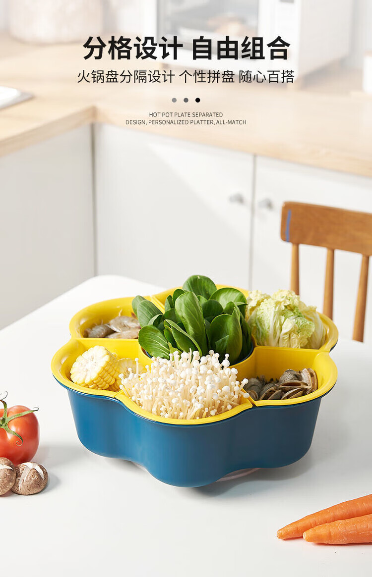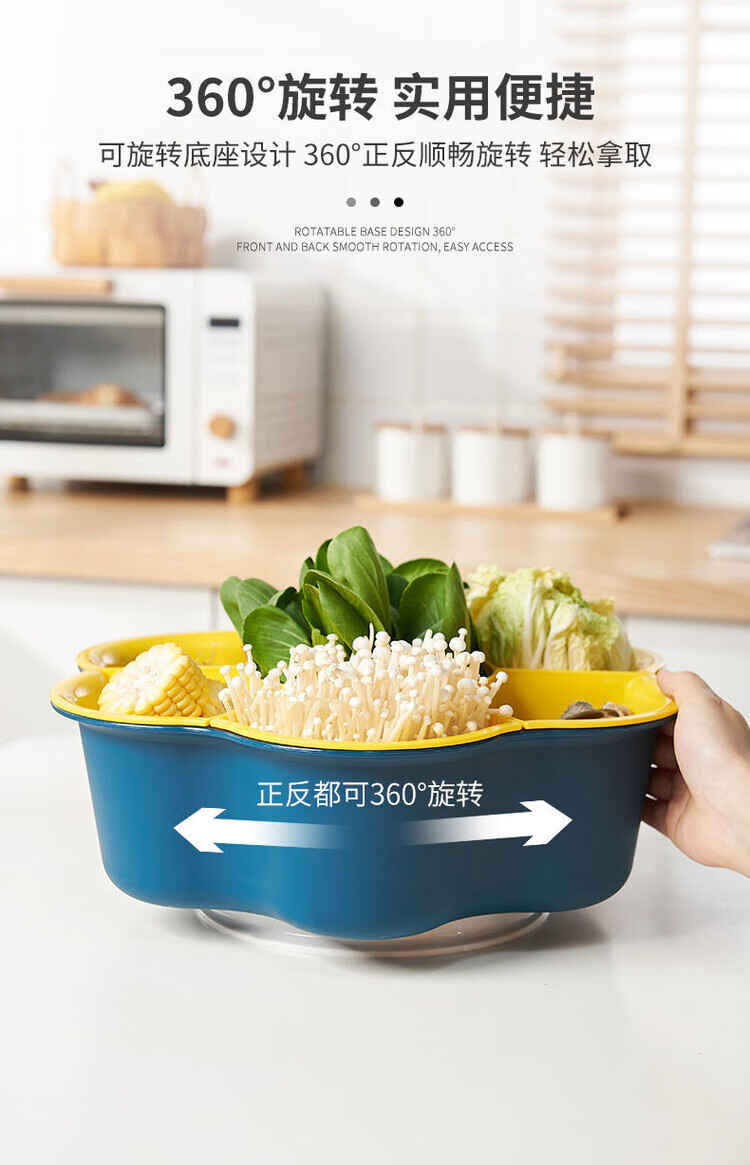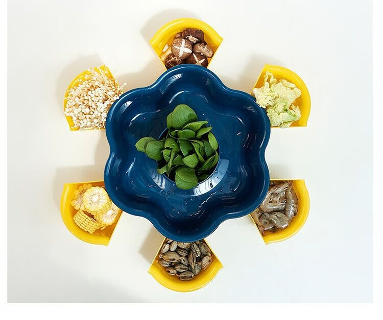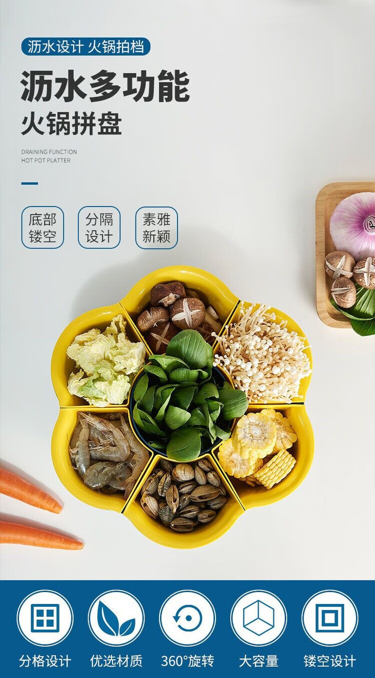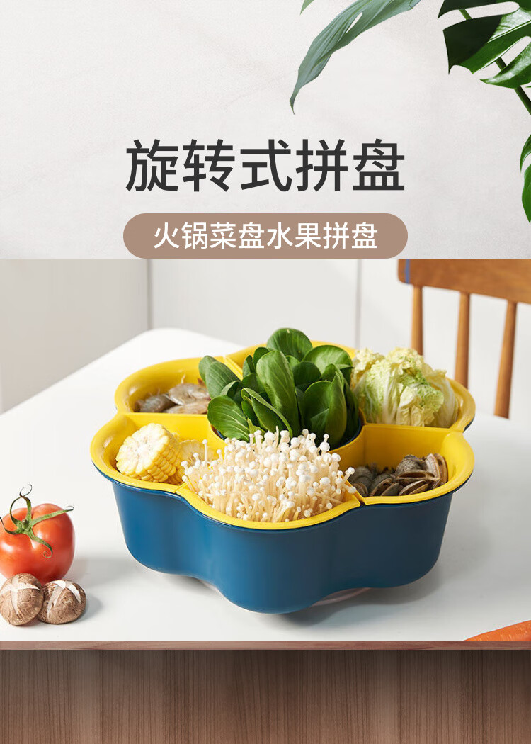 LZJV火锅盘子菜盘网红旋转多功能蔬菜沥水篮双层植物架厨房多格水果盘 六格