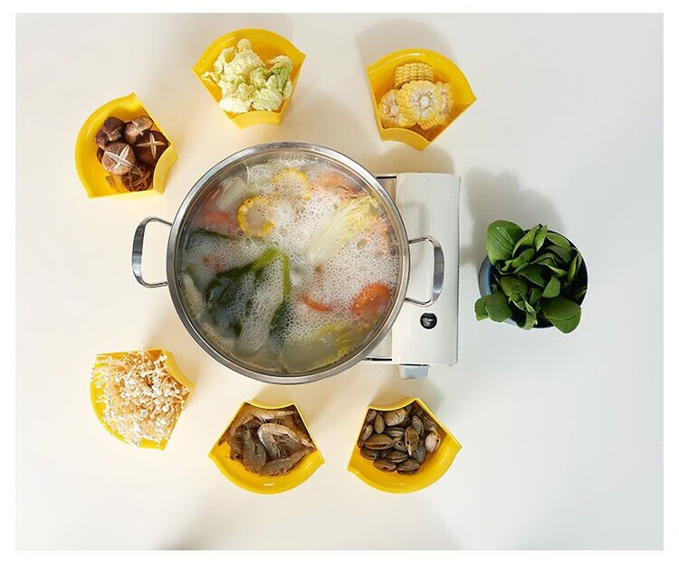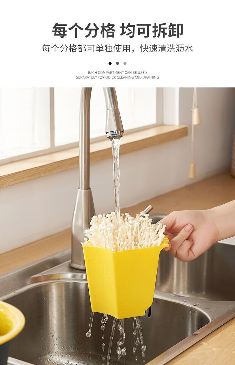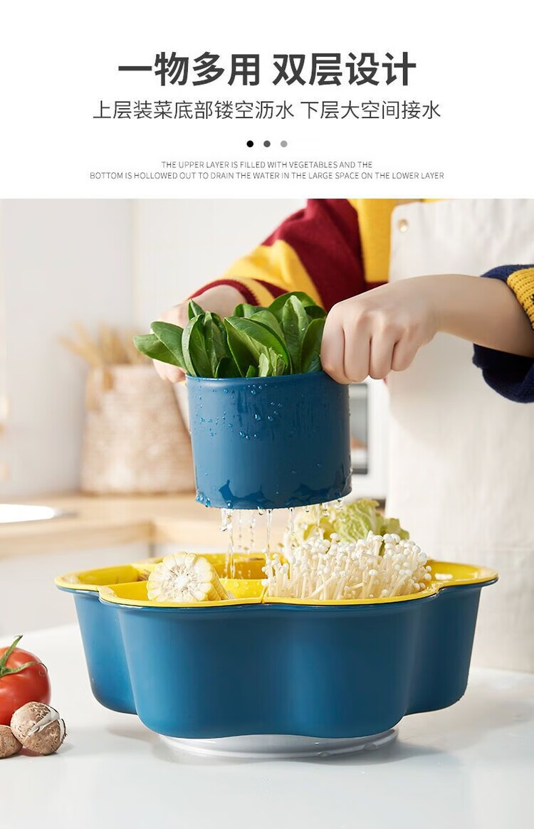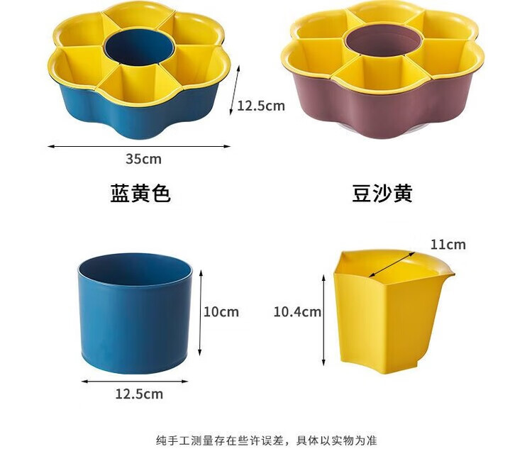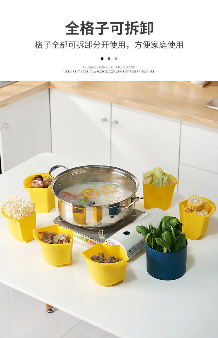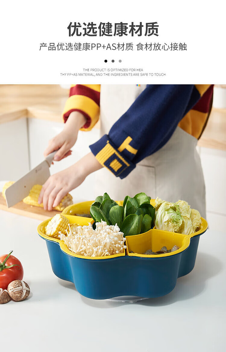LZJV火锅盘子菜盘网红旋转多功能蔬菜沥水篮双层植物架厨房多格水果盘 六格