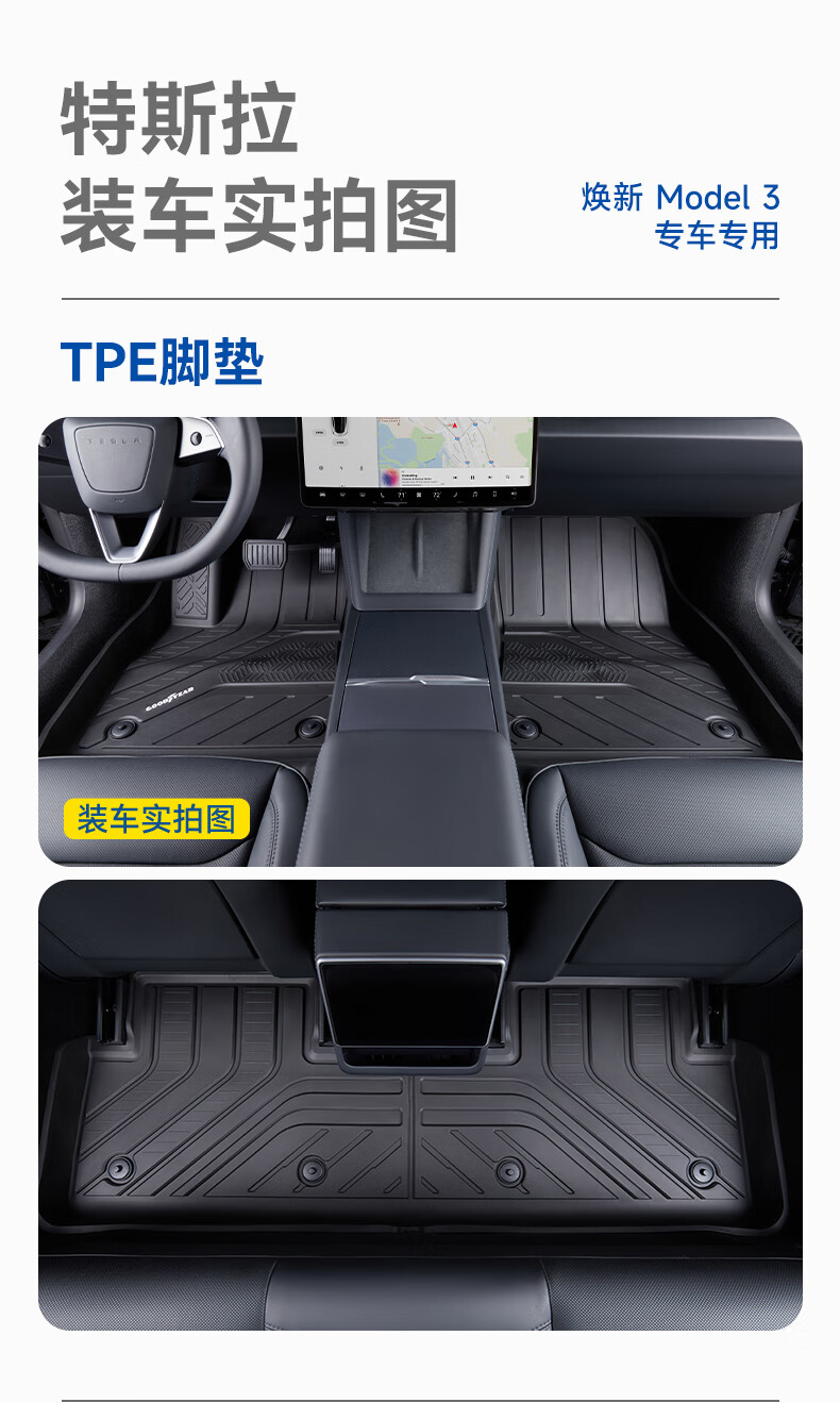 固特异(Goodyear)tpe汽车脚垫适用于特斯拉ModelY高边环保防水tpe脚垫黛尼斯毯