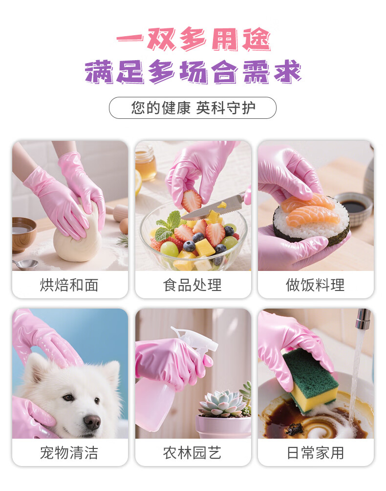 英科医疗 一次性手套 珠光丁腈手套 洗碗家务可接触食品 L码 50只/袋