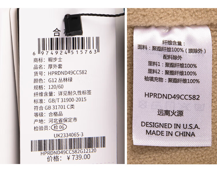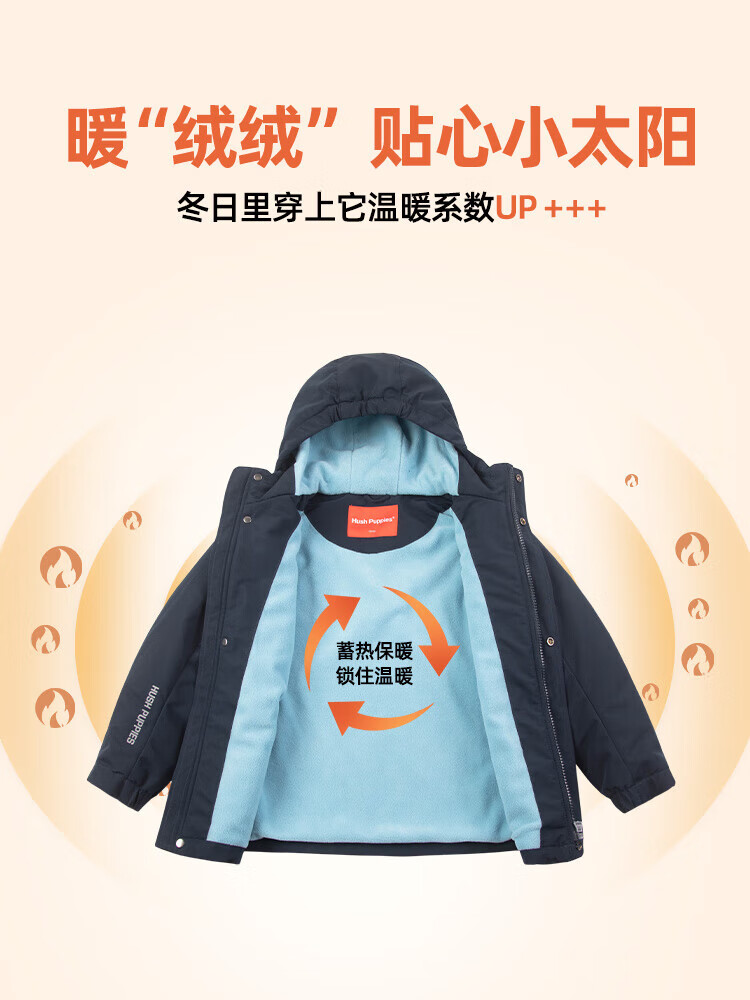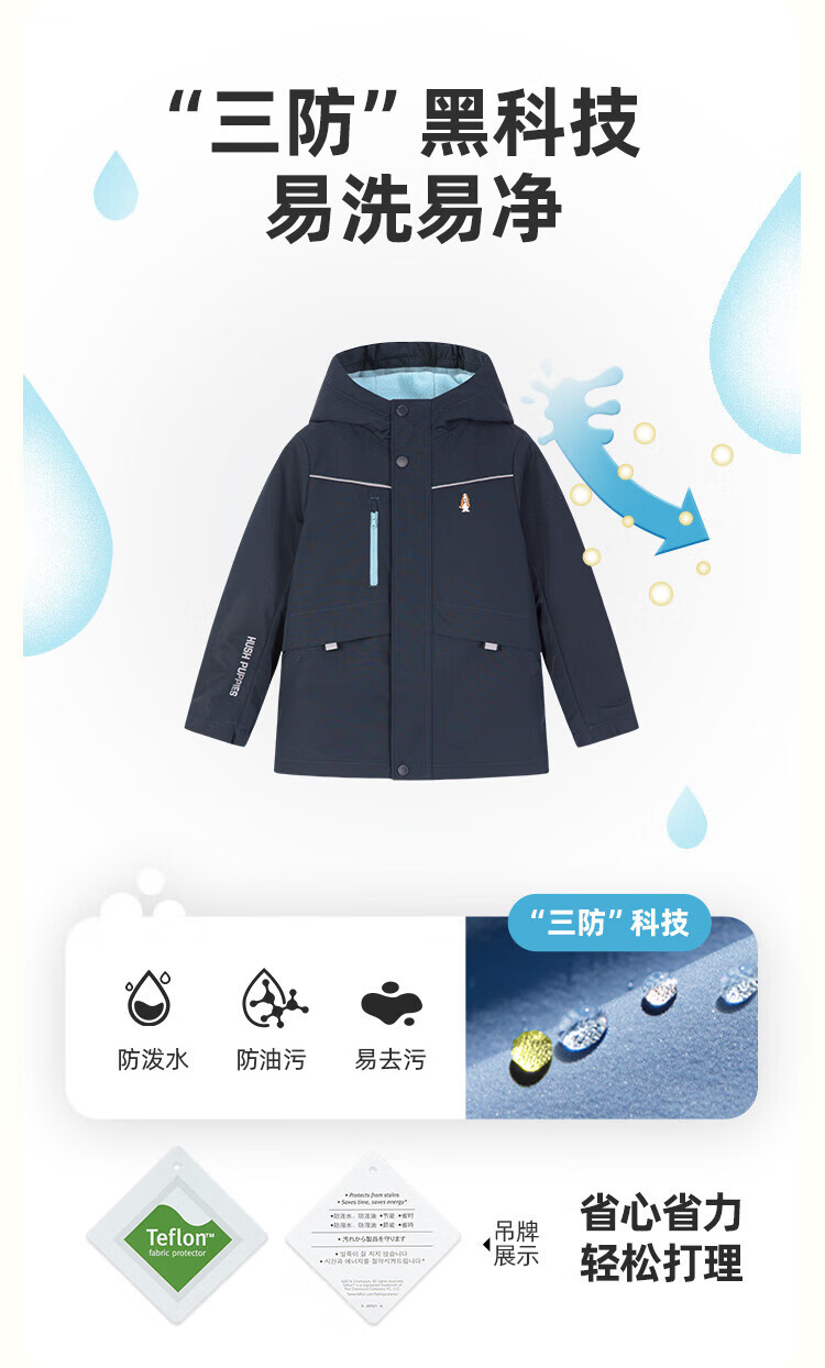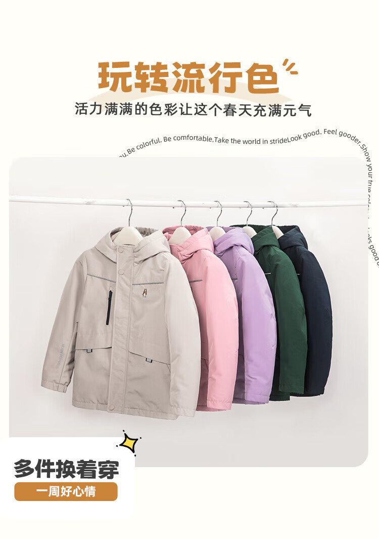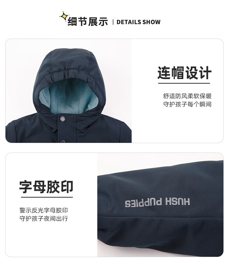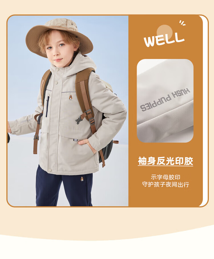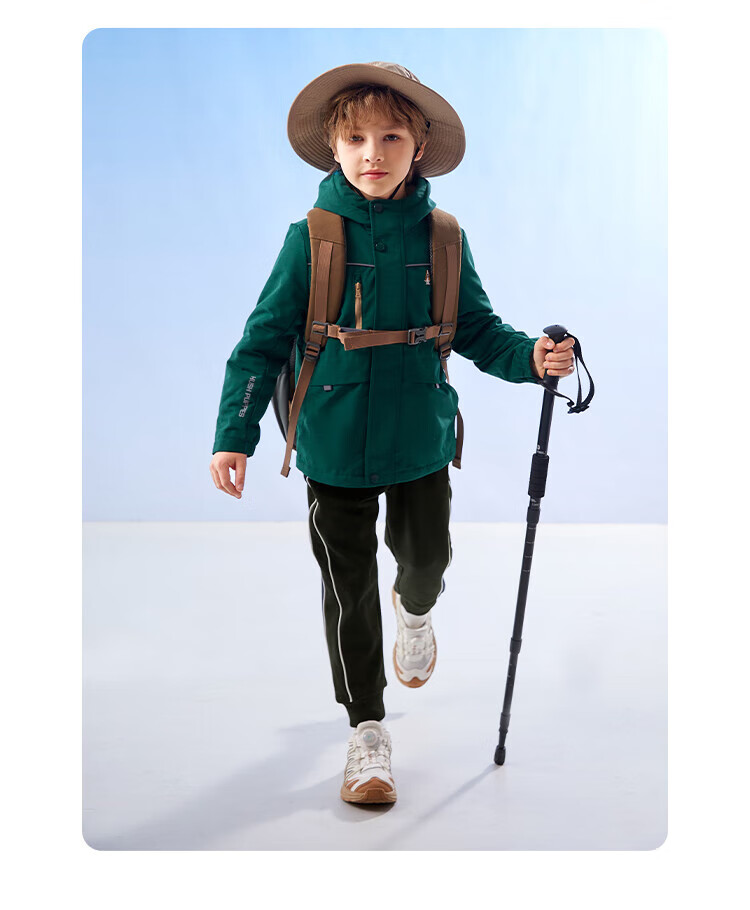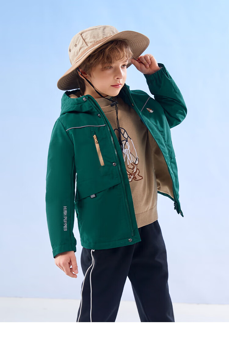 暇步士(Hush Puppies)童装儿童外套秋冬季新款男女大童简约时尚加厚风衣外套 丛林绿 155 cm(偏大半码)