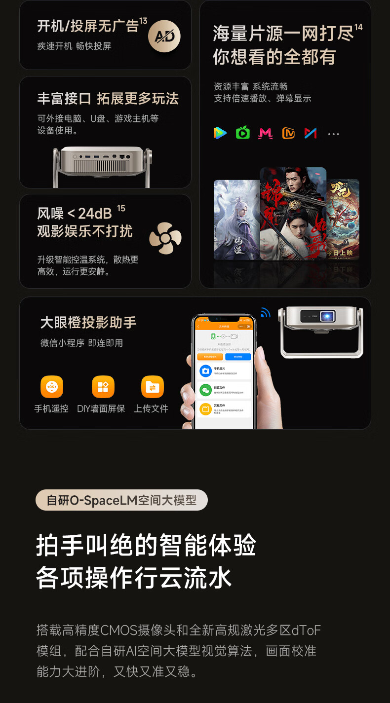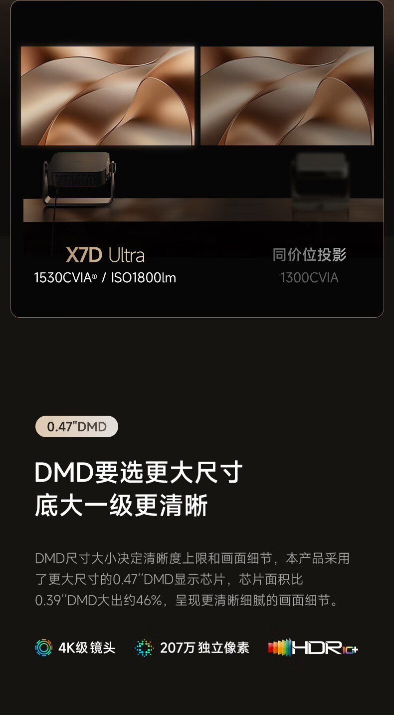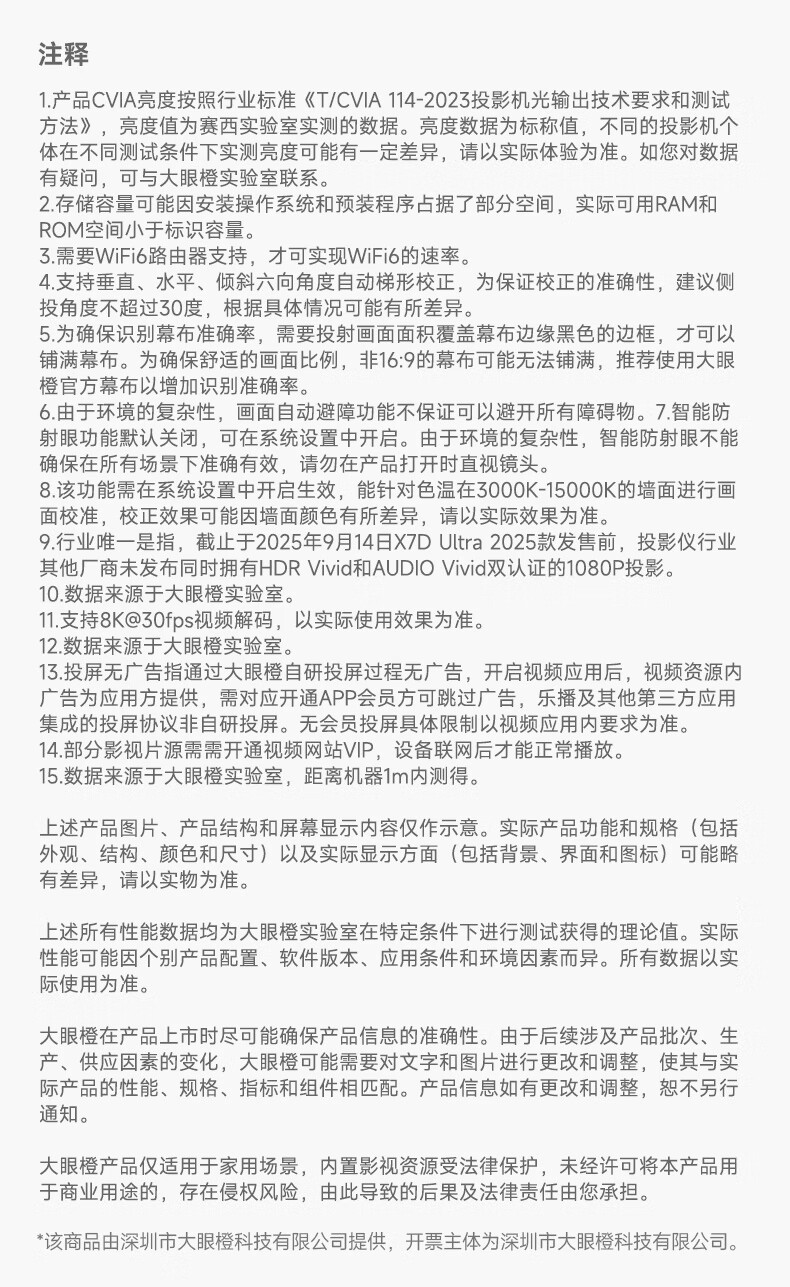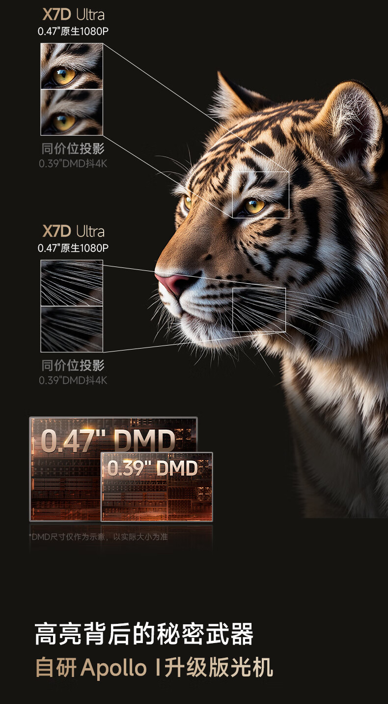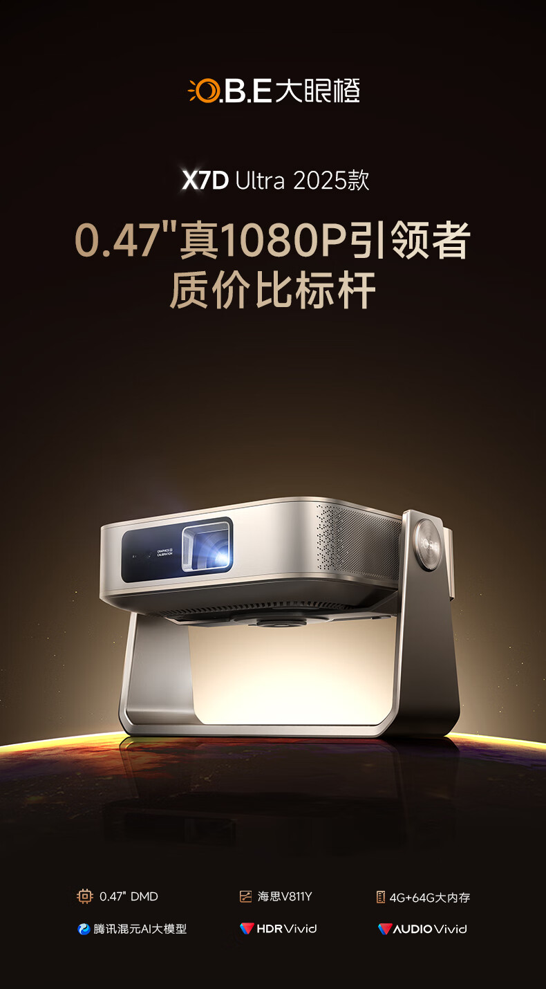 大眼橙X7D Ultra 2025升级款高亮云台投影仪 家用轻薄投影机 超高清卧室家庭影院国家补贴(0.47“DMD)