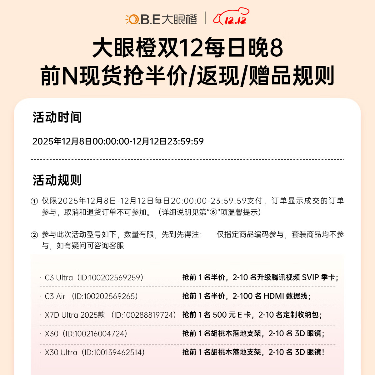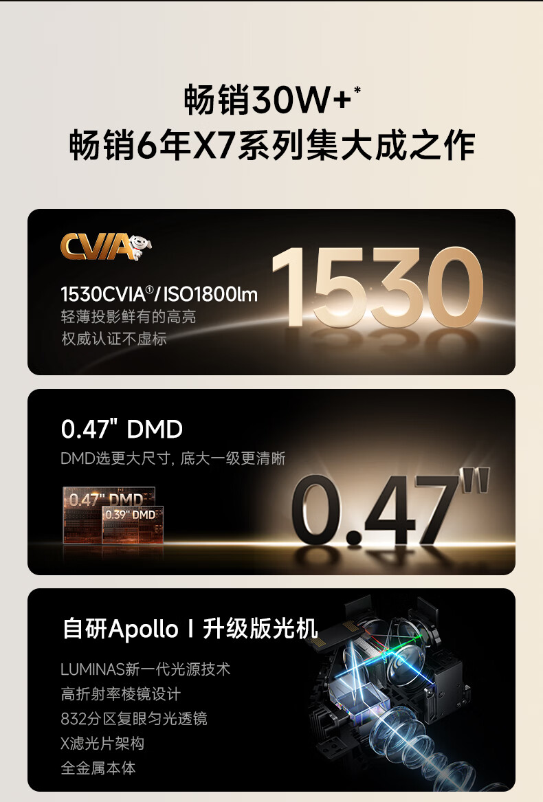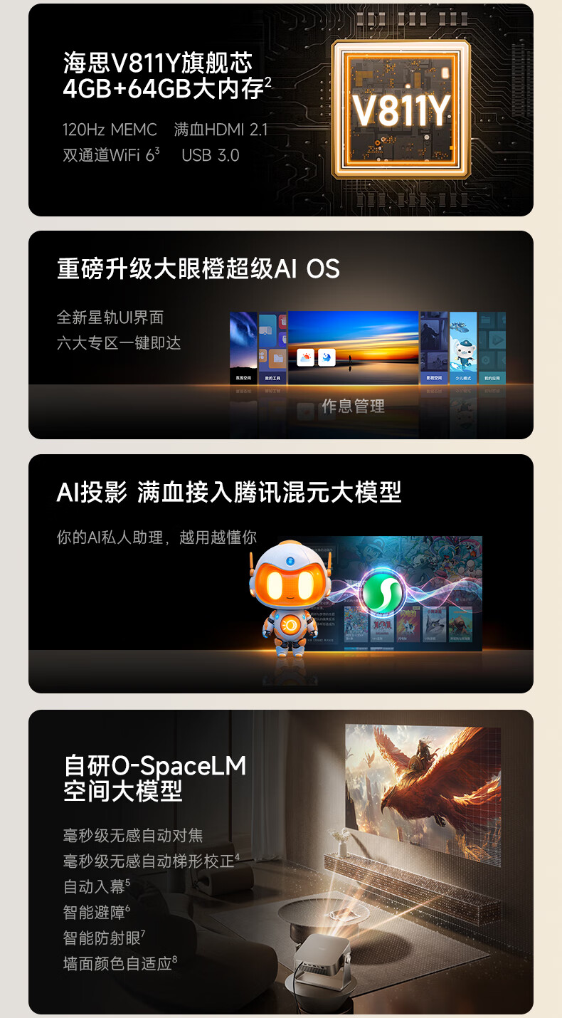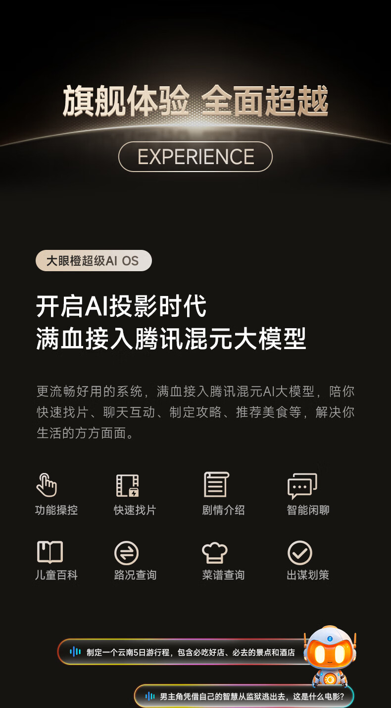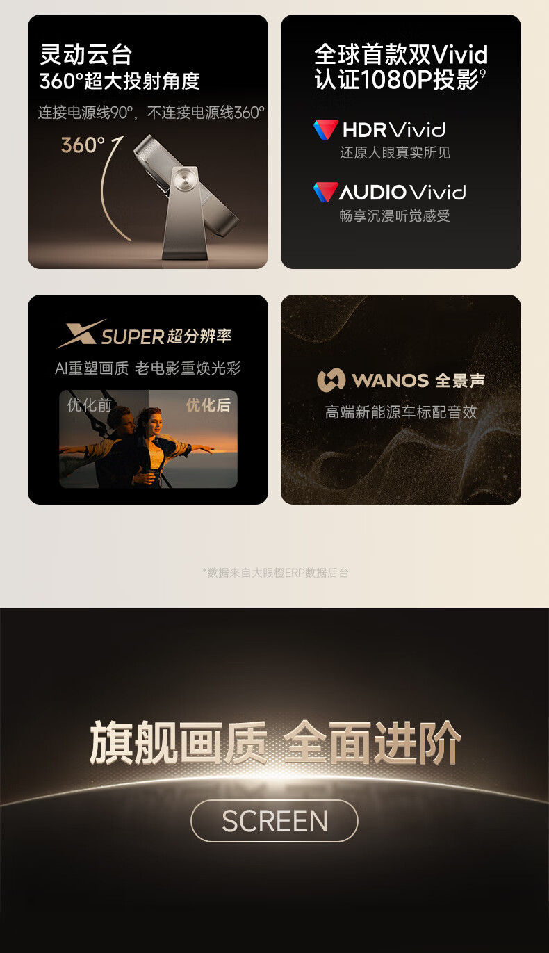 大眼橙X7D Ultra 2025升级款高亮云台投影仪 家用轻薄投影机 超高清卧室家庭影院国家补贴(0.47“DMD)