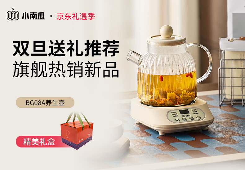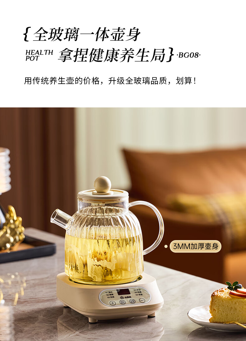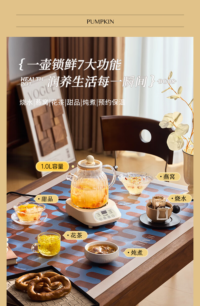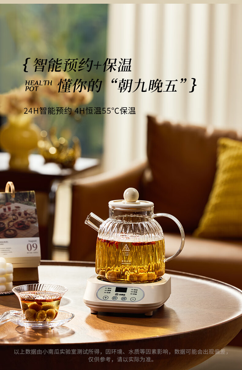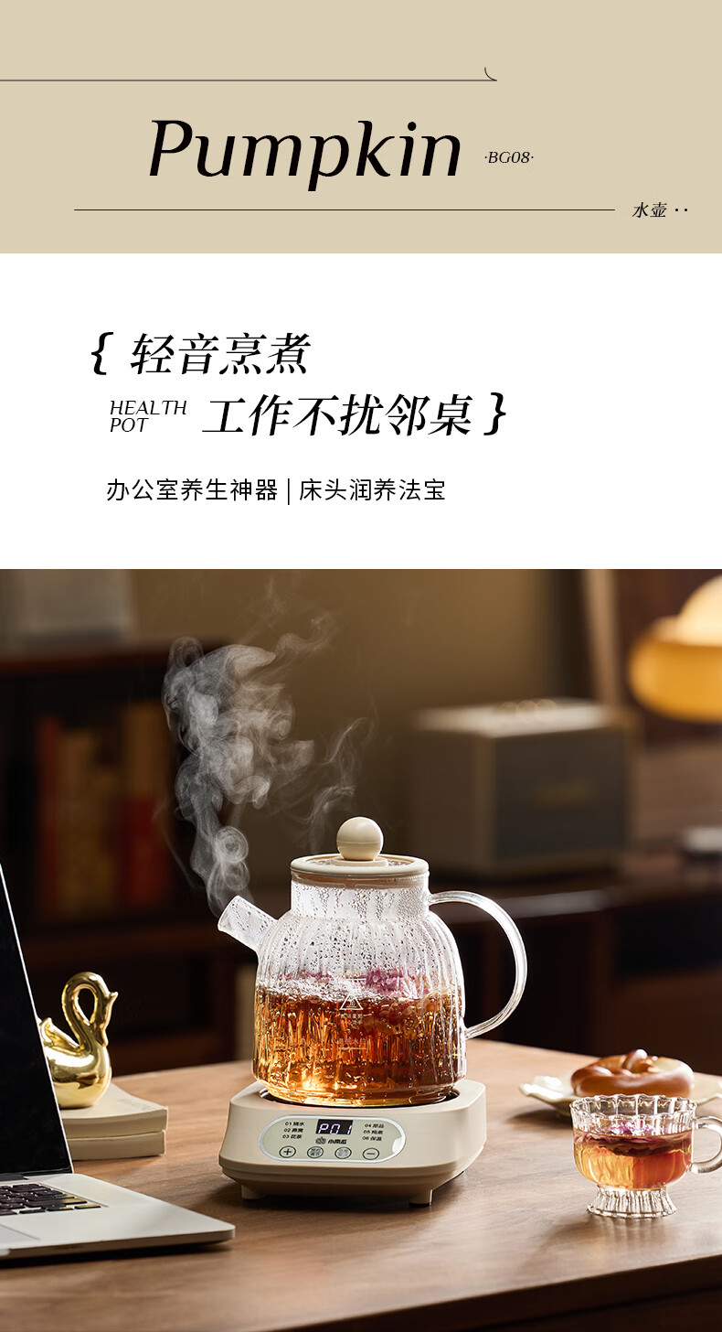 小南瓜养生壶带滤网0拼接全自动煮茶壶恒温壶保温烧水壶分体式电热水壶0胶全玻璃养生壶1L大容量花茶壶 1L 米黄礼盒款【全玻璃壶身丨24小时智能预约】
