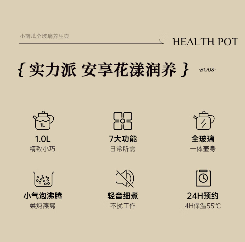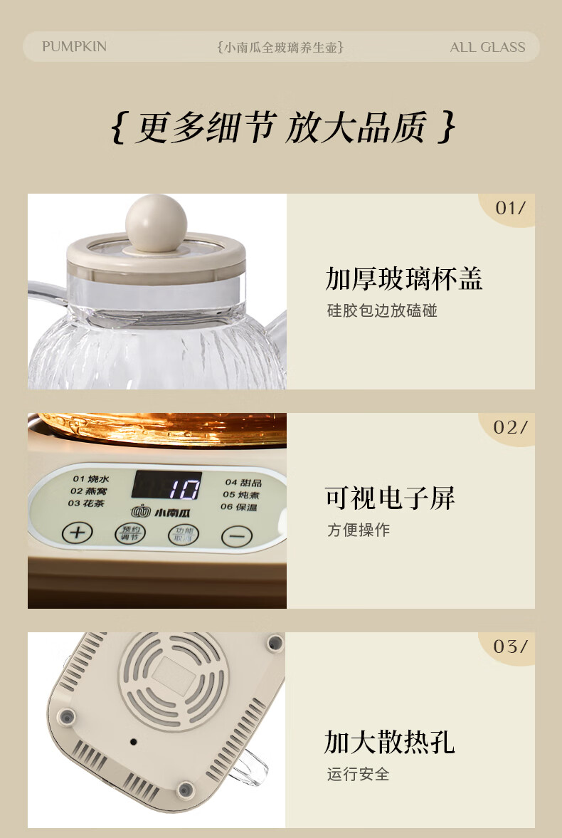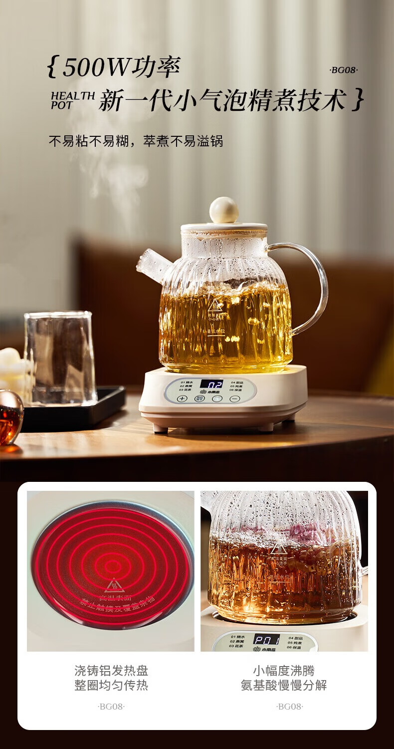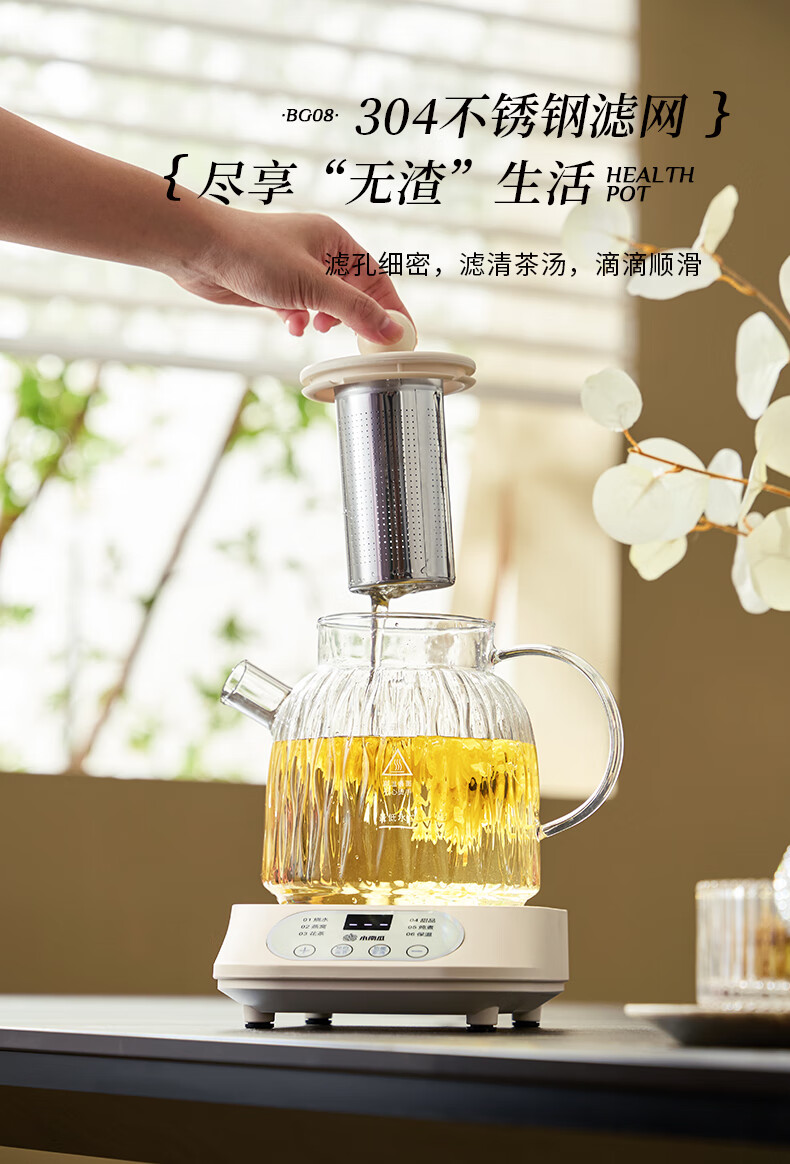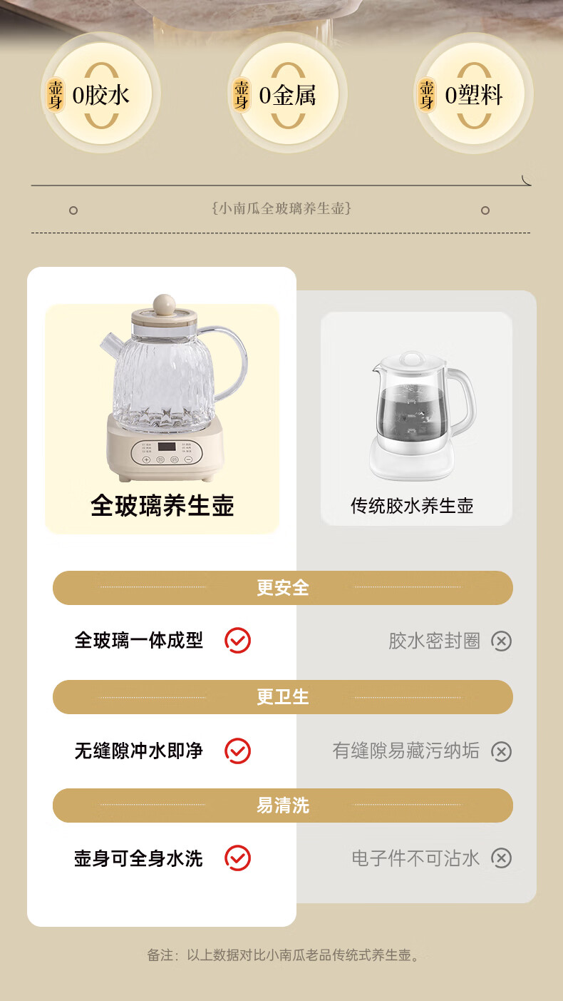 小南瓜养生壶带滤网0拼接全自动煮茶壶恒温壶保温烧水壶分体式电热水壶0胶全玻璃养生壶1L大容量花茶壶 1L 米黄礼盒款【全玻璃壶身丨24小时智能预约】