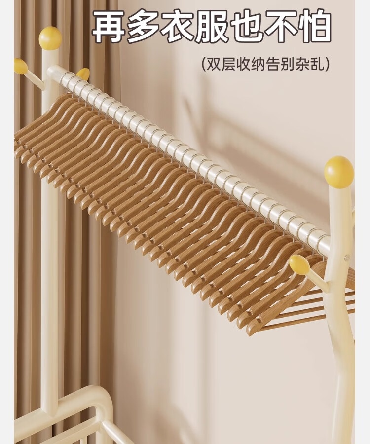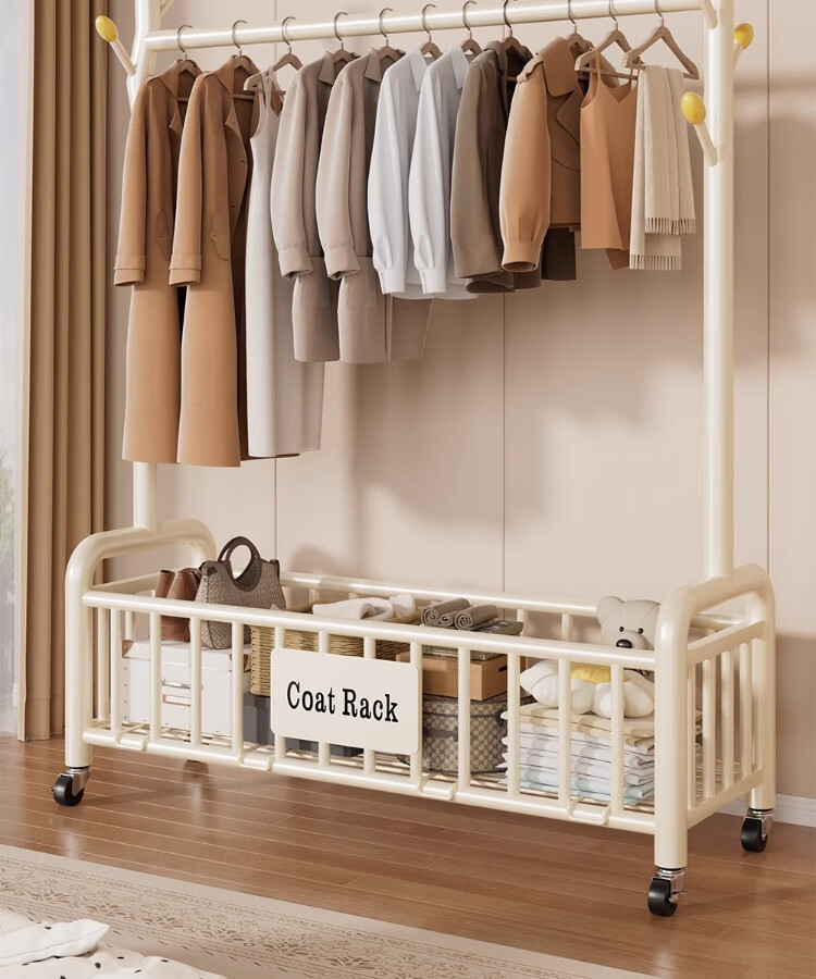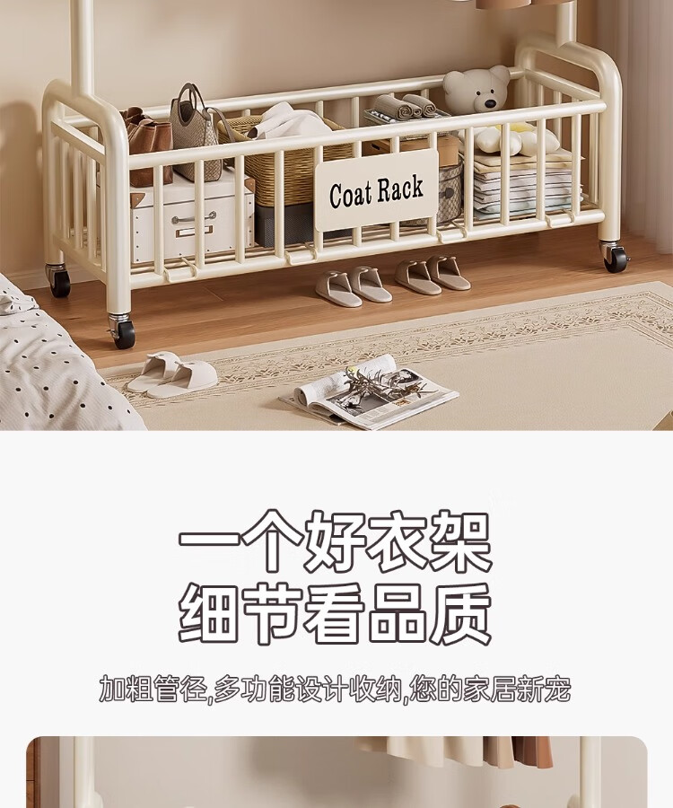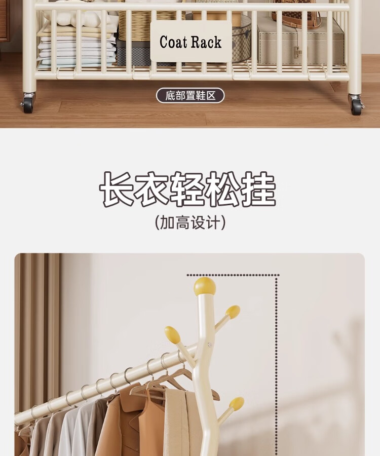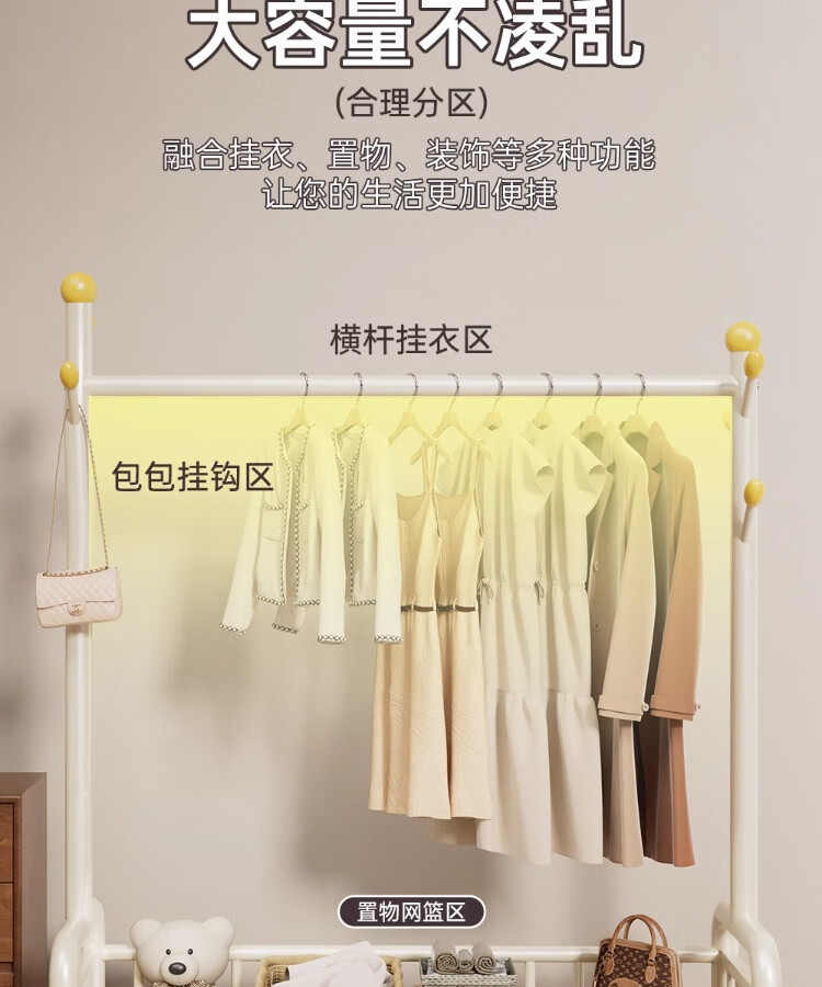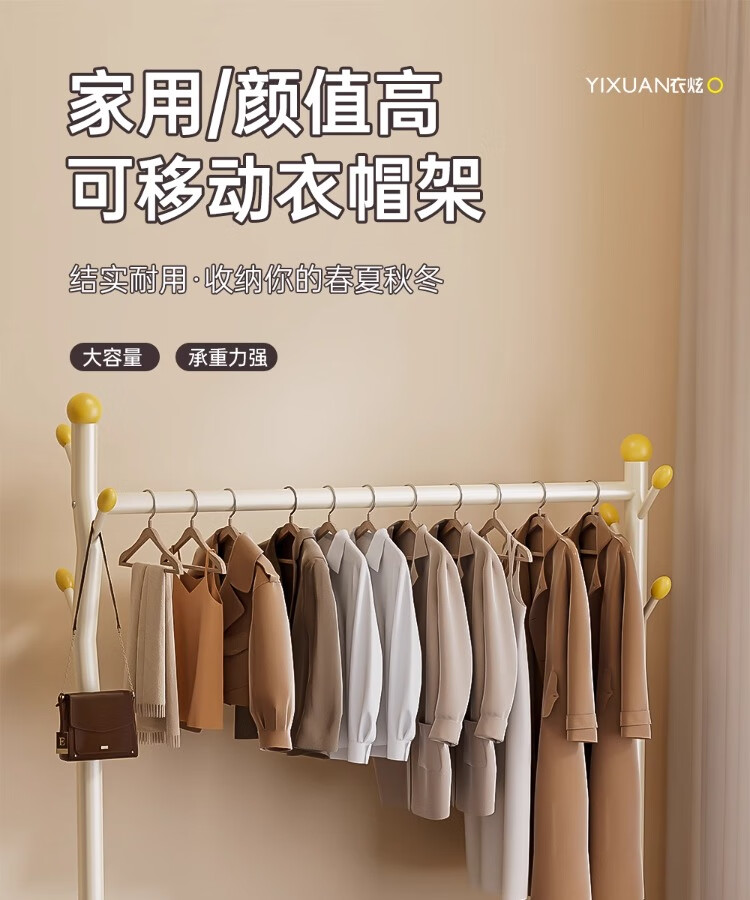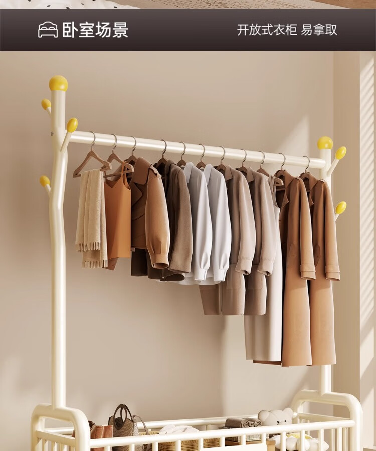 衣炫衣架落地立式衣帽架挂衣架挂衣服落地卧室专用多功能简易衣架晾衣 白色-120cm【加深网篮】