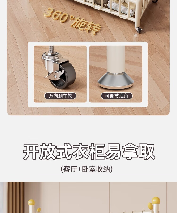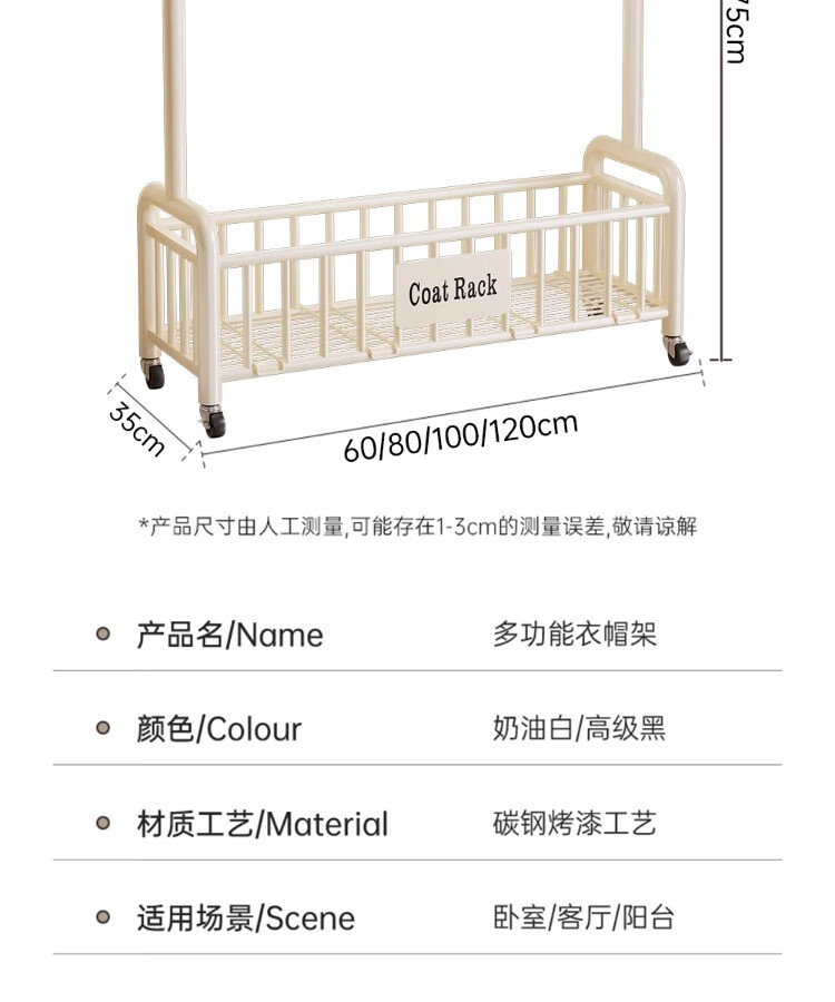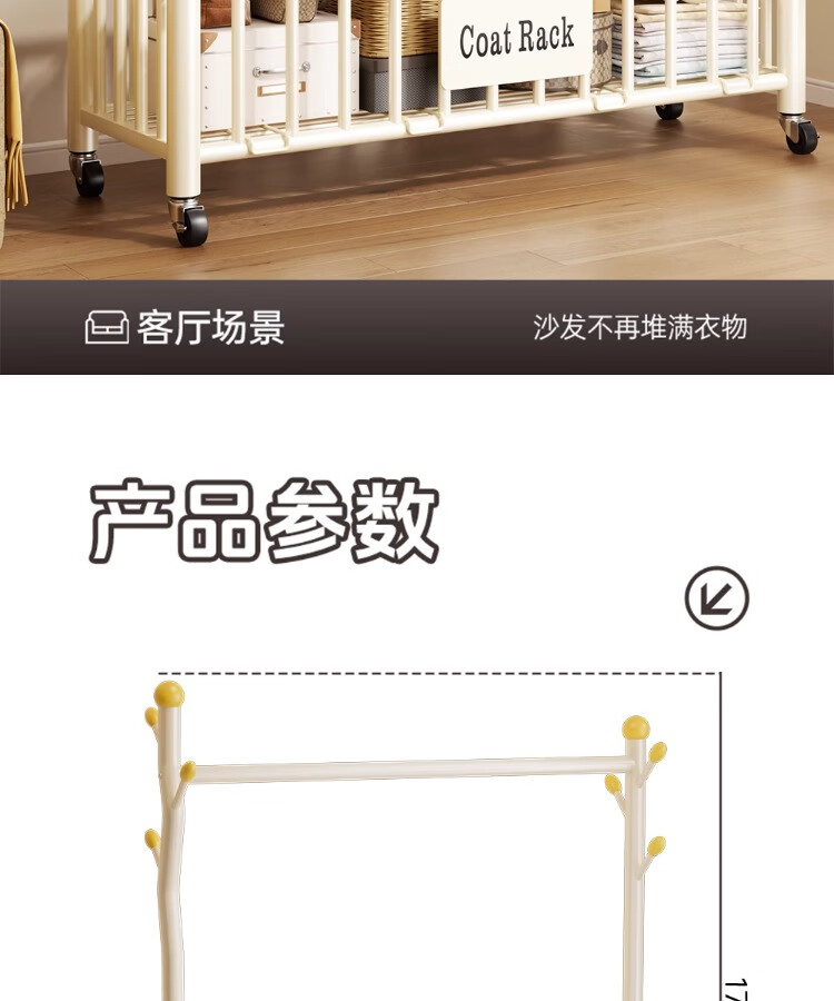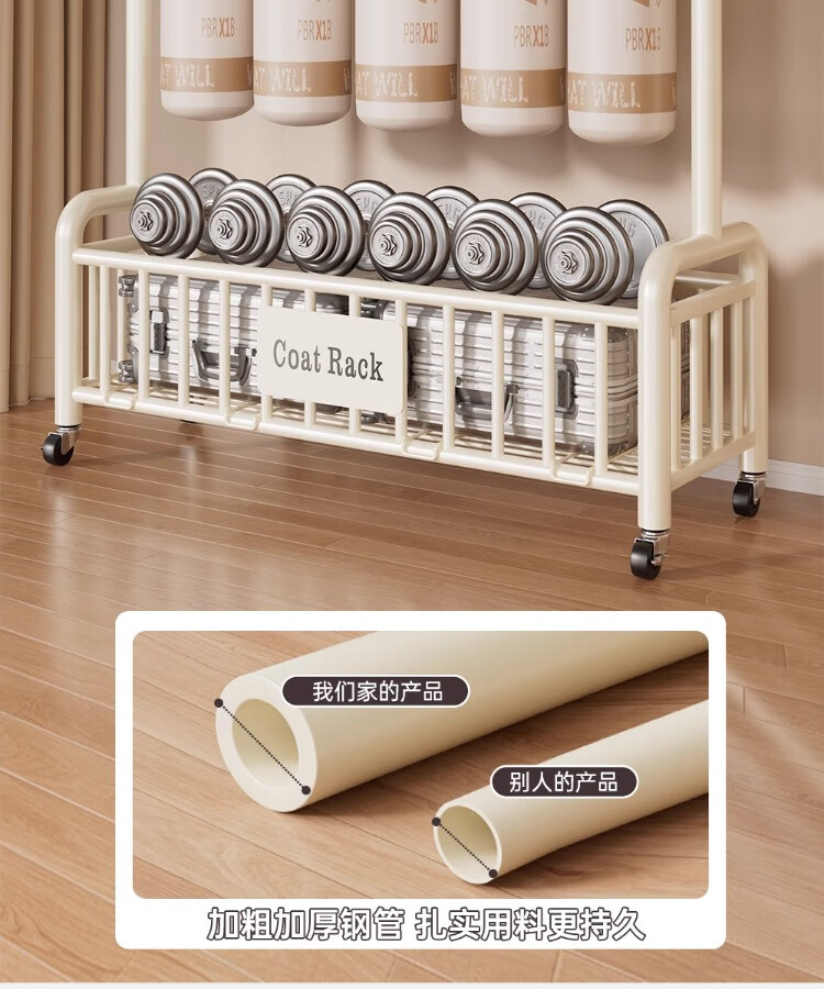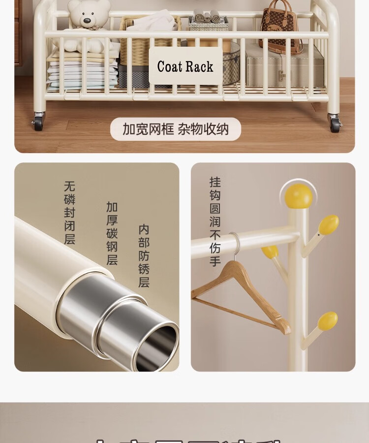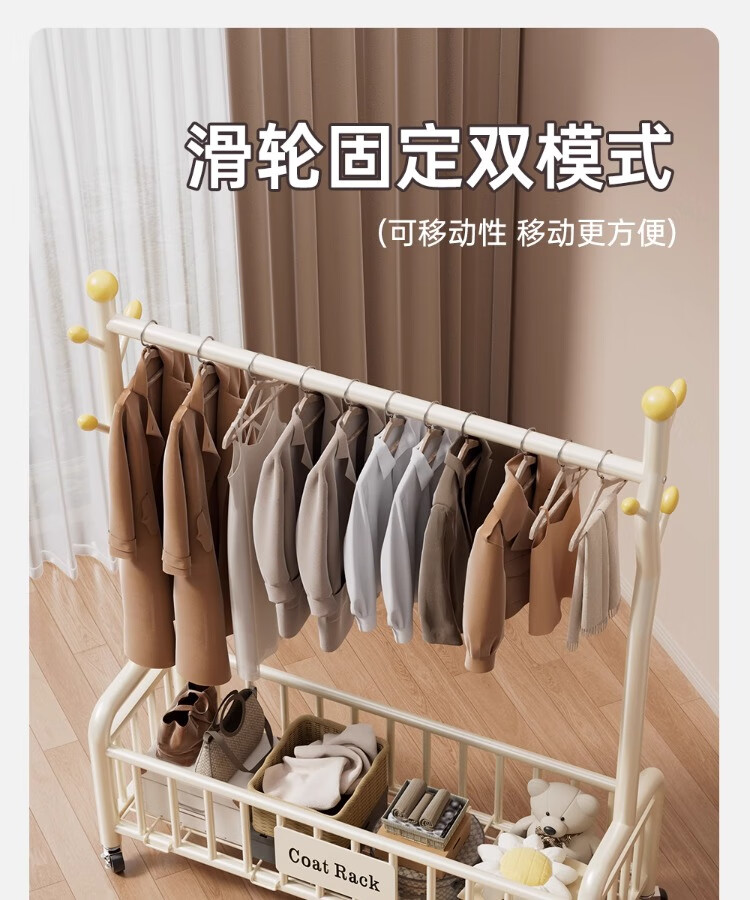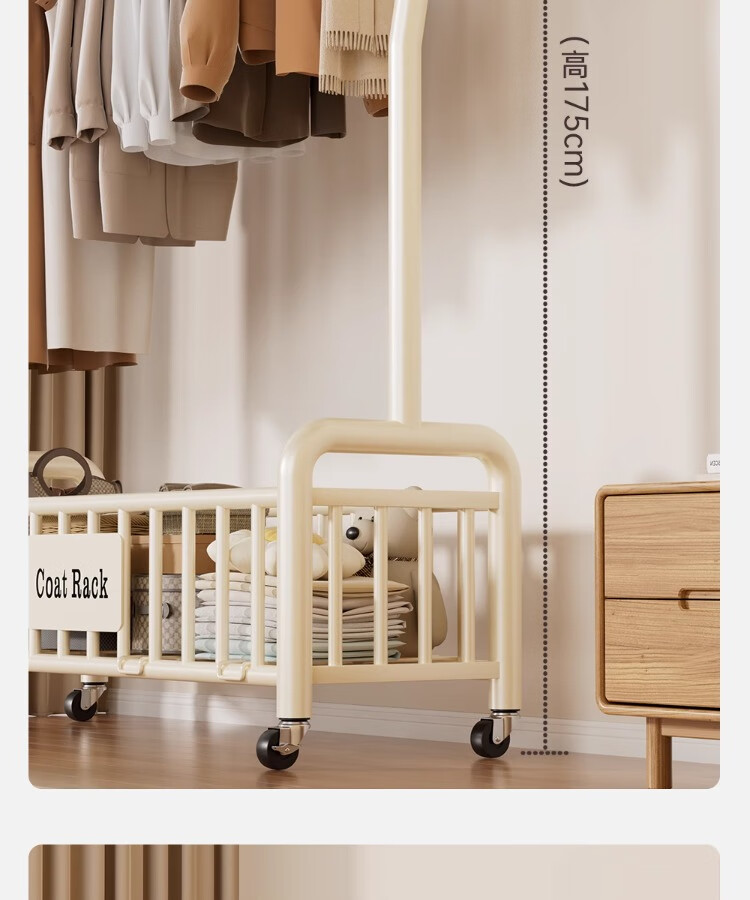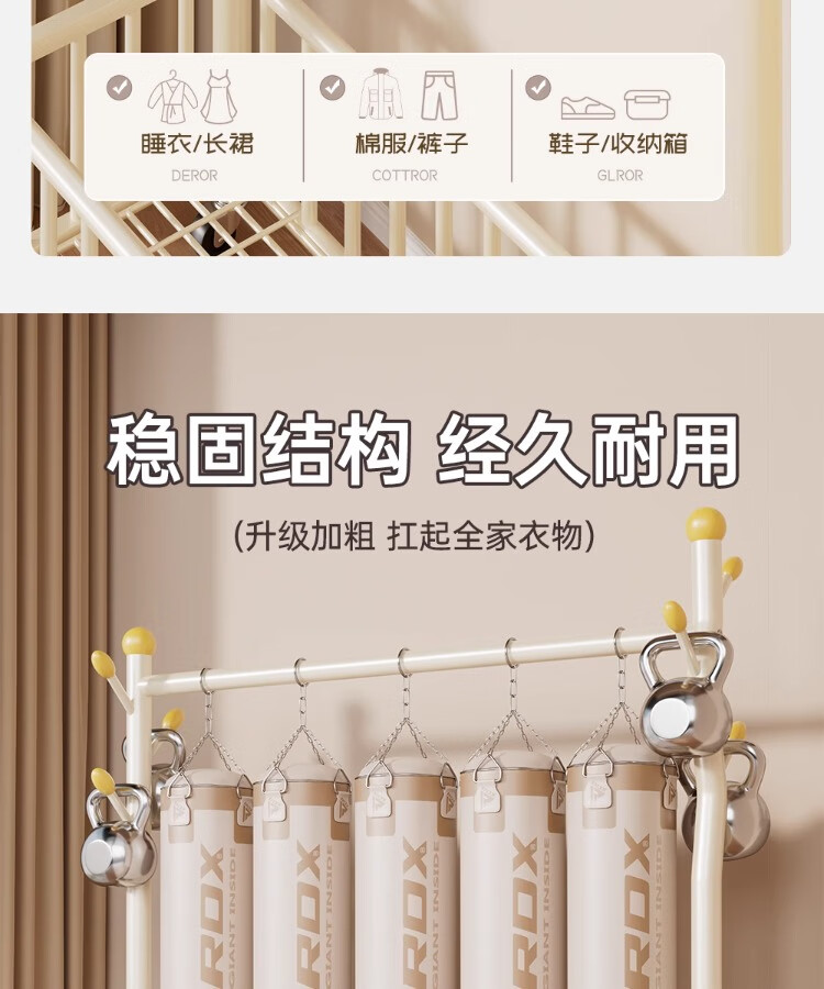 衣炫衣架落地立式衣帽架挂衣架挂衣服落地卧室专用多功能简易衣架晾衣 白色-120cm【加深网篮】