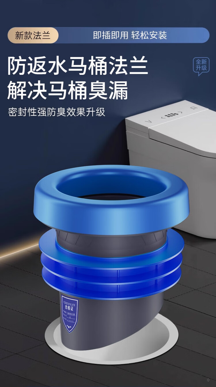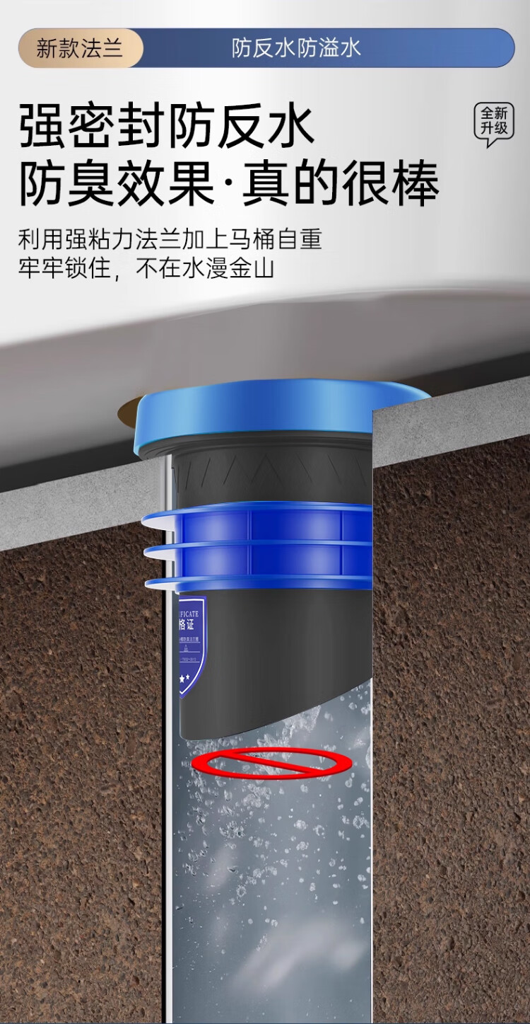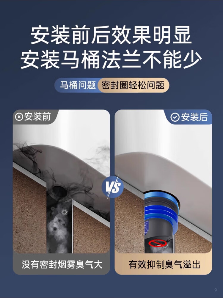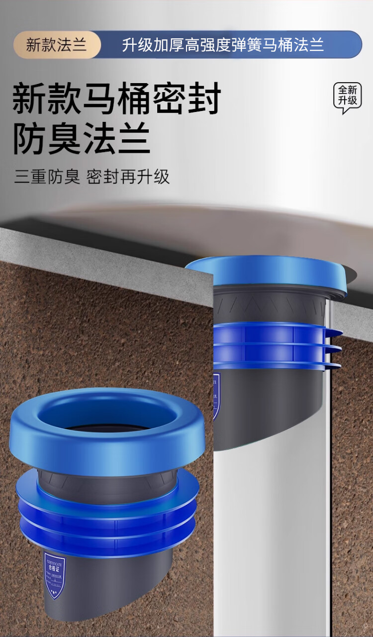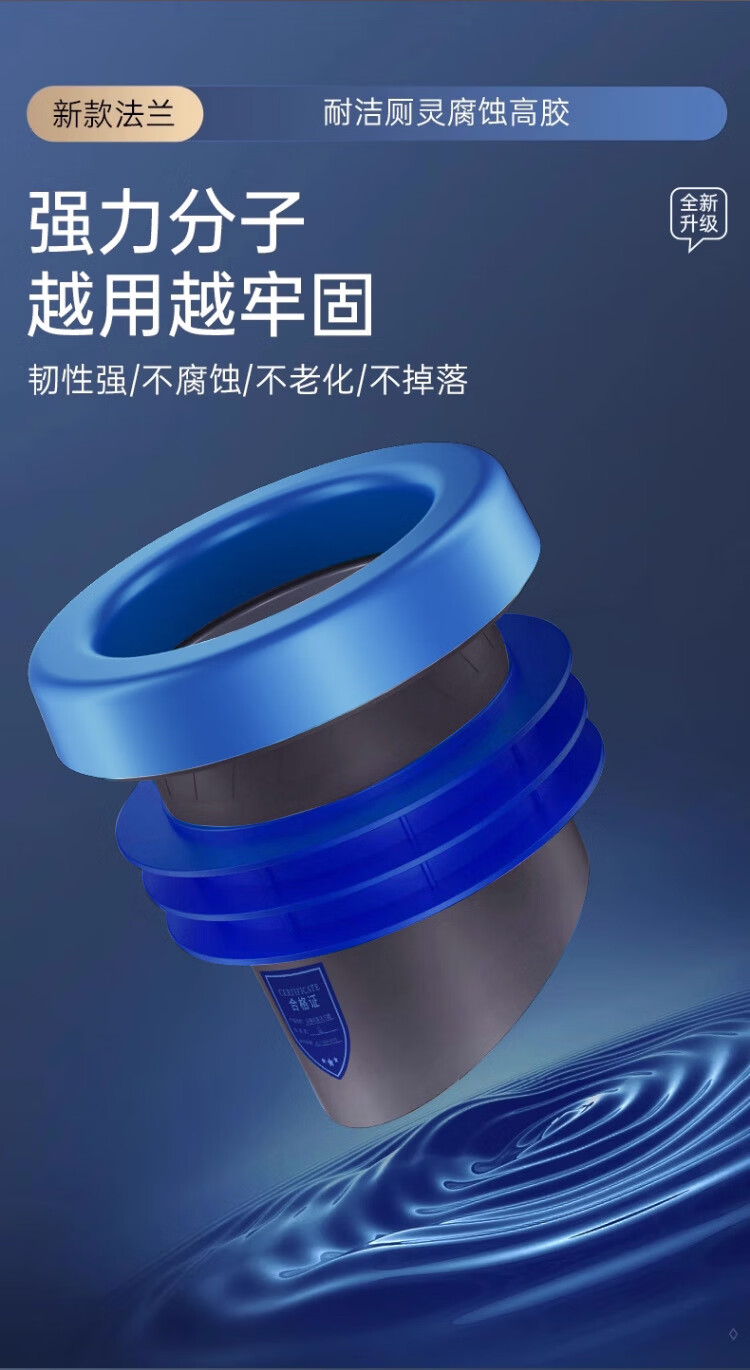 X-GRKE【德国】马桶法兰圈防臭密封防渗漏厕所坐便器底座通用配件长款 防臭密封【止逆阀款】加厚法兰圈 三重防臭丨通用安装丨极速排水