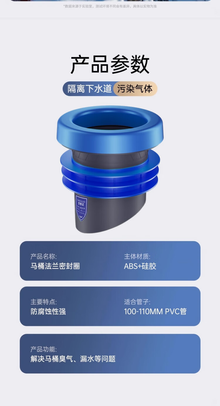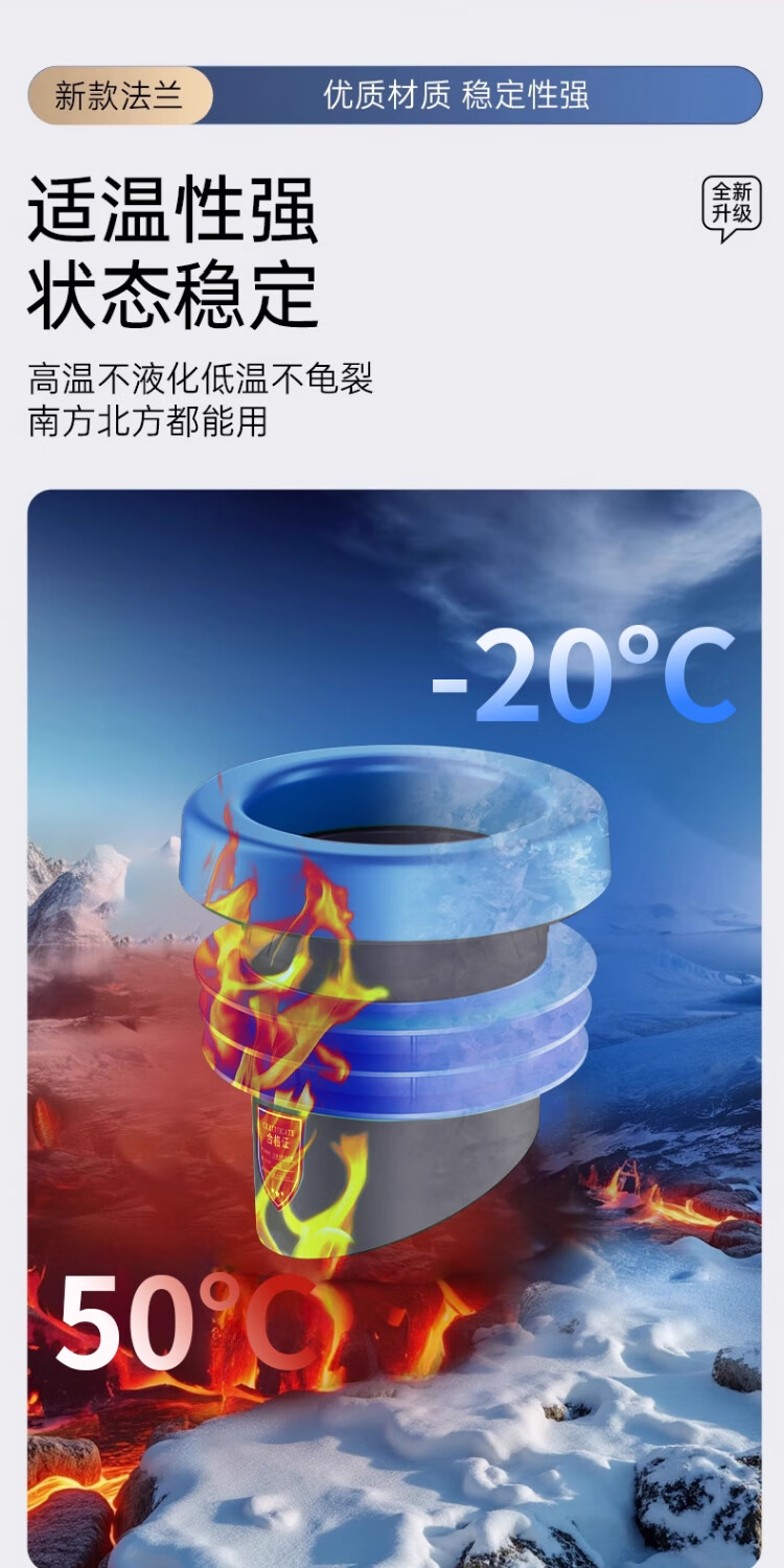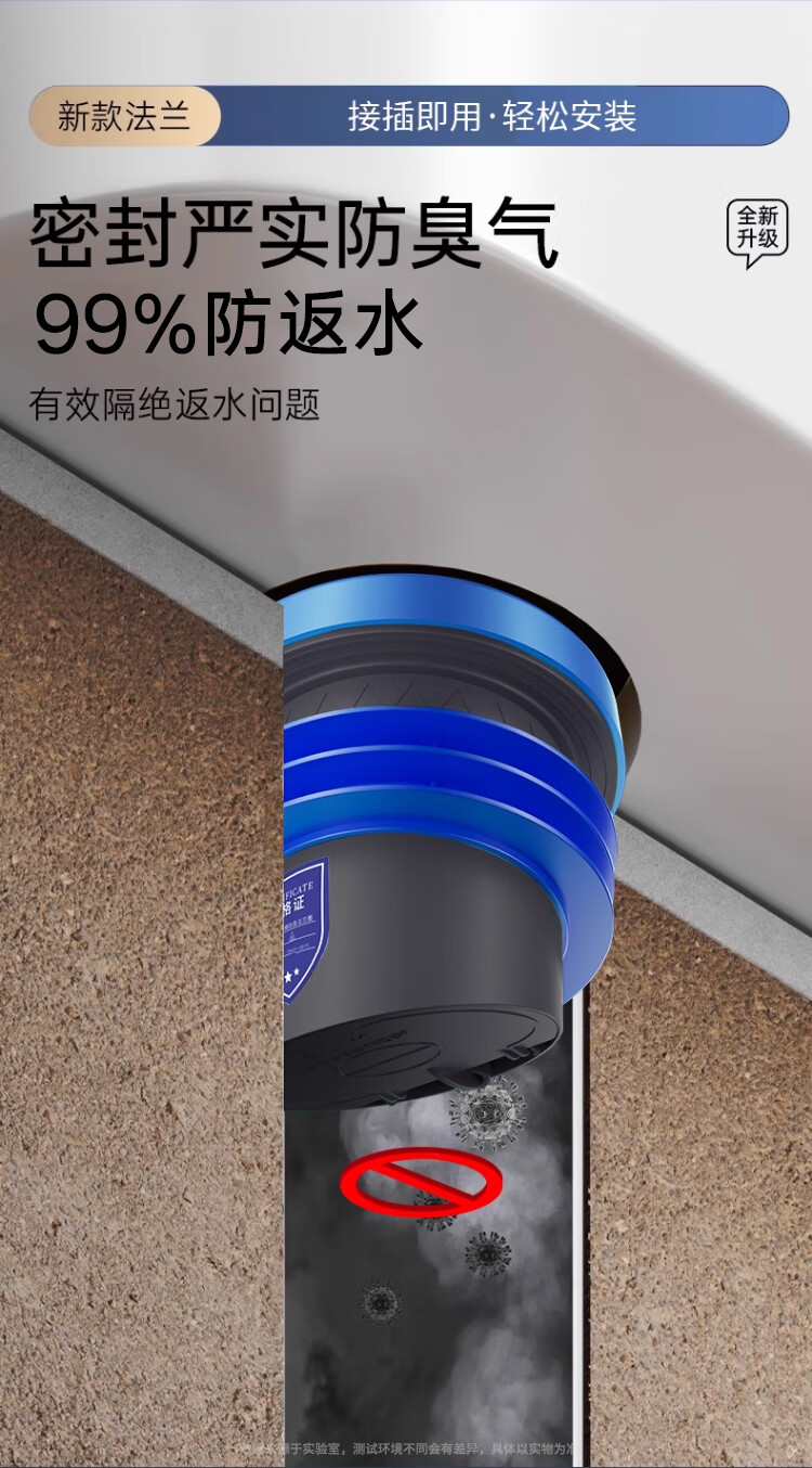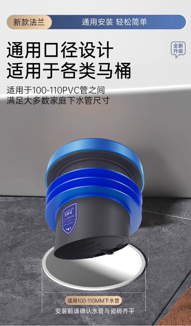 X-GRKE【德国】马桶法兰圈防臭密封防渗漏厕所坐便器底座通用配件长款 防臭密封【止逆阀款】加厚法兰圈 三重防臭丨通用安装丨极速排水