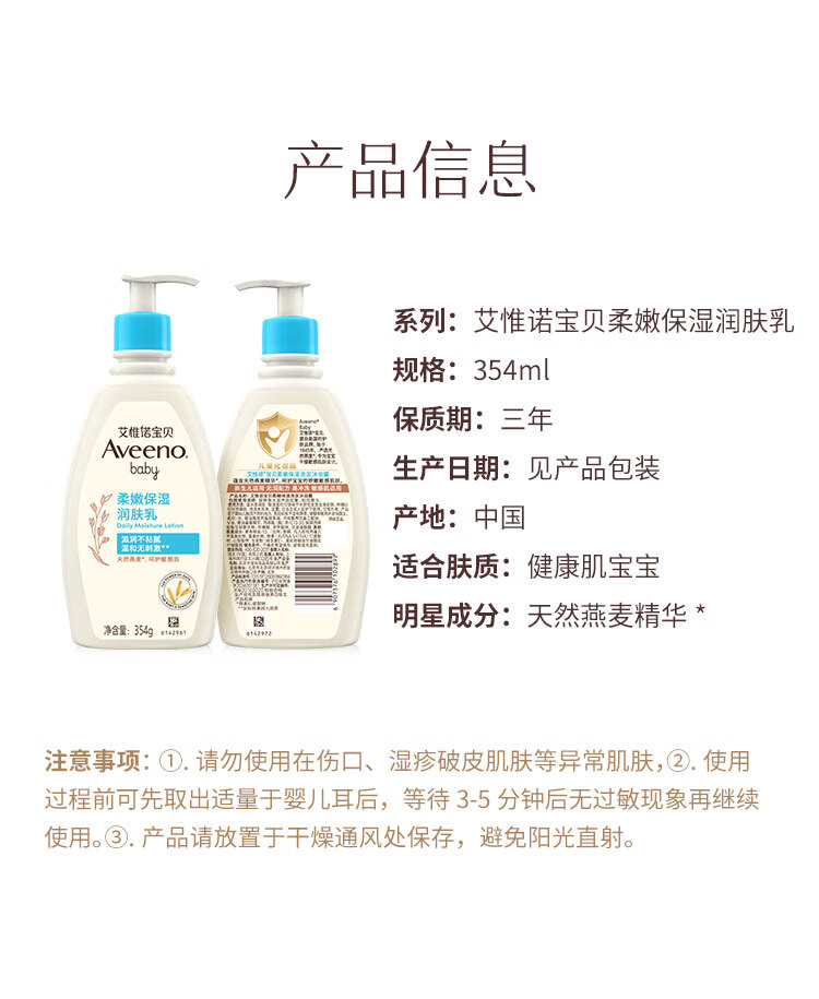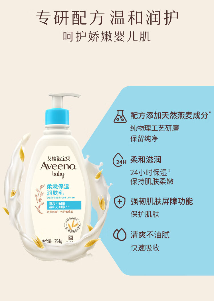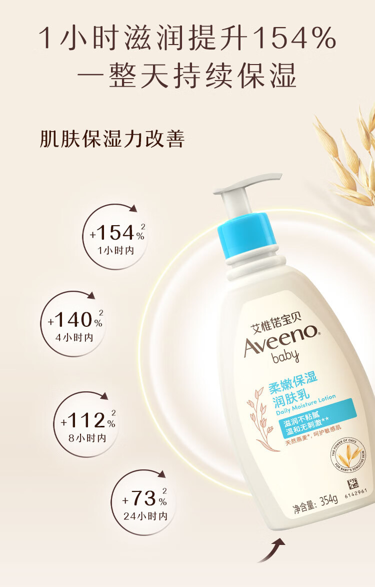 艾惟诺(Aveeno)艾维诺婴儿每日倍护润肤乳354g宝宝面霜儿童保湿身体乳天然燕麦 婴儿柔嫩保湿润肤乳354g