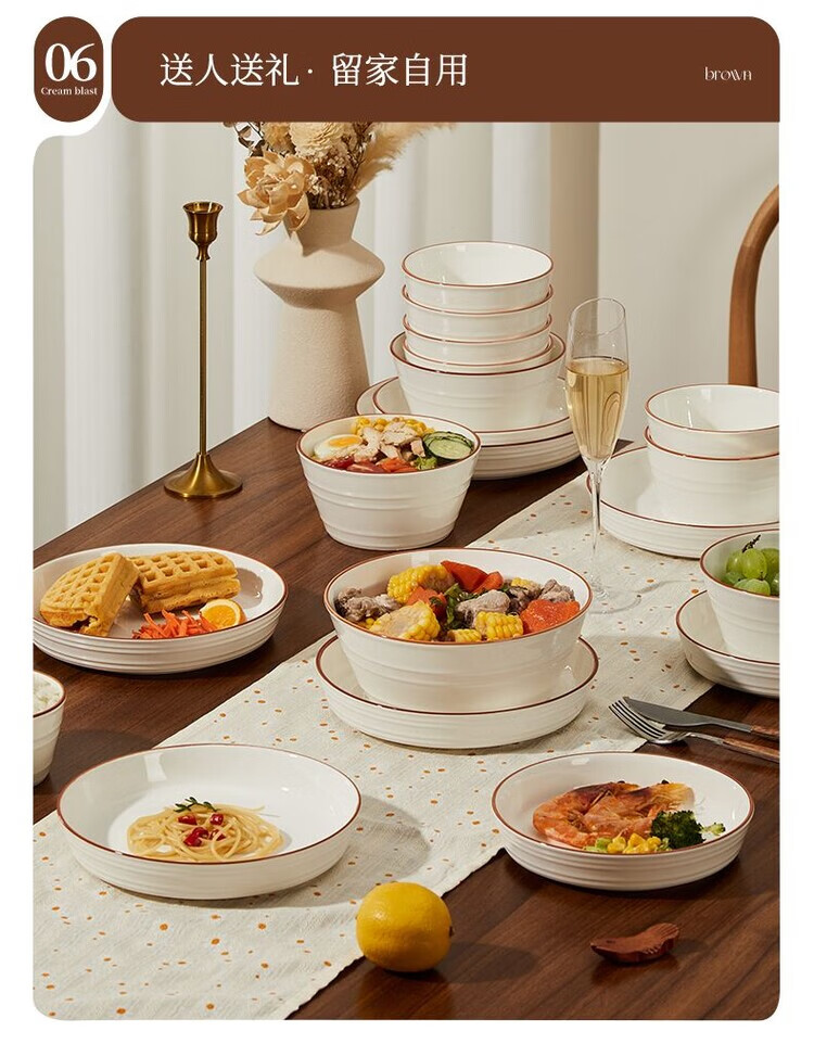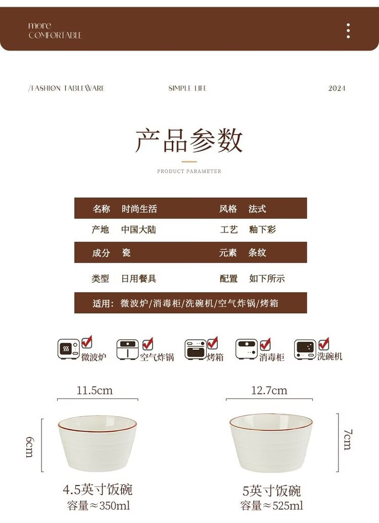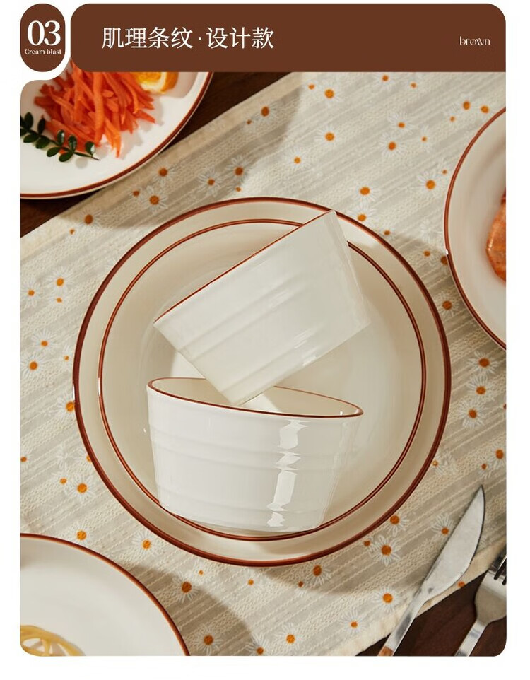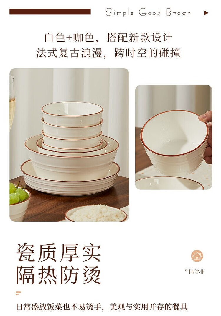 简漾碗碟餐具套装2026新款釉下彩ins家用陶瓷饭碗盘子碗盘简约碗筷 法式洛可可风-浮雕系列 时尚生活1个4.5饭碗
