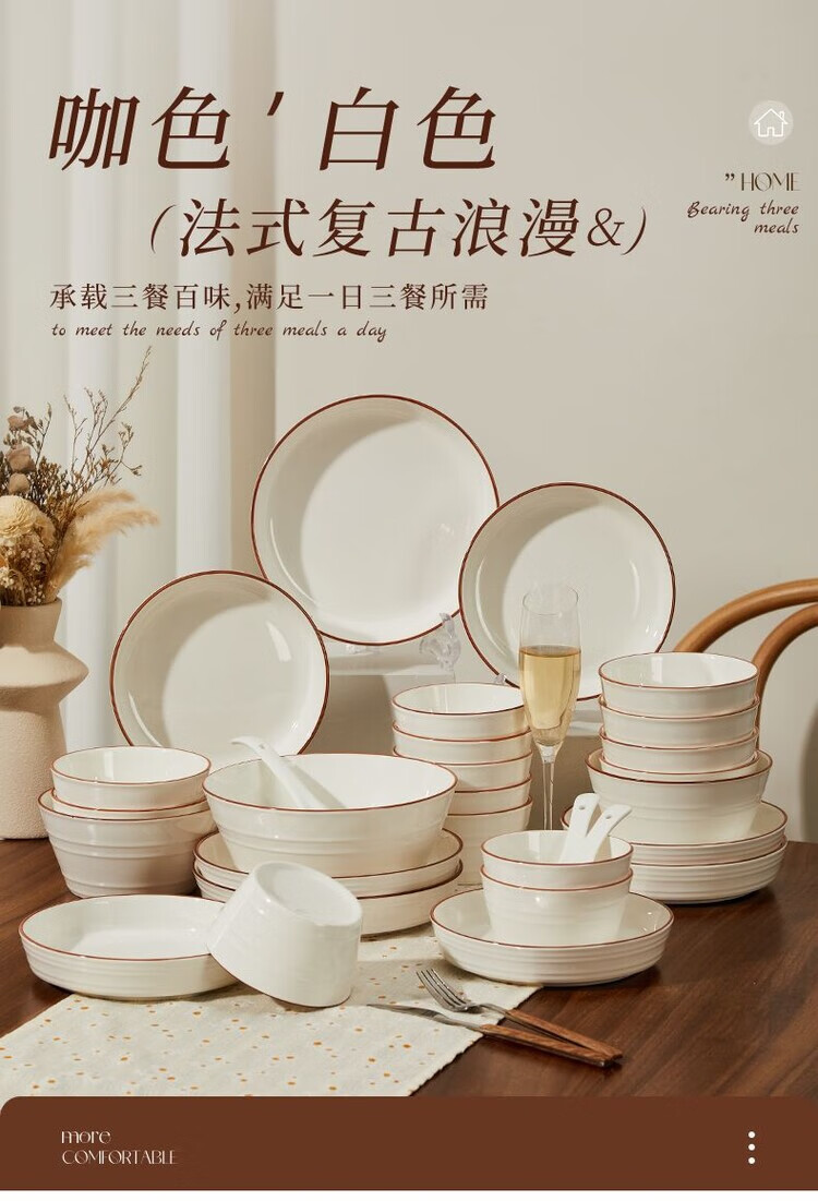 兆瓷景德镇陶瓷餐具送礼碗碟套装家用乔迁新居礼品现代简约高颜值套装 爱情海56件套 无规格