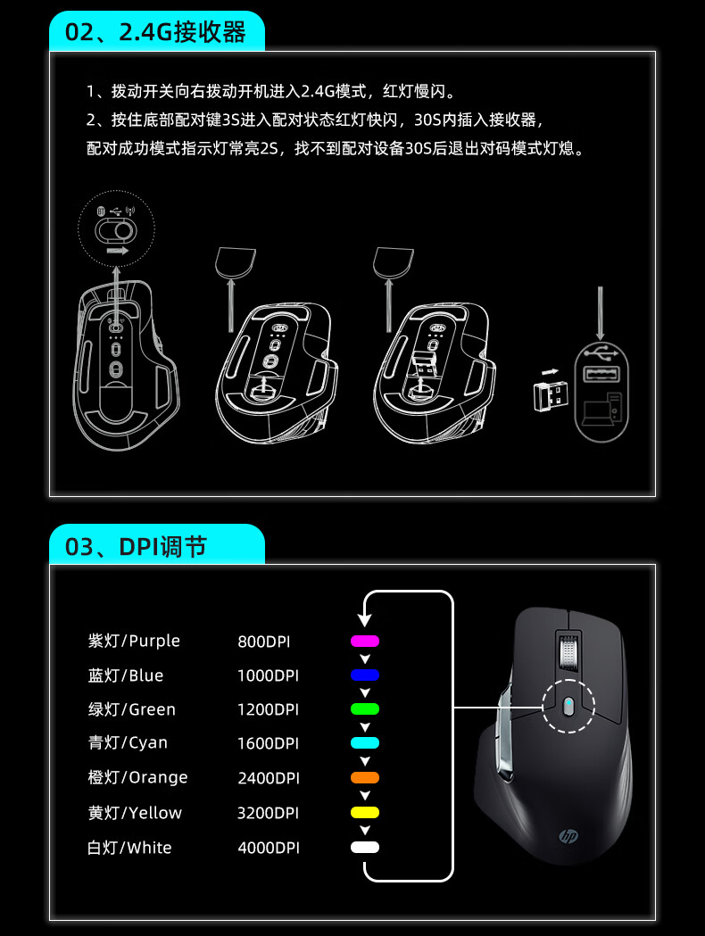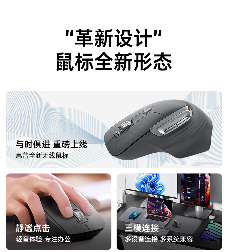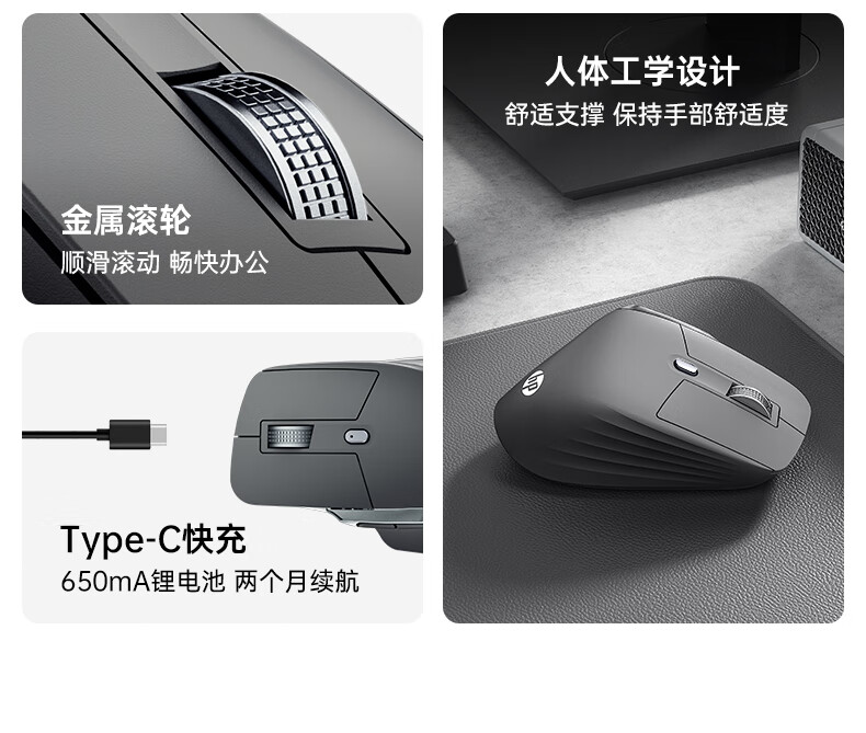 惠普(HP)Professor1 无线蓝牙鼠标 鼠标垫套装 人体工学轻音商务办公设计 笔记本电脑三模鼠标 深灰色