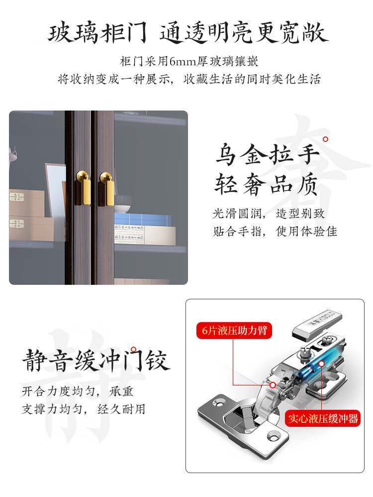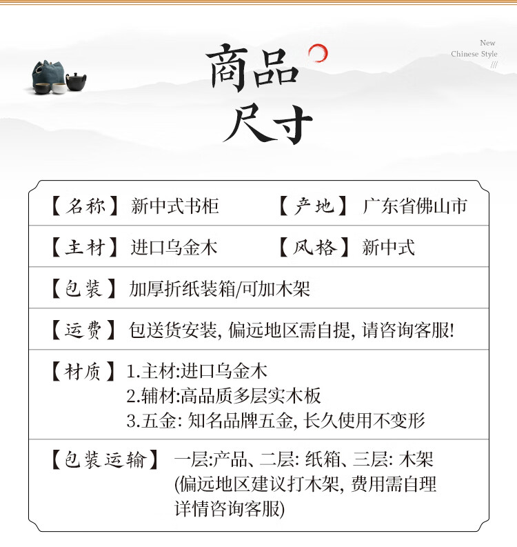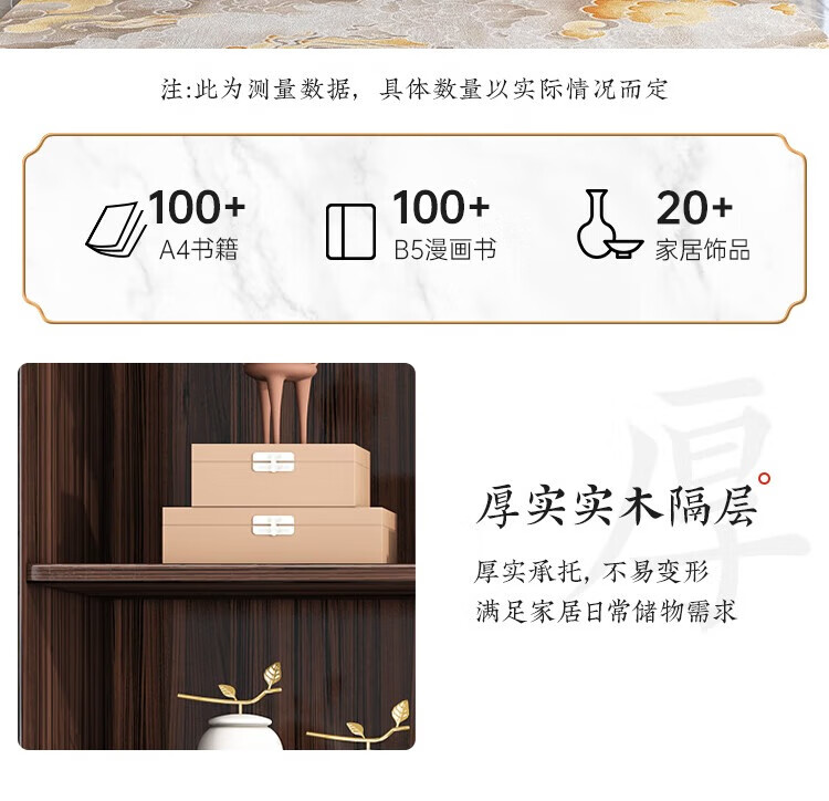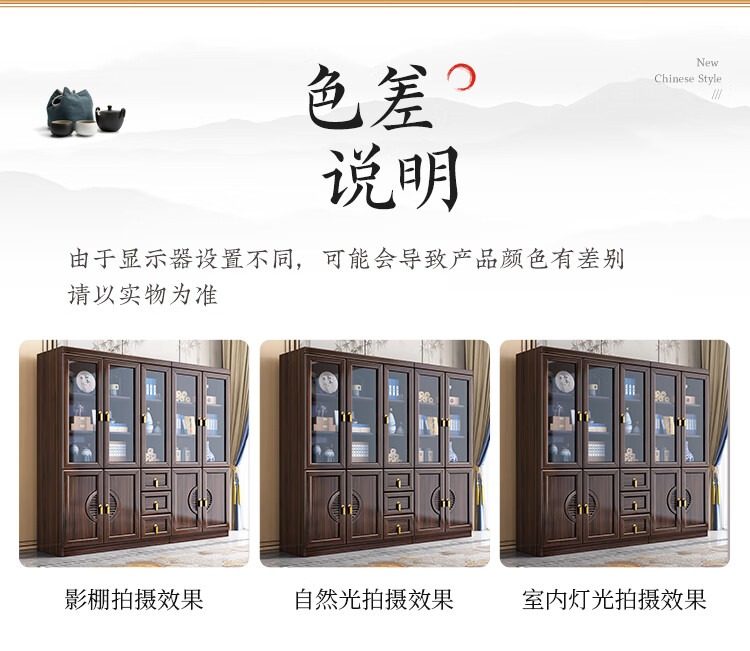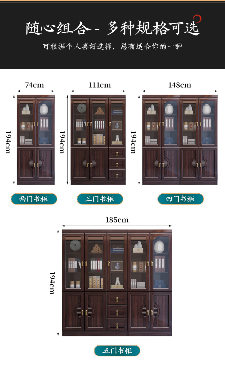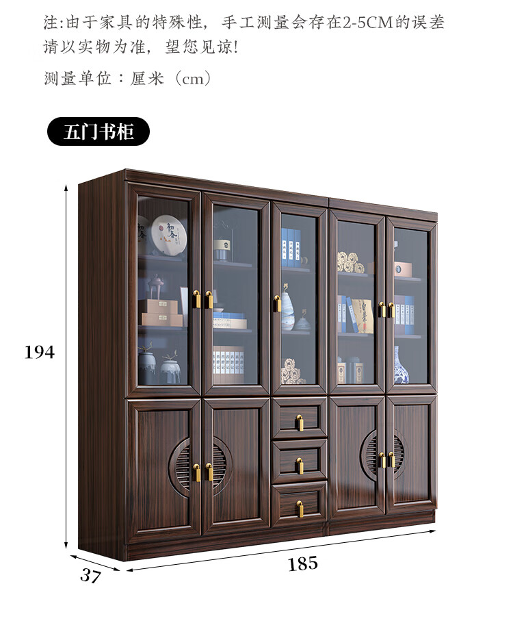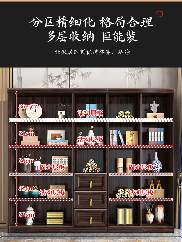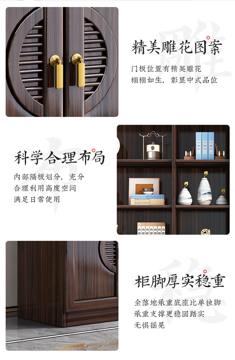 澜轩新中式乌金木实木书柜家用书房落地储物柜档案柜靠墙收纳展示柜 【乌金木】三门书柜