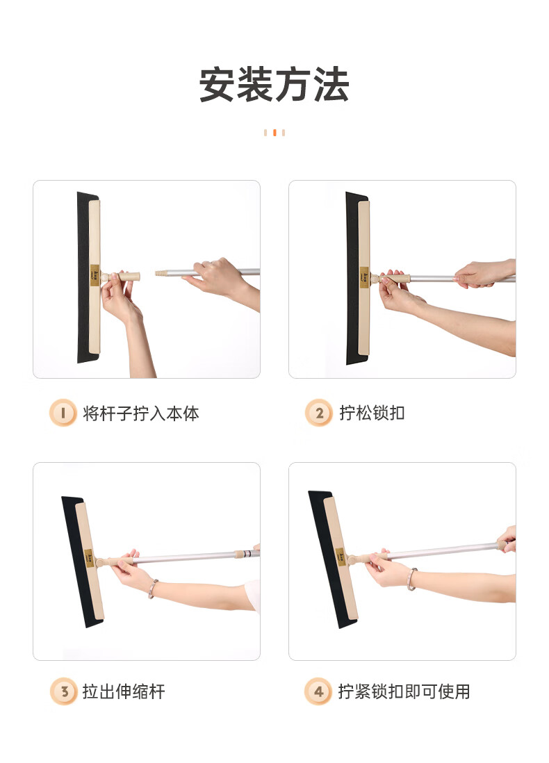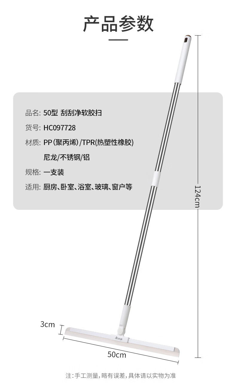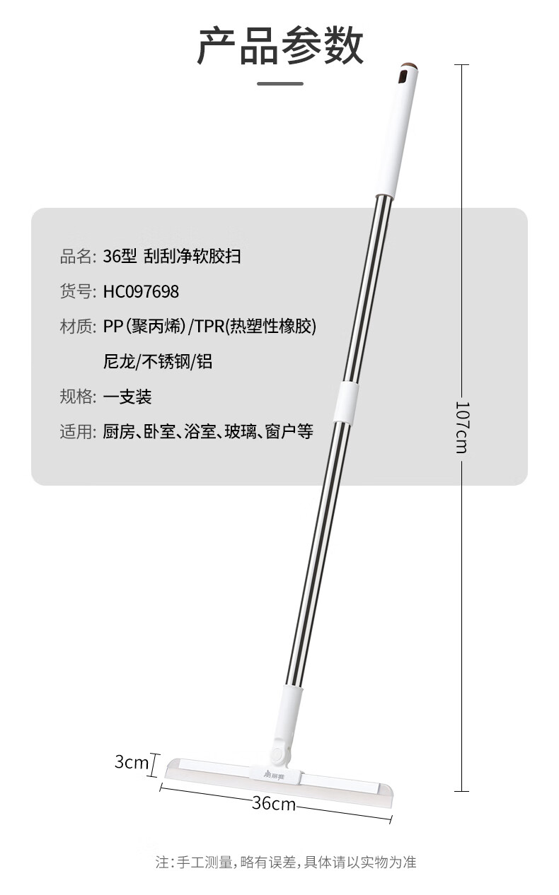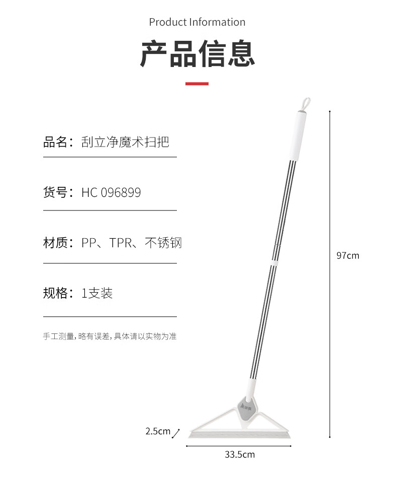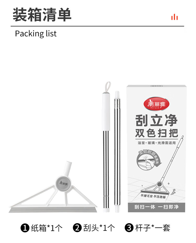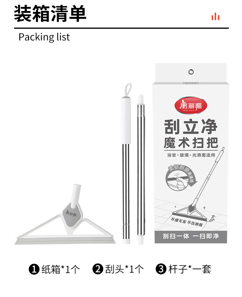 美丽雅魔术扫把地刮笤帚浴室不粘头发卫生间刮水扫把多功能刮擦玻璃神器 加宽刮水扫把【50cm】