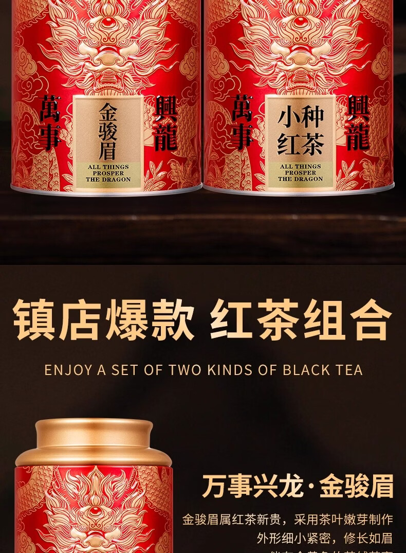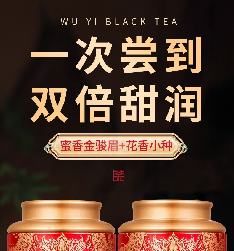 好韵当头花香小种红茶金骏眉红茶浓香型奶茶用茶叶新茶罐装自己喝 金骏眉+小种【两罐共250克超值装】
