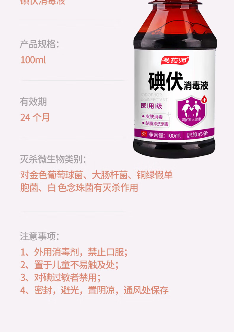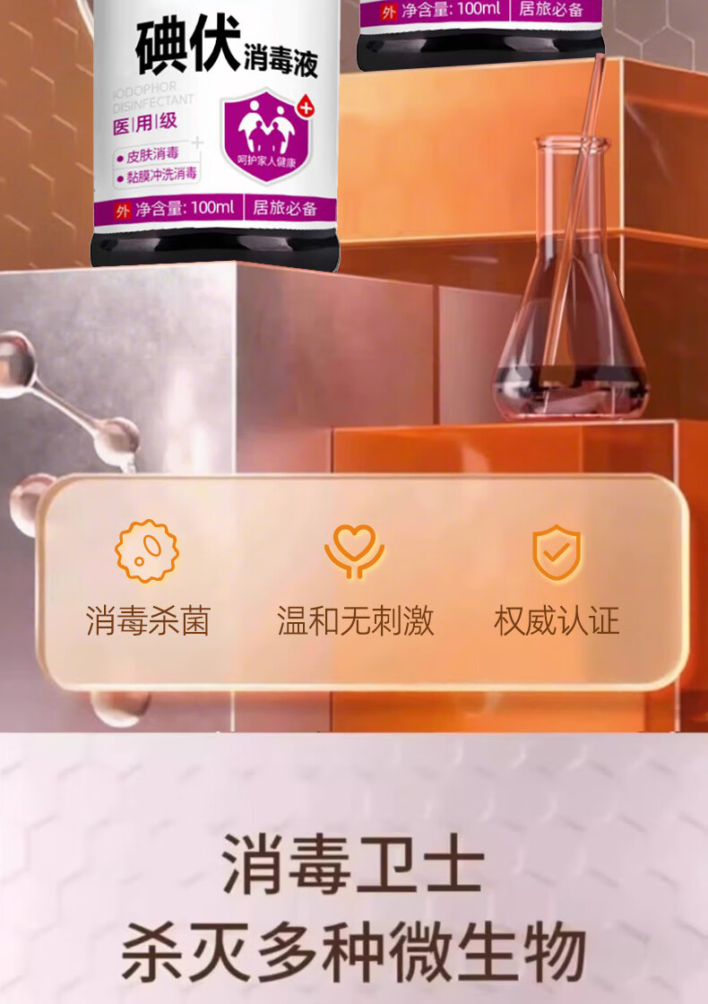 碘伏消毒液医用碘伏喷雾大瓶泡脚气婴儿脐带消毒碘伏小瓶碘酒碘酊 药房同款【医用级碘伏】100ml*1瓶