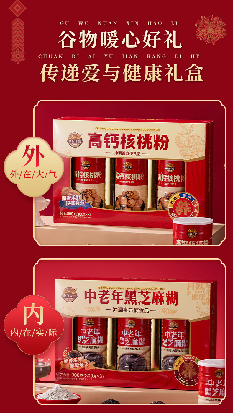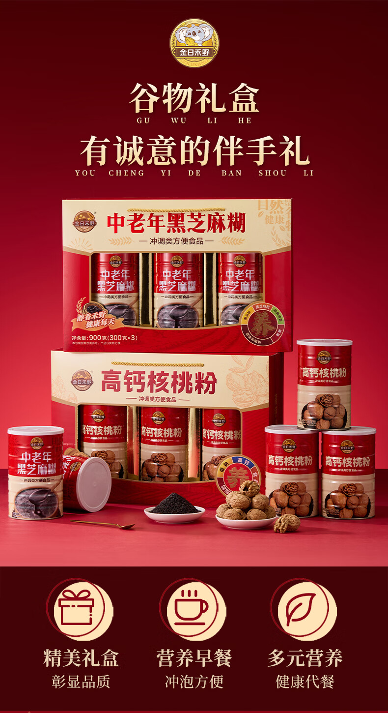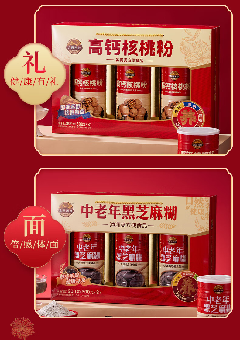 金日禾野中老年人核桃粉黑芝麻糊营养品送礼长辈早餐春节年货礼盒900g 黑芝麻糊礼盒900g