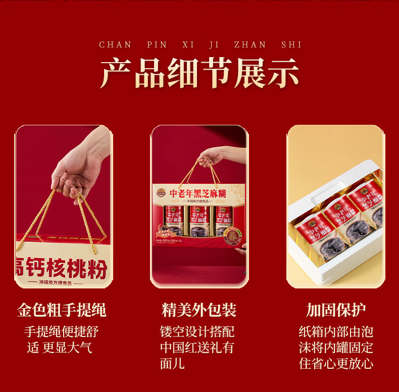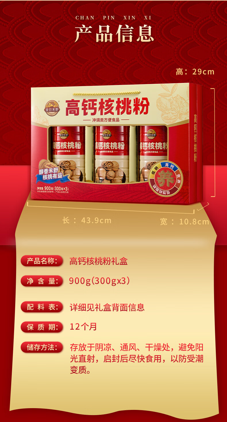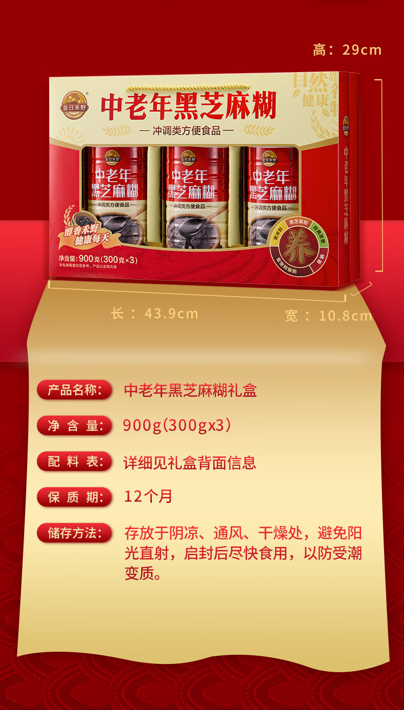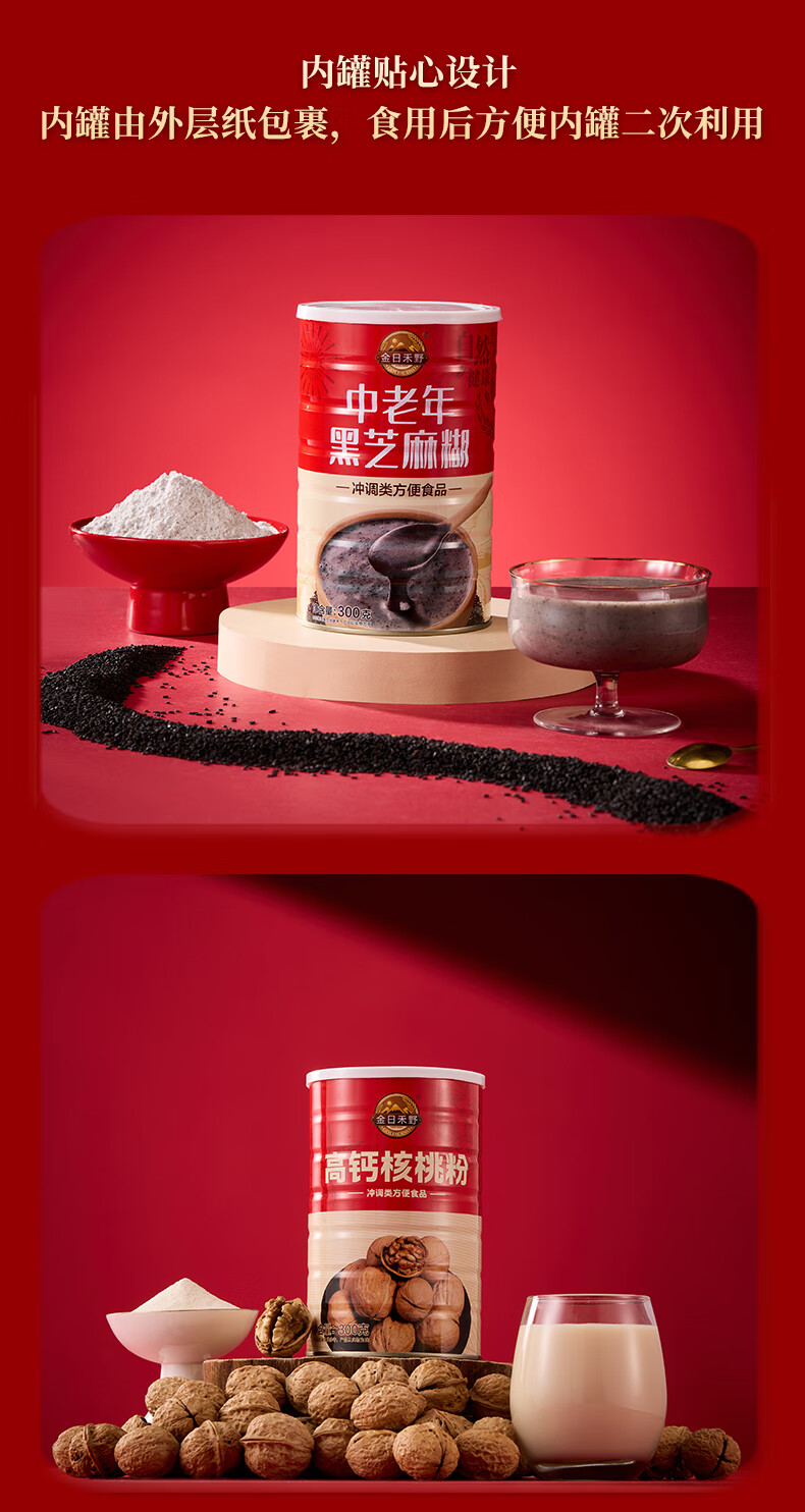 金日禾野中老年人核桃粉黑芝麻糊营养品送礼长辈早餐春节年货礼盒900g 黑芝麻糊礼盒900g